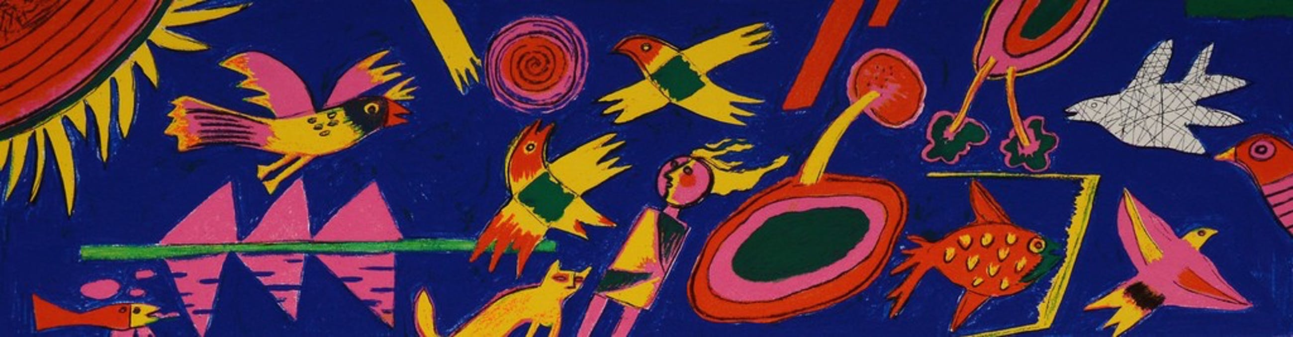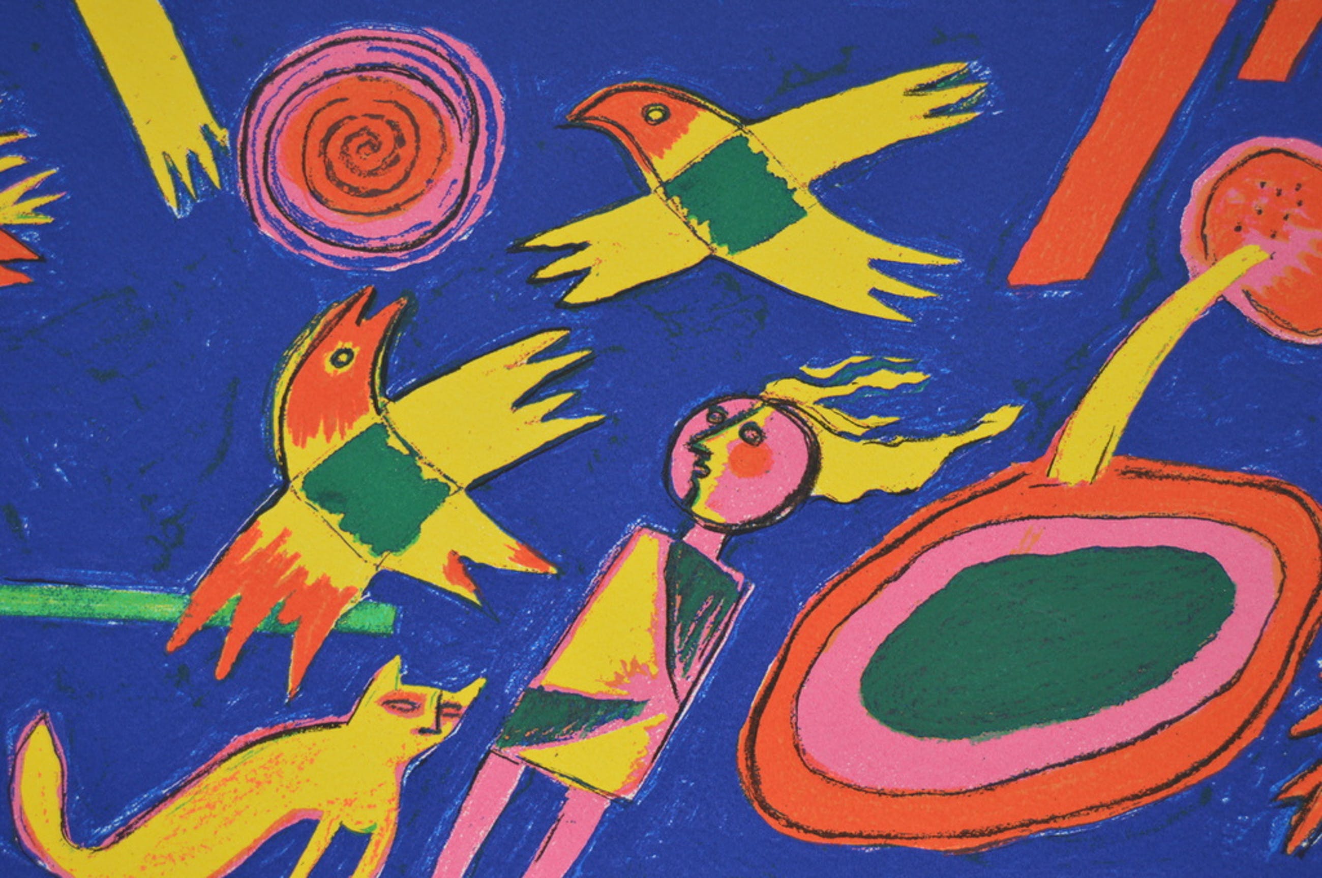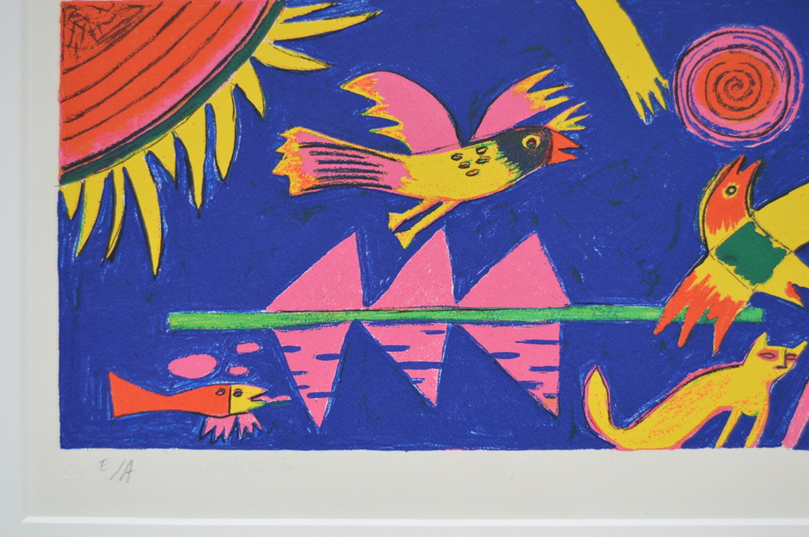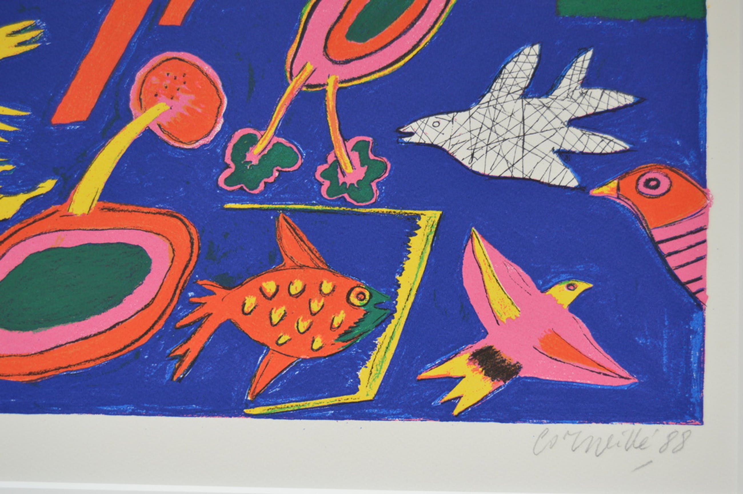 In 1988 maakte Corneille voor de AMRO bank deze prachtige zeefdruk. Zeefdruk met passe-partout, niet ingelijst.