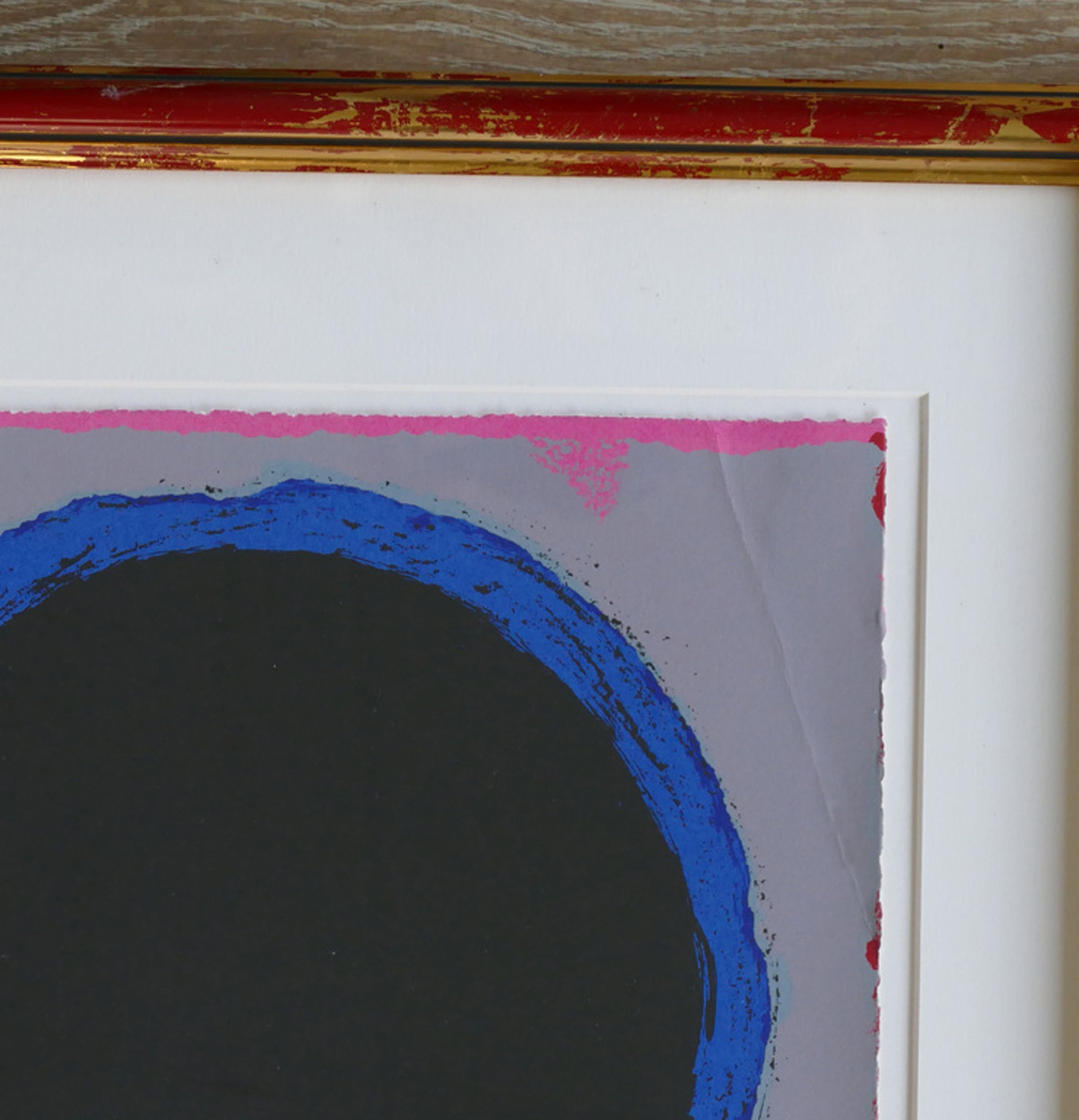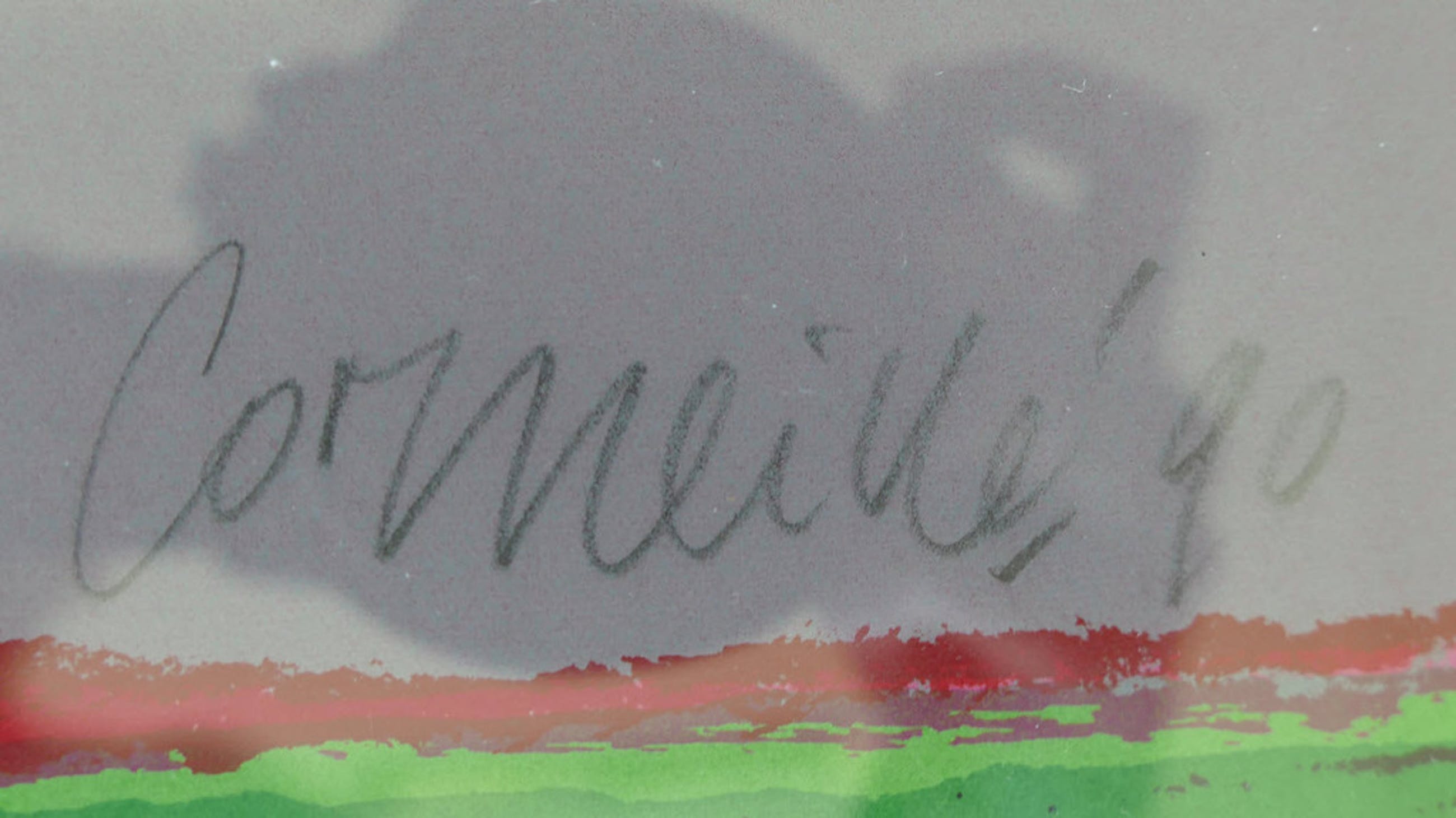 Grote zeefdruk van Corneille uit het jaar 1990 in zeer goede staat (klein miniem vouwtje in rechterbovenhoek) Door het glas is reflectie zichtbaar