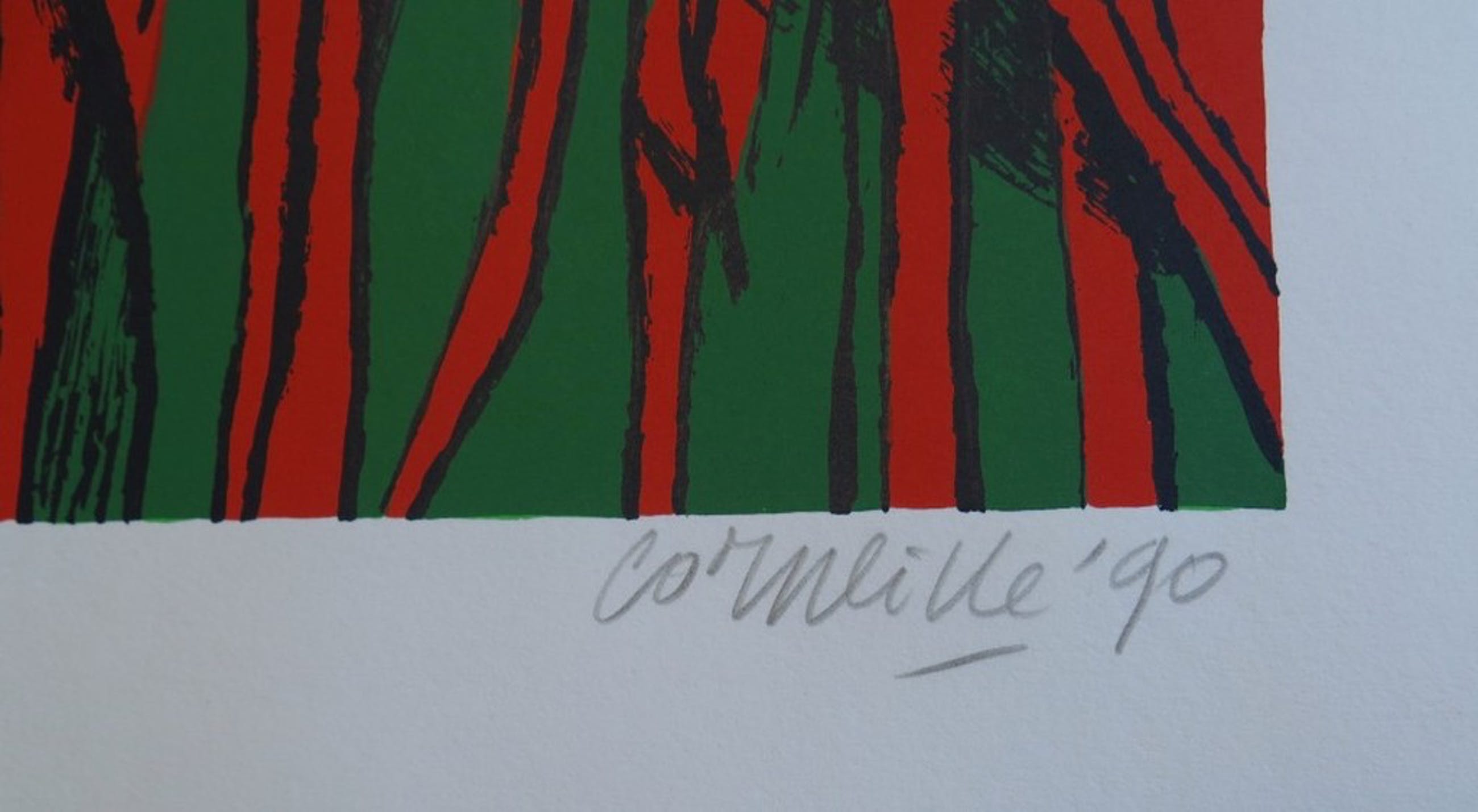 Conditie: In goede staat, maar met helaas enkele kreuklijntjes binnen het beeld. Deze vallen niet heel erg op en zijn alleen van zeer dichtbij goed te zien, maar moeten wel genoemd worden. In de witranden wat zeer lichte kreuklijntjes.