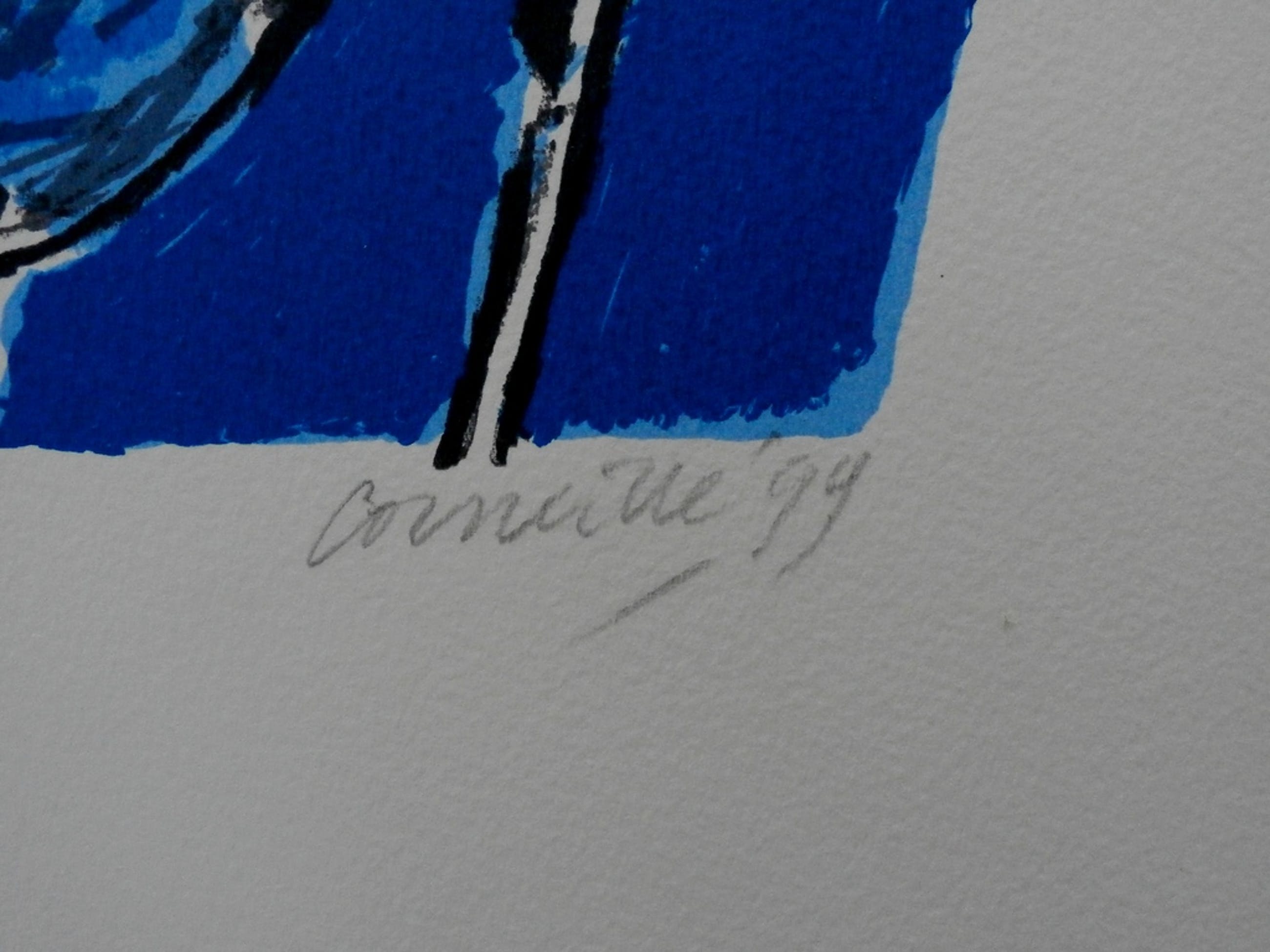 Zeefdruk van Corneille uit 1999. Afmetingen: H30 x b40 cm. Nummer: HC 29/30. De authenciteit van dit werk wordt volledig gegarandeerd. Een certificaat van echtheid kan, op verzoek, worden meegestuurd.