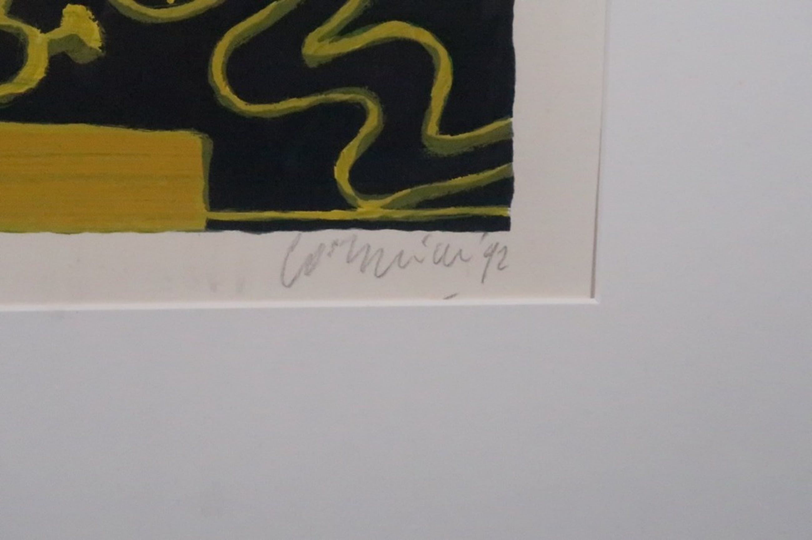 Conditie kunstwerk: In zeer goede staat - het werk is licht verschoven achter het passe-partout.