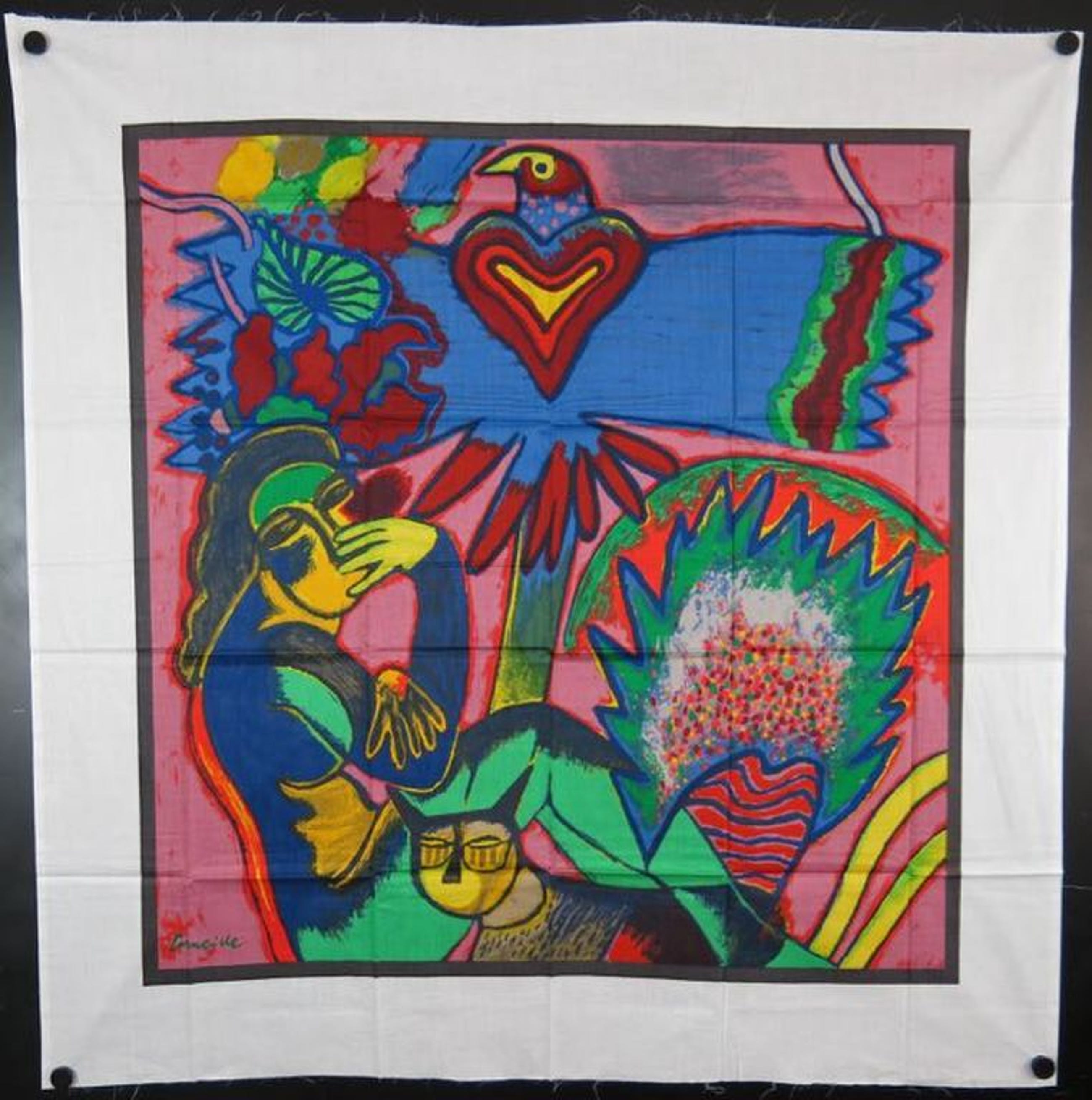 Texoprint bv vroeg jaarlijks een kunstenaar voor de vervaardiging van een zeefdruk op textiel, welke werd uitgebracht in een gelimiteerde oplage. Wij veilen nu diverse van deze uitgaves.