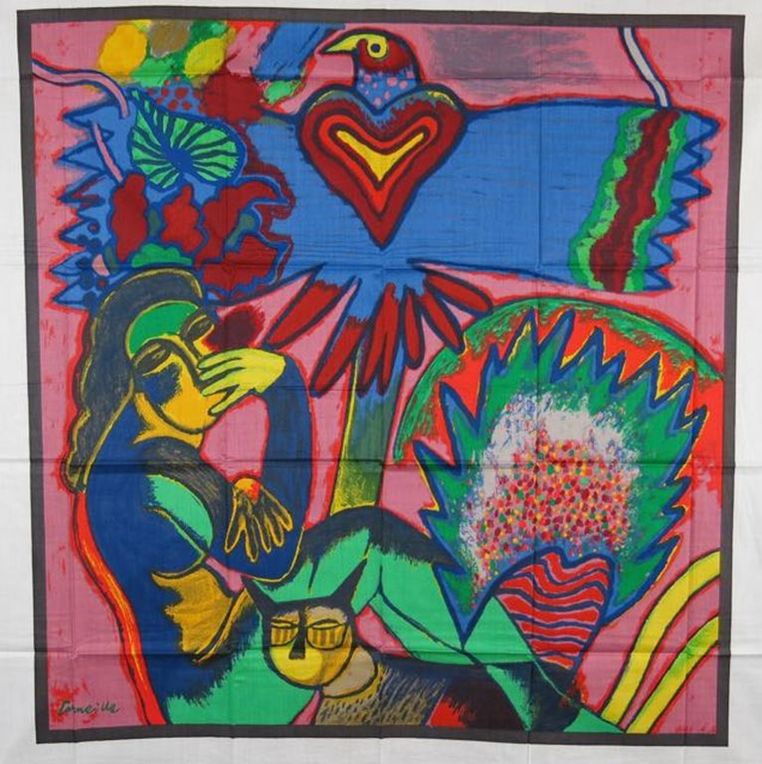 Texoprint werkte veel samen met toonaangevende kunstenaars voor de vervaardiging van hoogwaardige en kleurrijke zeefdrukken op textiel. Wij veilen nu diverse van deze mooie uitgaves.