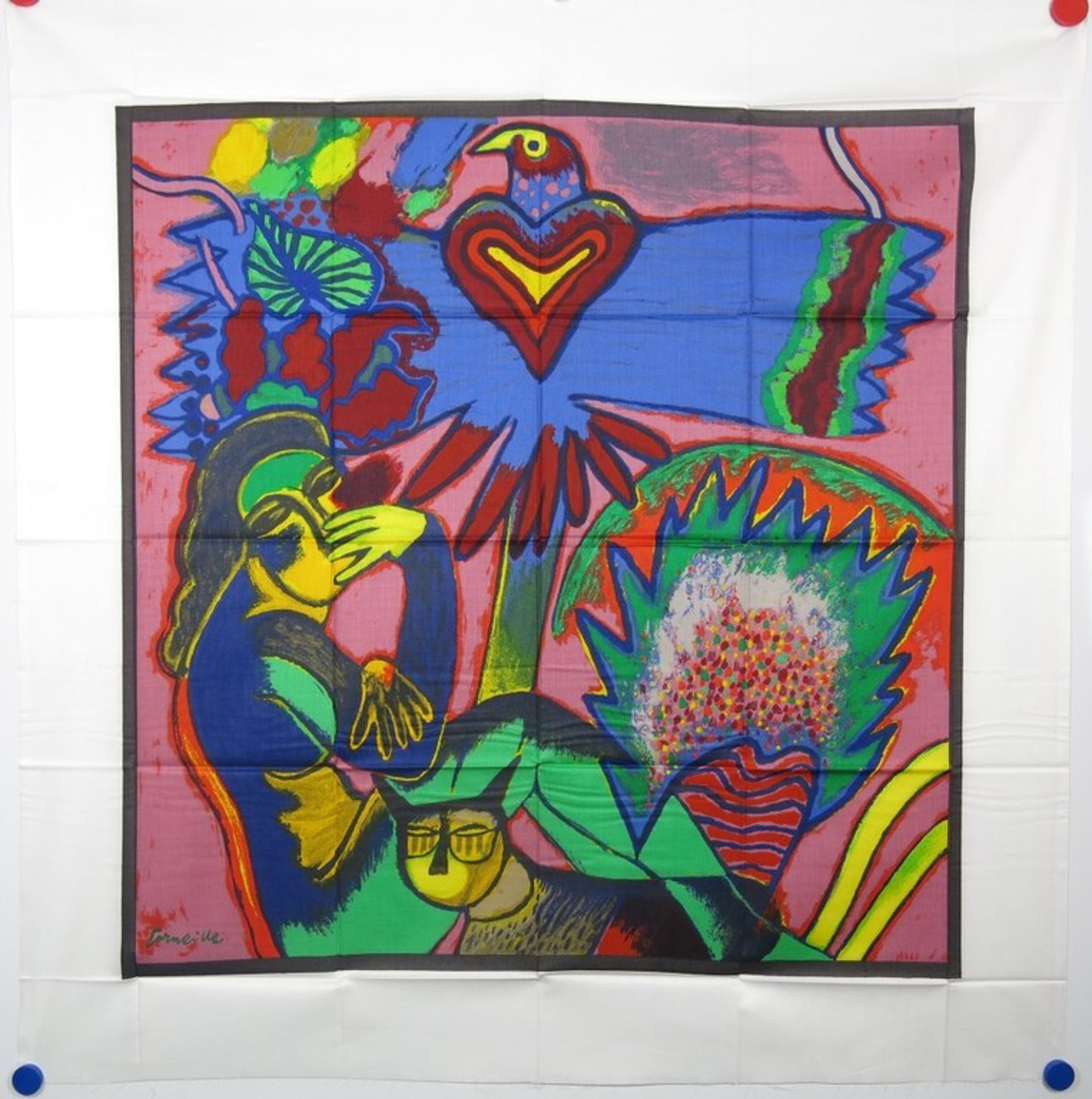 Texoprint bv vroeg jaarlijks een kunstenaar voor de vervaardiging van een zeefdruk op textiel, welke werd uitgebracht in een oplage van 200. Wij veilen nu diverse van deze uitgaves.