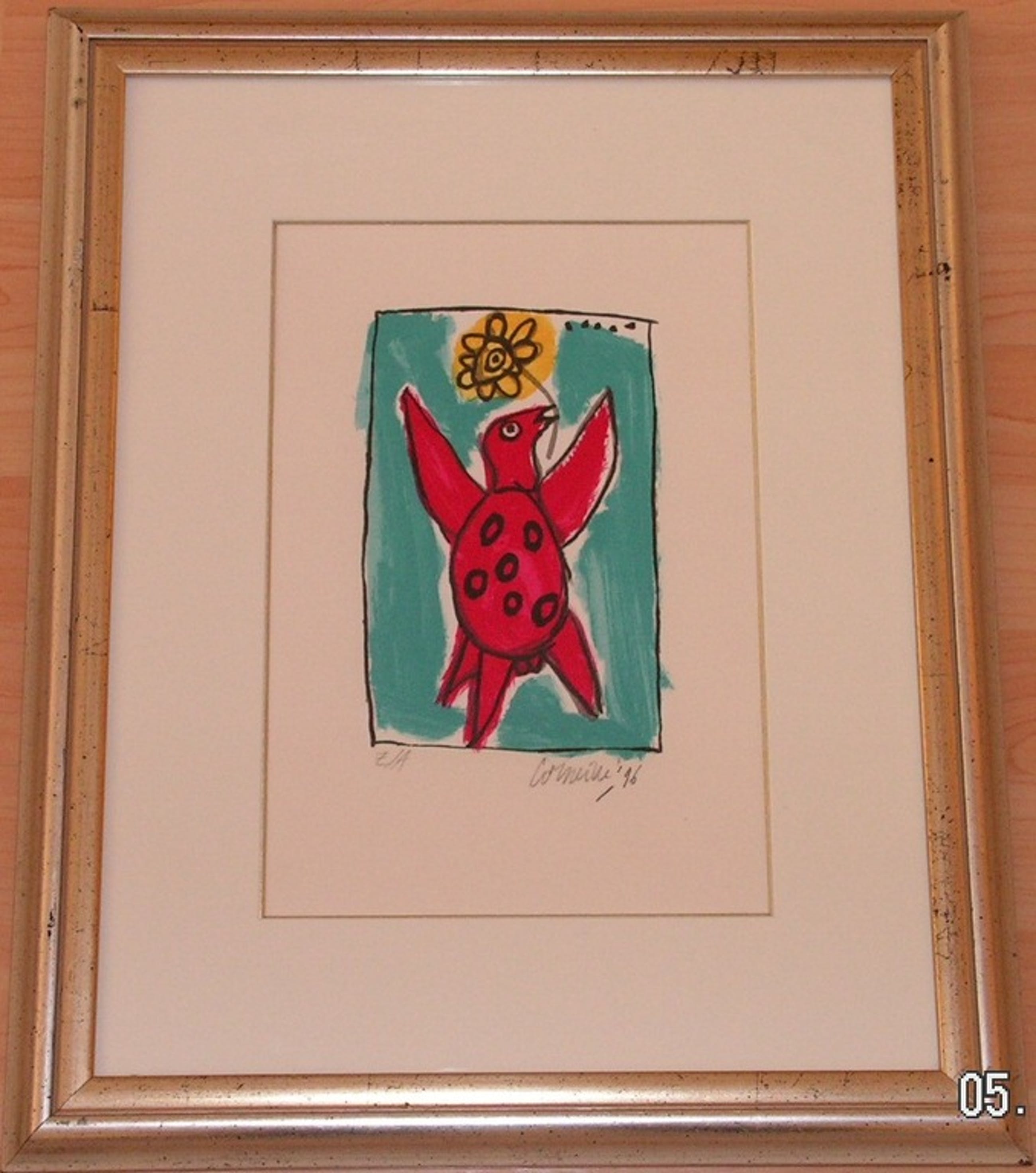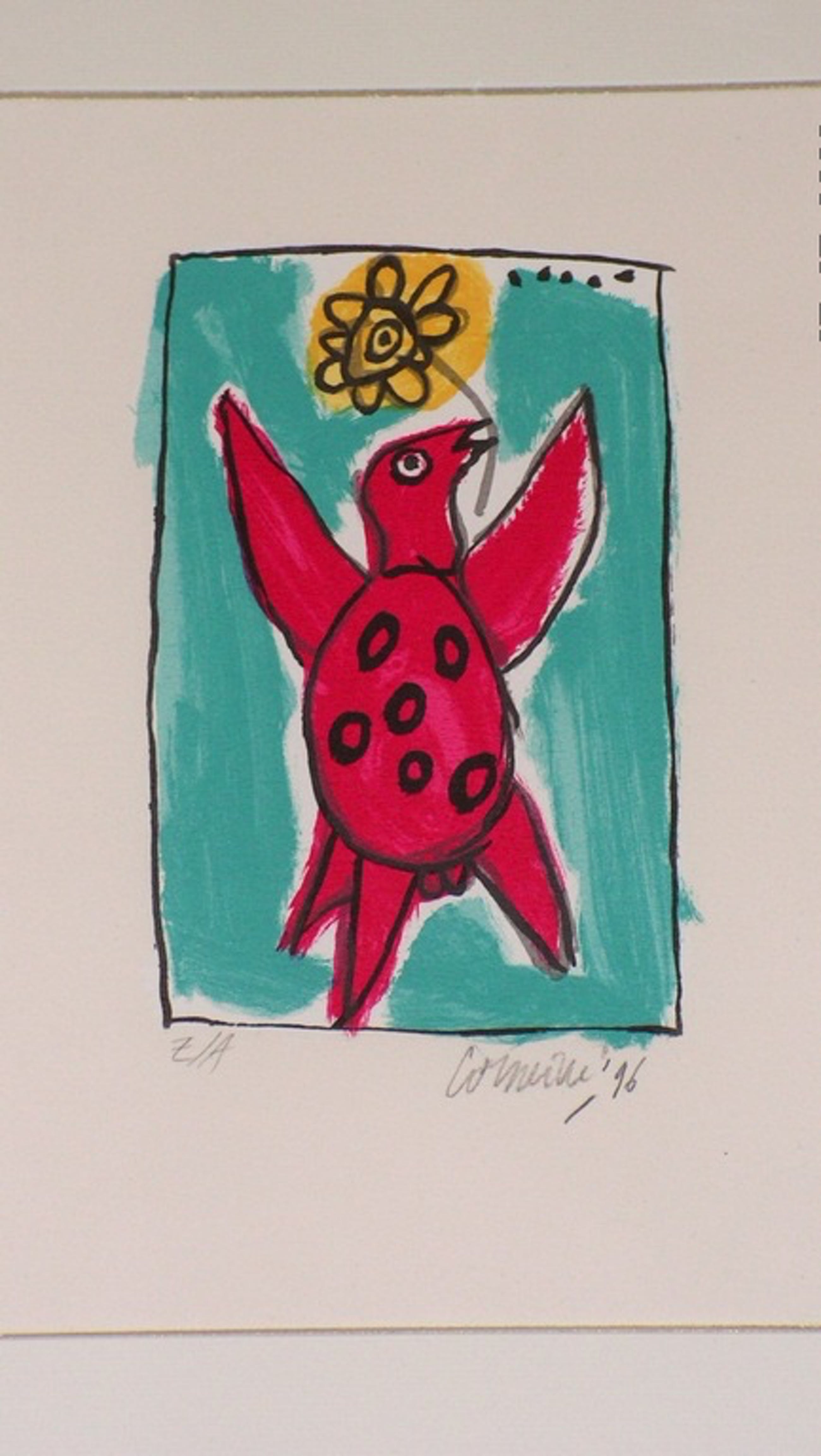 Ingelijst achter glas, kan zo aan de muur. Gesigneerd in potlood CORNEILLE, gedateerd 1996. EA exemplaar.