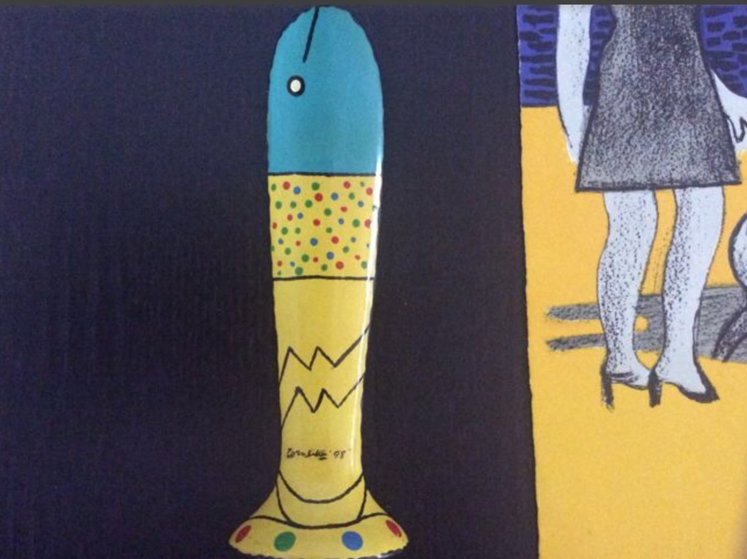 Bij deze litho/zeefdruk hoort ook een houten schoenlepel met de hand beschilderd van corneille gesigneerd met een sticker en voorzien van nr 33/125