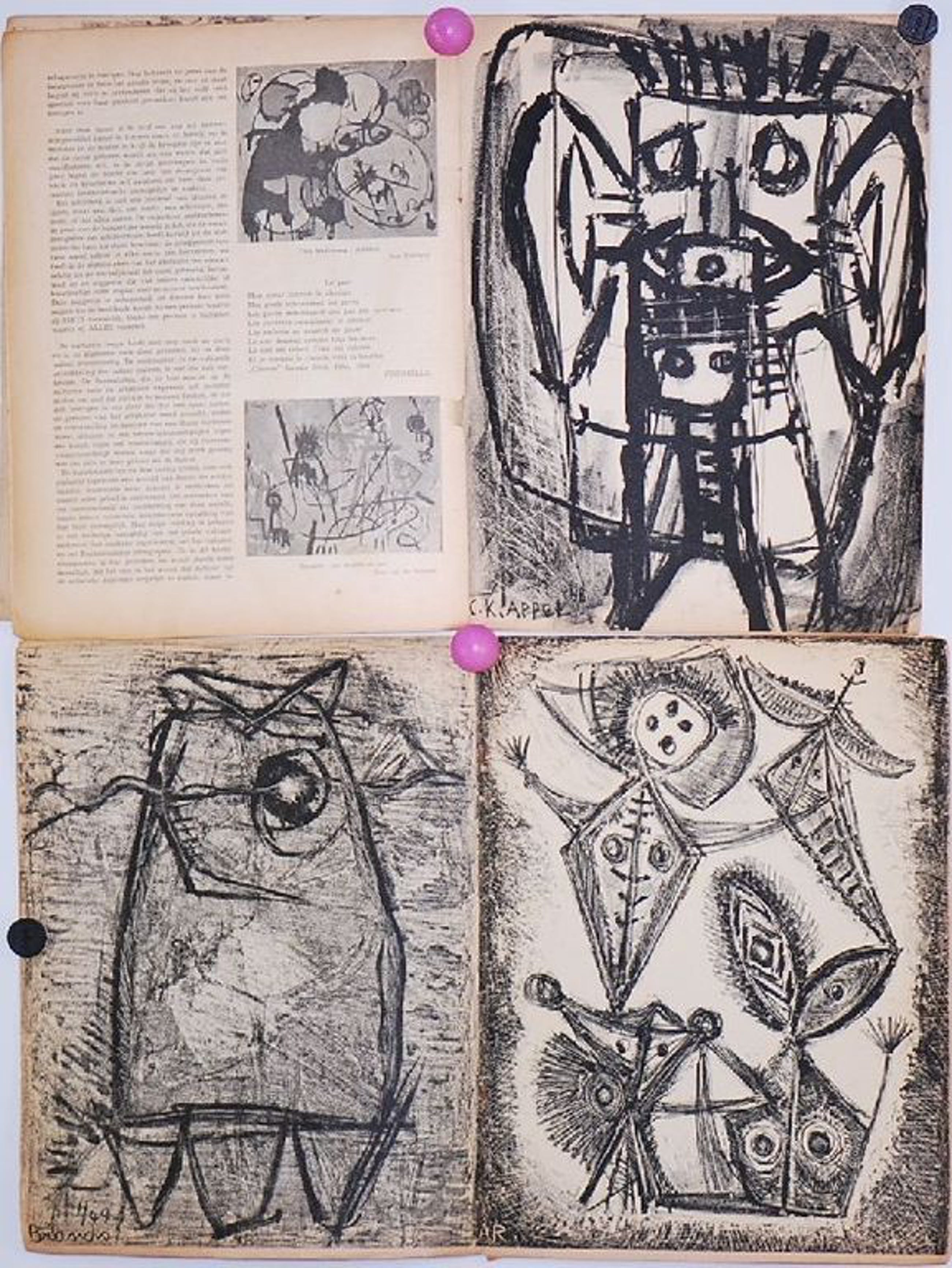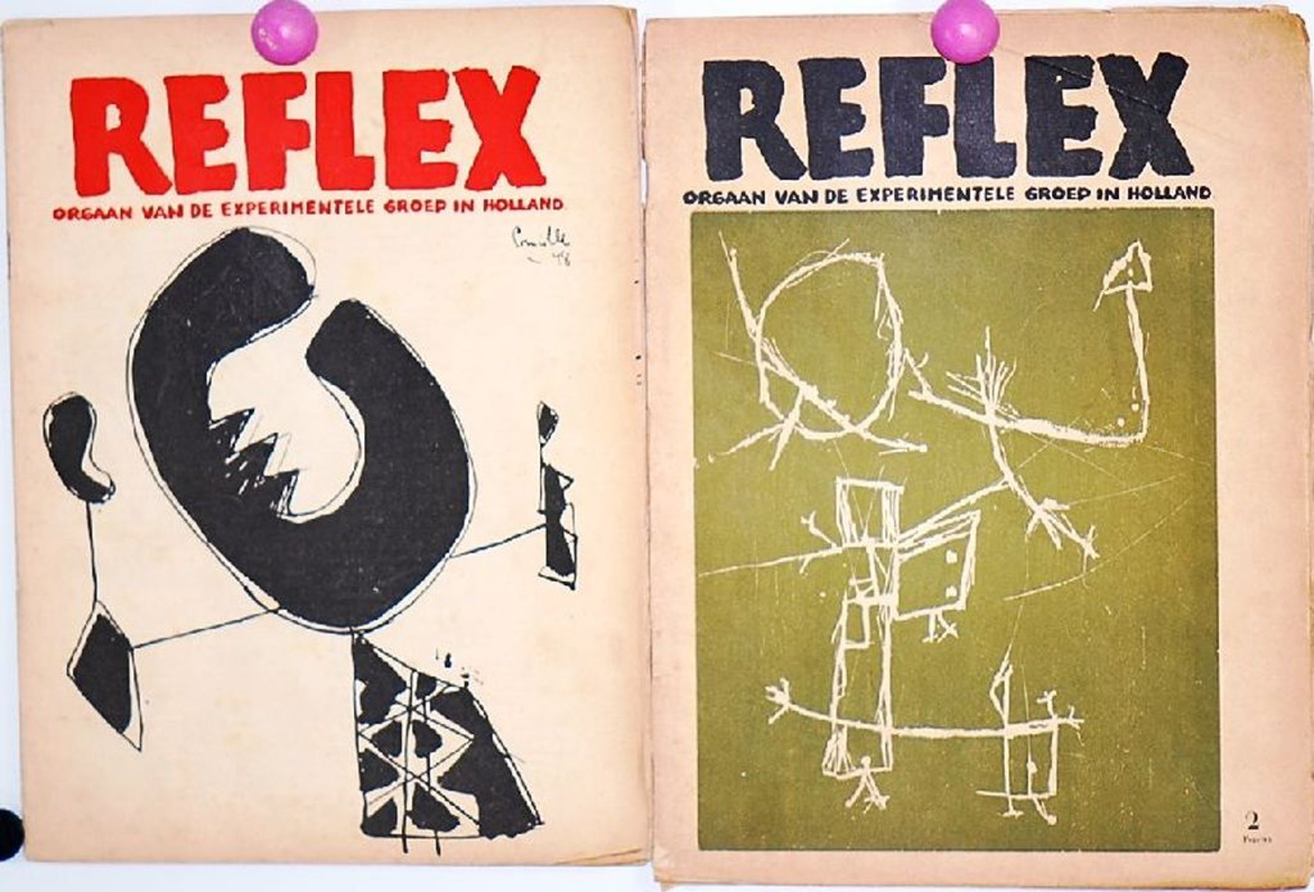 Zeldzame uitgave De Experimentele Groep in Holland, die later opging in de internationale CoBrA beweging. Uitgave 1 en 2 van het Blad Reflex. Met zwart-wit litho’s van Corneille, Eugene Brands, Anton Rooskens, Karel Appel, Constant etc. (enkelen afgebeeld) In een zeer mooie conditie