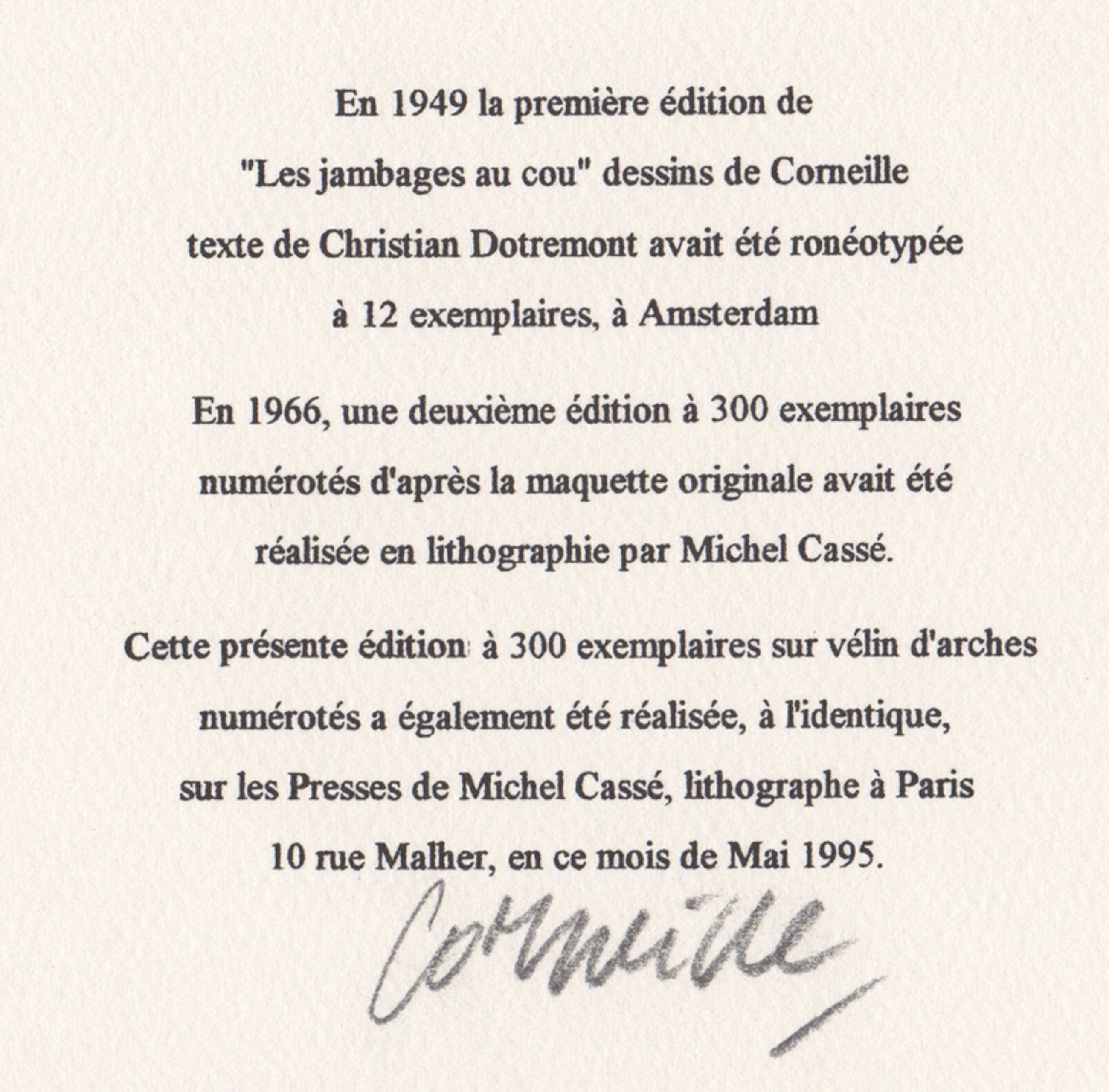 Deze litho is in 1949 door Corneille gemaakt en afgedrukt in een oplage van 12 stuks. In 1966 opnieuw uitgebracht in een oplage van 300 stuks.