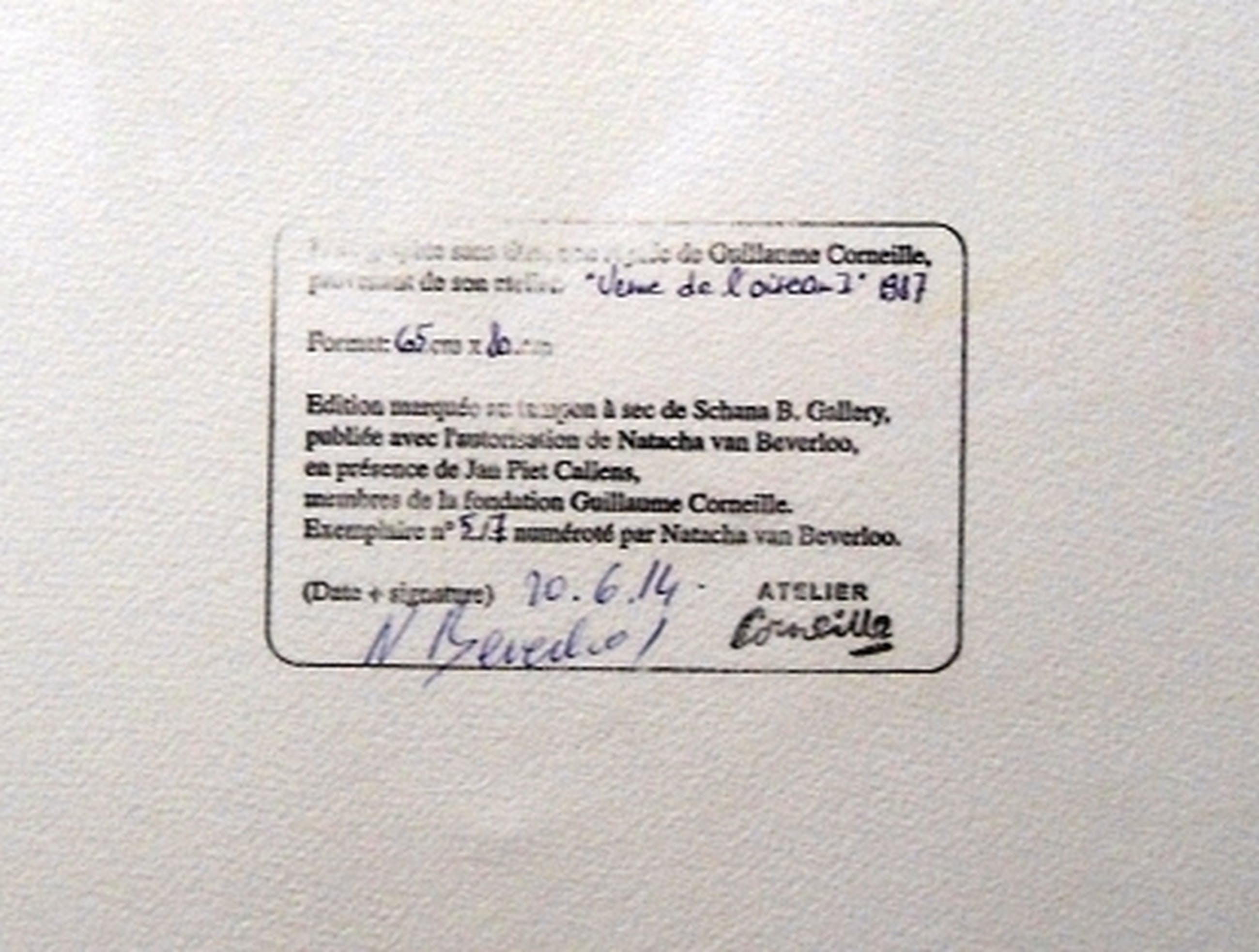 Gesigneerd: op de achterzijde gesigneerd en genummerd door de weduwe met stempel van de stichting en vooraan rechts beneden voorzien van een droogstempel