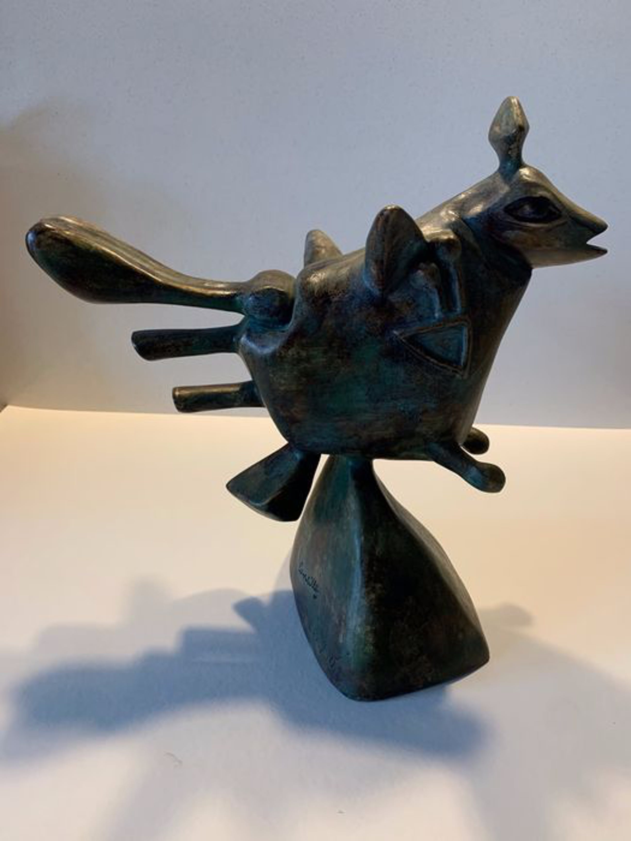 Zeldzaam beeldhouwwerk van de schilder Guillaume Corneille (1922-2010), geboren in Luik uit Nederlandse ouders, stichtend lid van de Cobra-beweging met Karel Appel, Asger Jorn, Dotremont, Constant, Jacques Doucet, of Alechinsky.