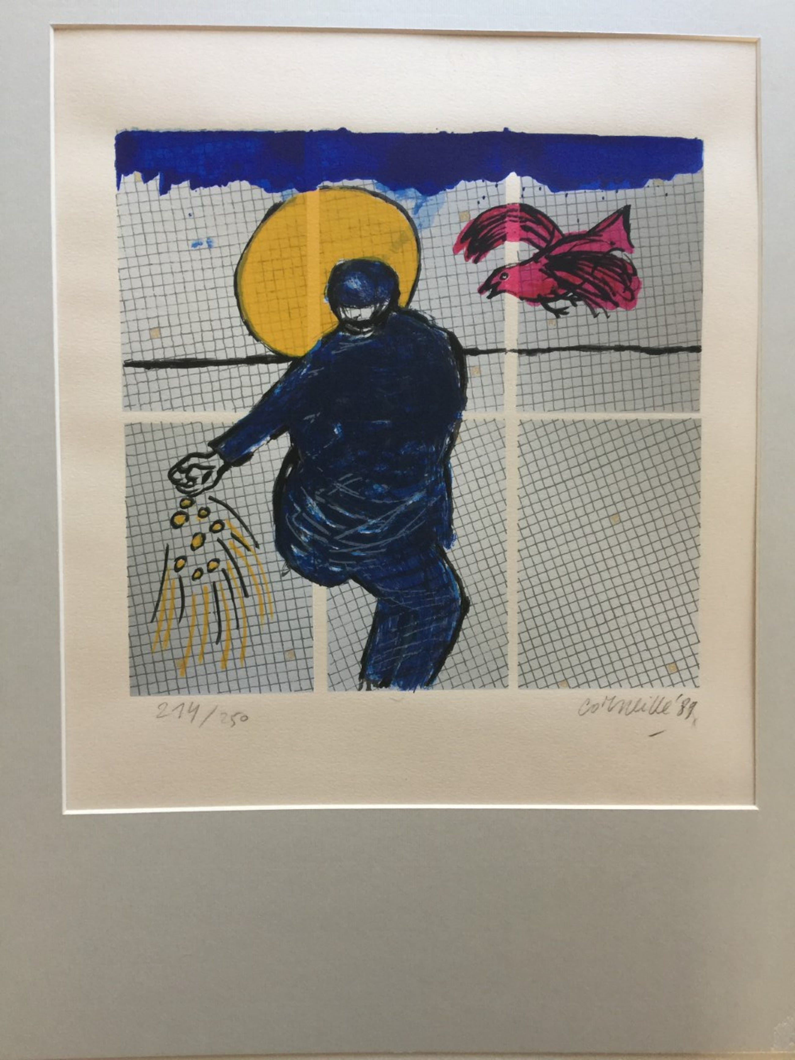 bij afhalen in passe partout (met kleine oneffenheid r.o.) indien gewenst, bij verzending alleen de litho (kunnen twee stickerresten verso achterblijven)