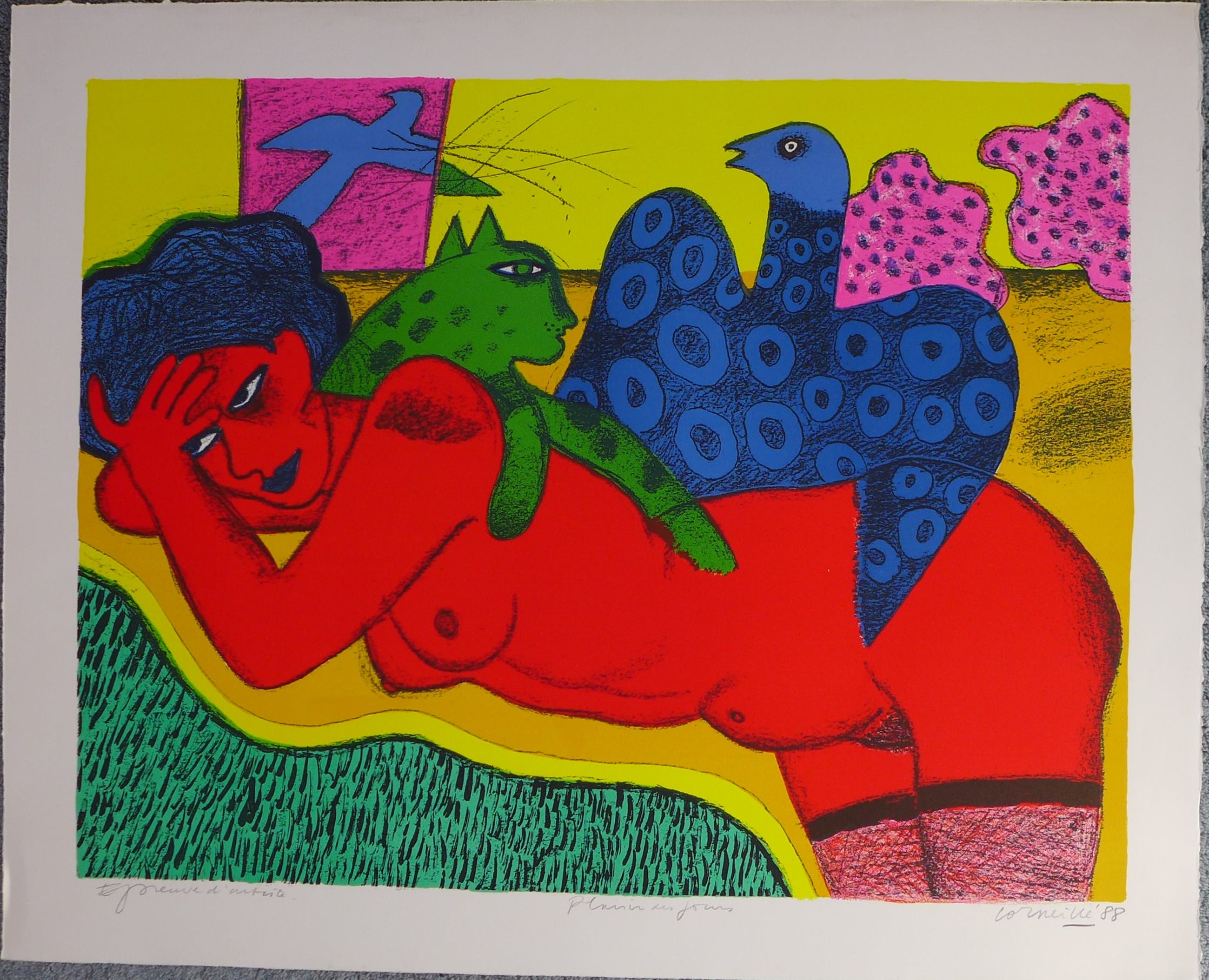 Titel: Plaisir du jour. beeldformaat 54 X 70cm. bladfomaat 65 X 79.5 vm. De zeefdruk is niet eerder ingelijst geweest.