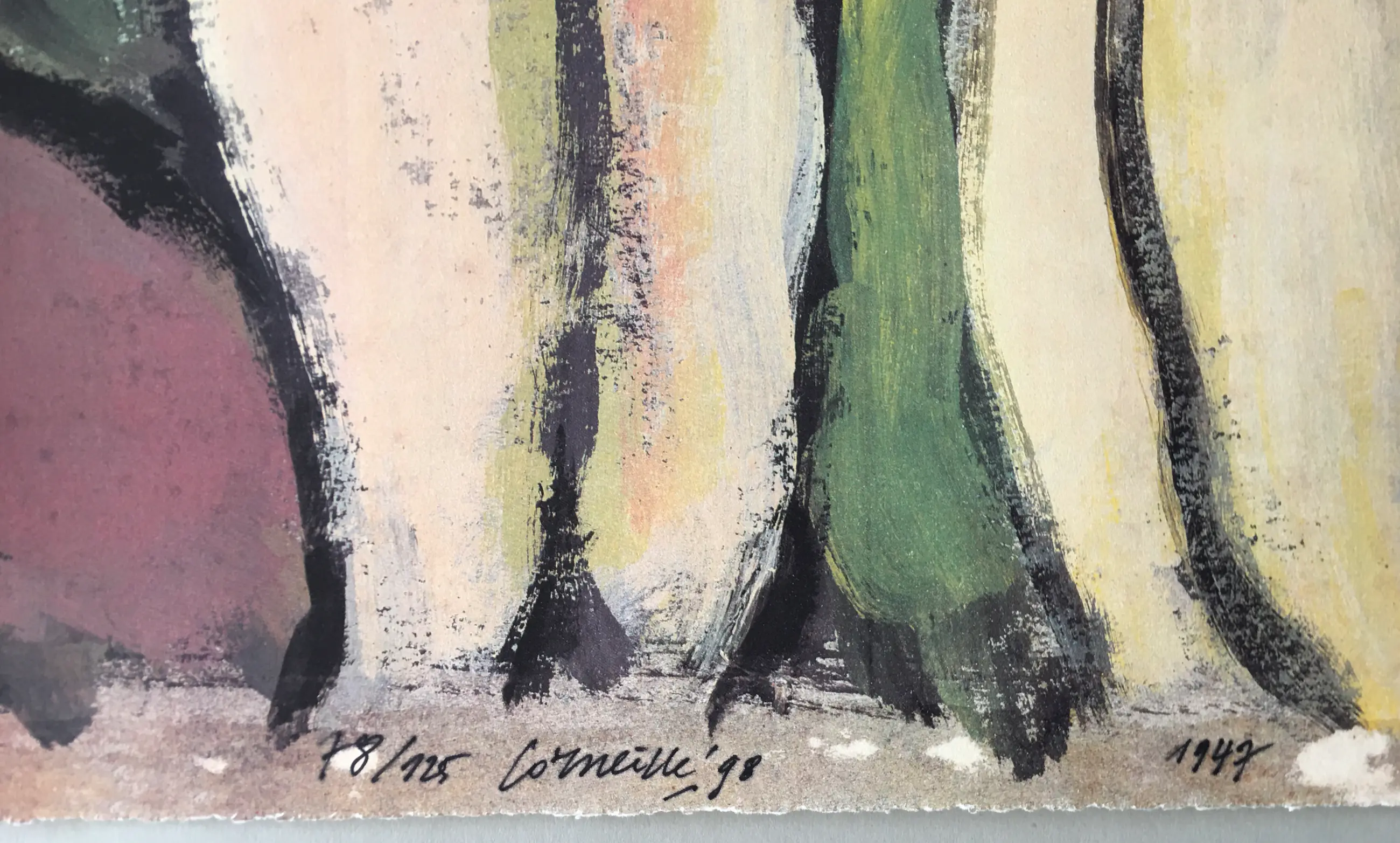 Een erg fraaie zeefdruk naar een origineel werk van Corneille uit 1947. Het werk is gesigneerd en genummerd, oplage 125 ex.
