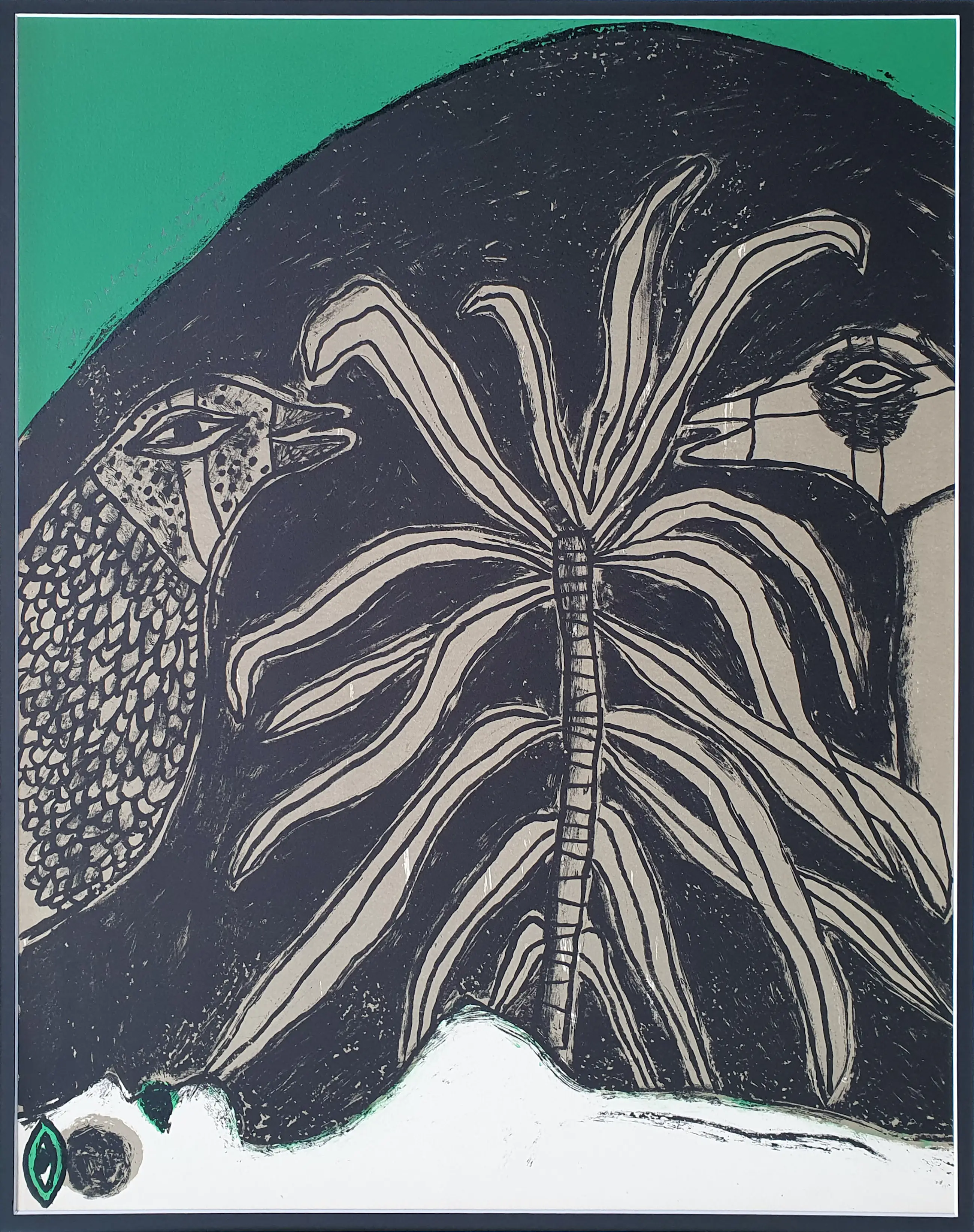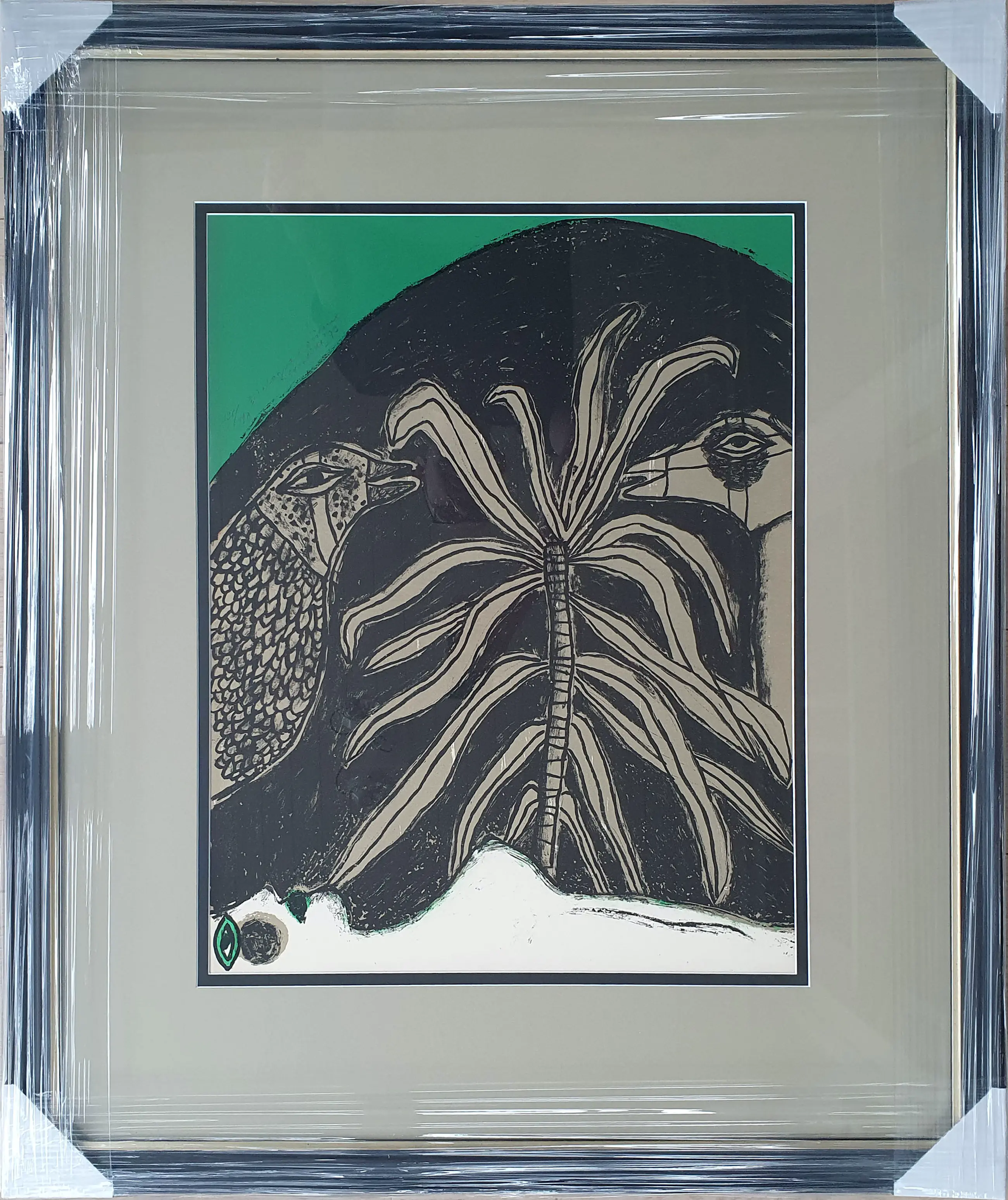 Litho uit 1973 van Corneille met de titel: 'Dialogue D’oiseaux'. Het werk is linksboven met de hand gesigneerd door de kunstenaar. Het werk is professioneel ingelijst in een luxe nieuwe lijst en is voorzien van een dubbel passe partout in bijpassende kleuren. Het geheel is in perfecte staat.