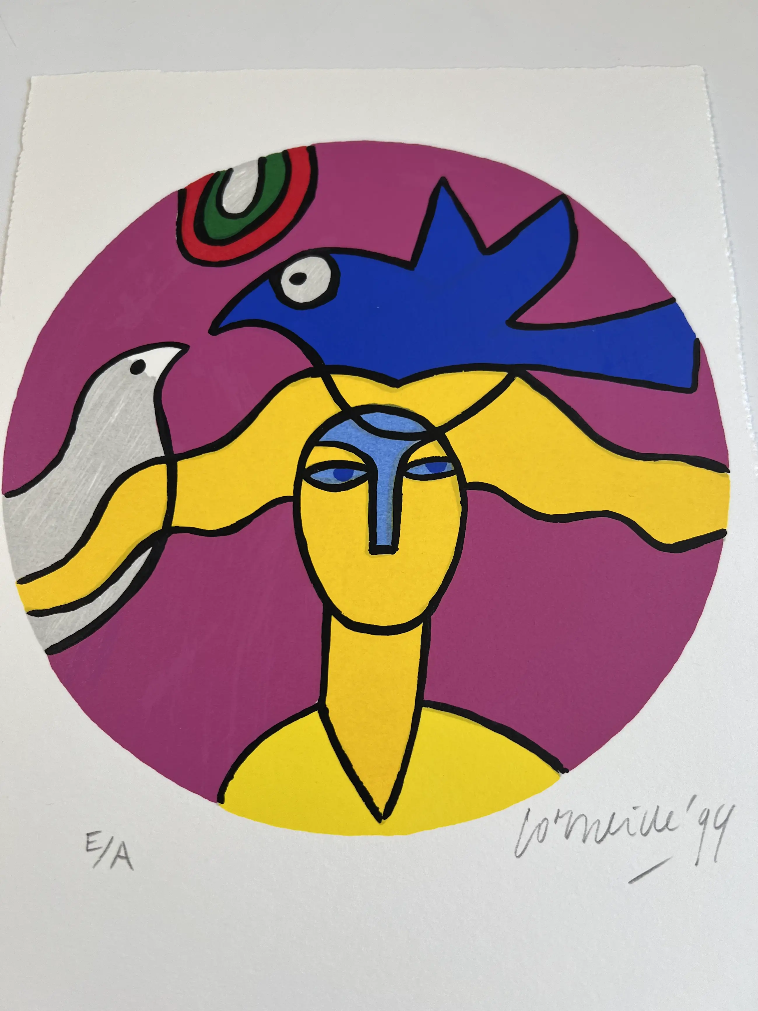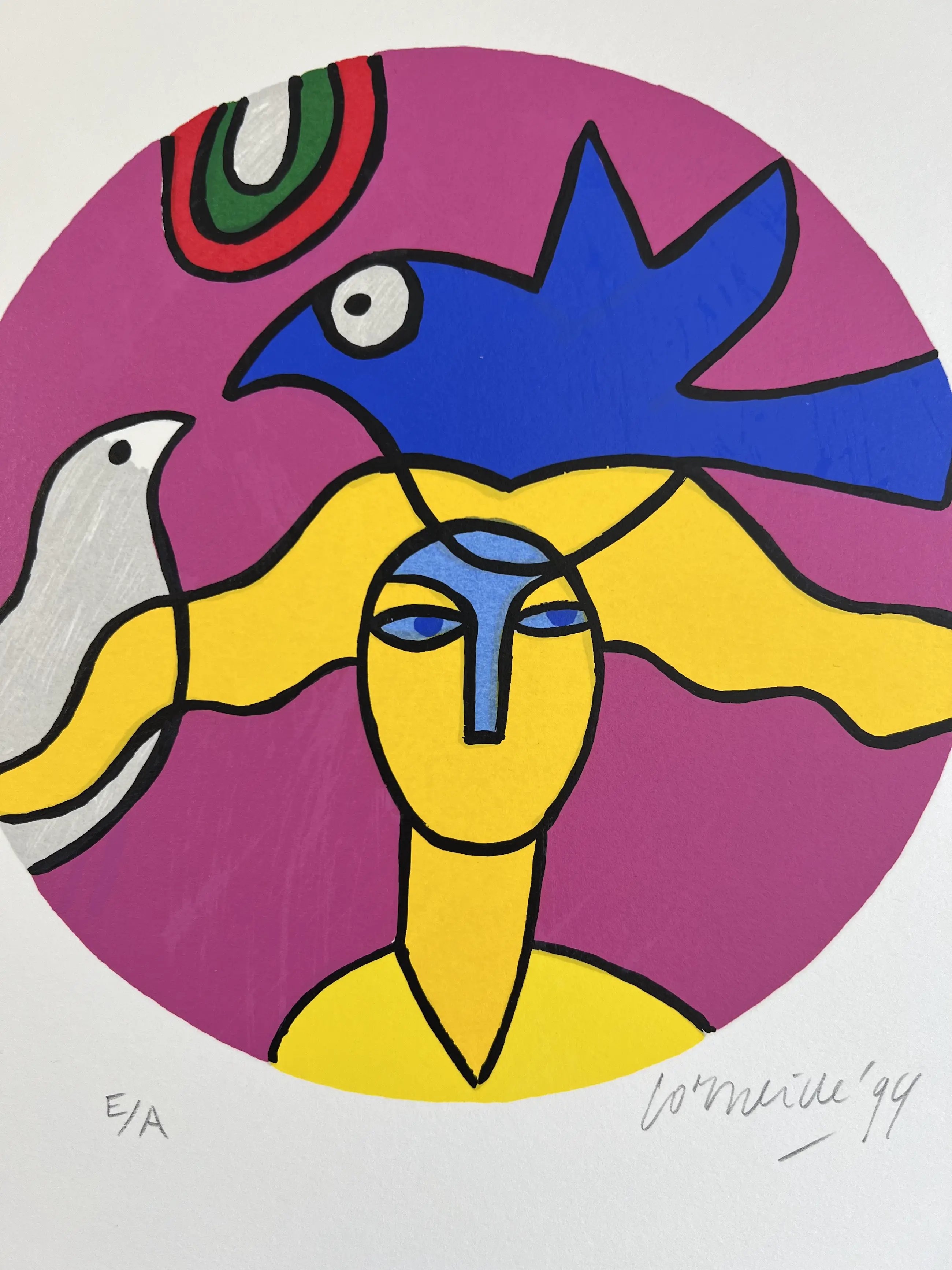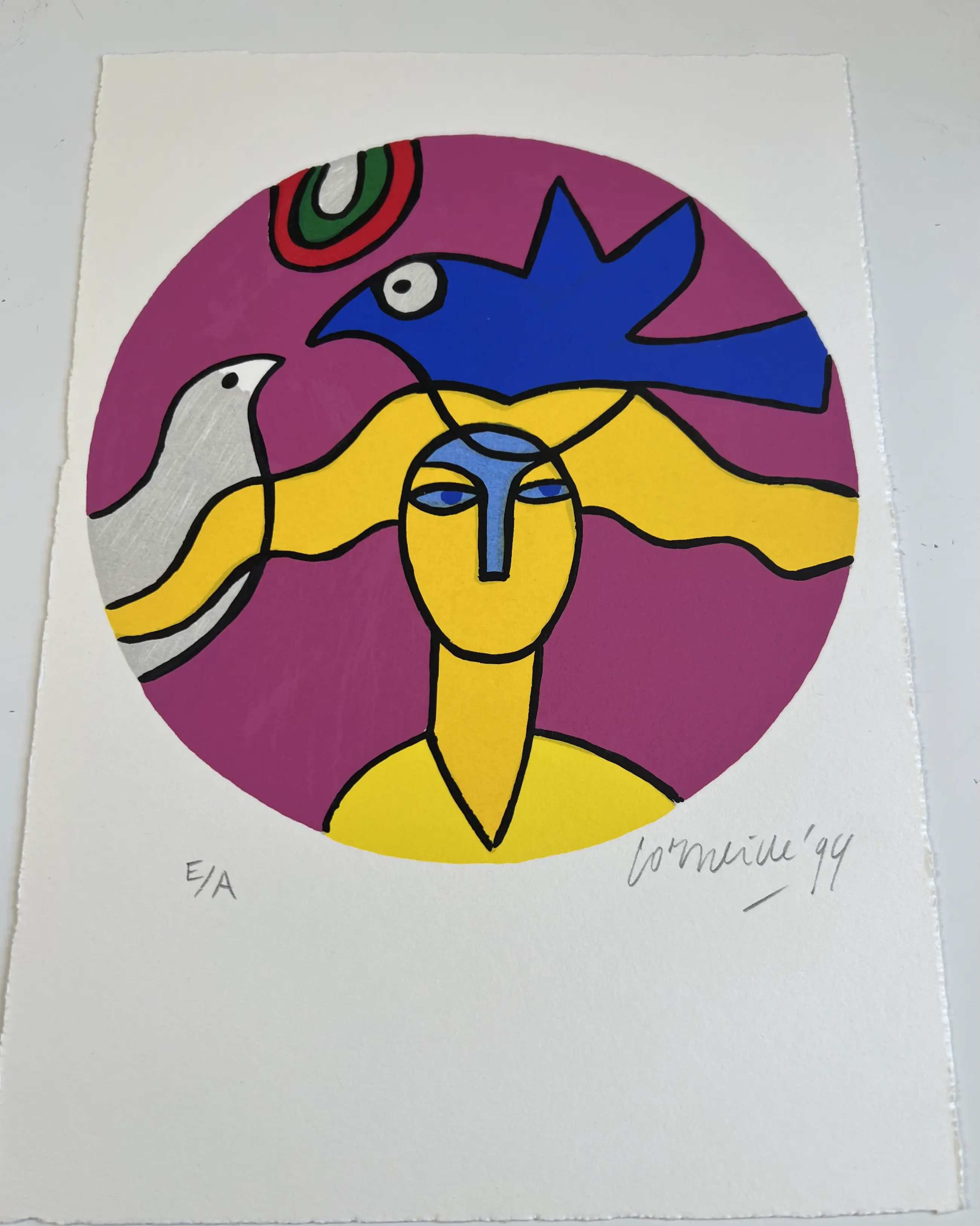 Prachtige zeefdruk van de schilder Guillaume Corneille, getiteld "Images de rêve".