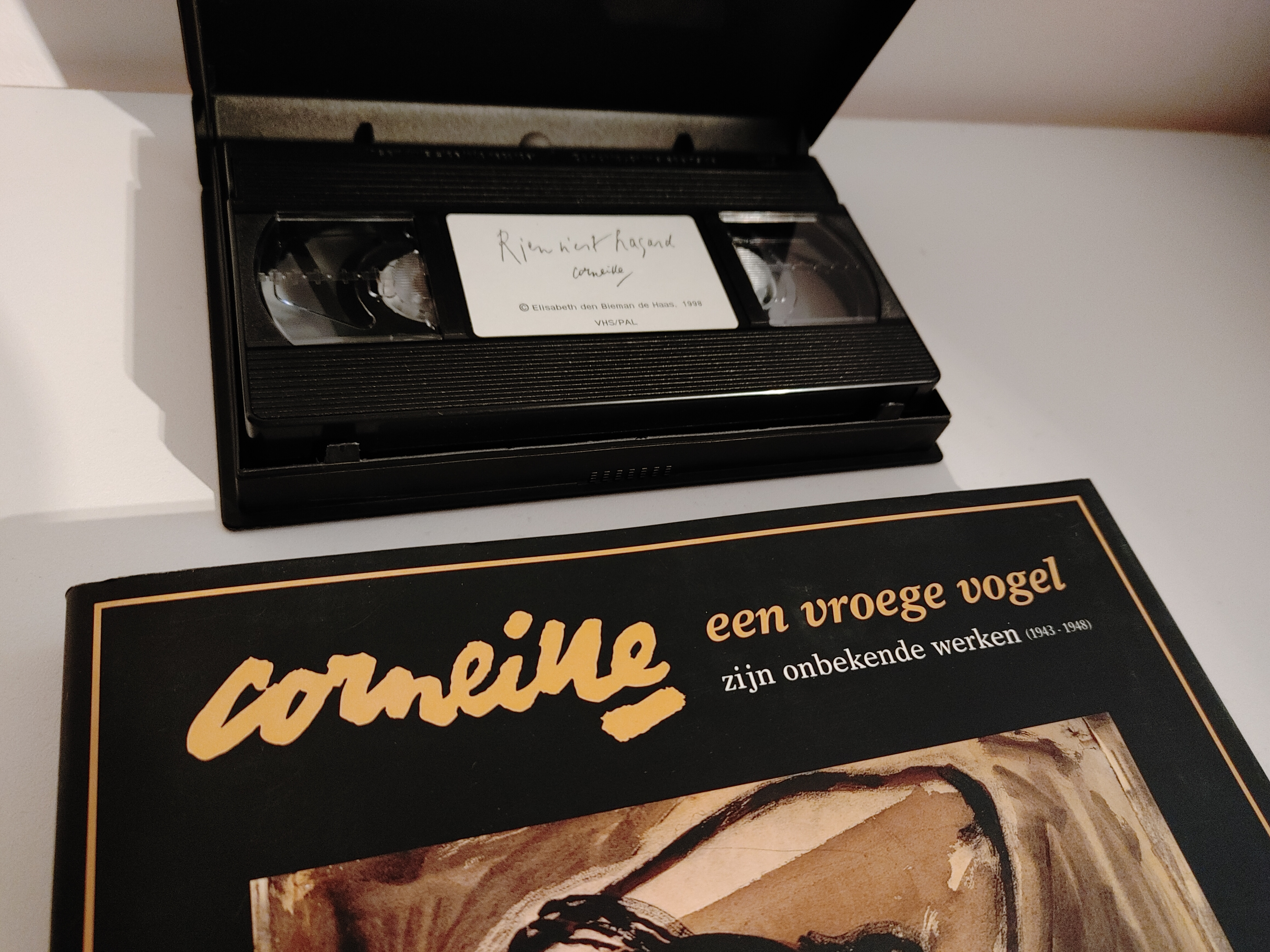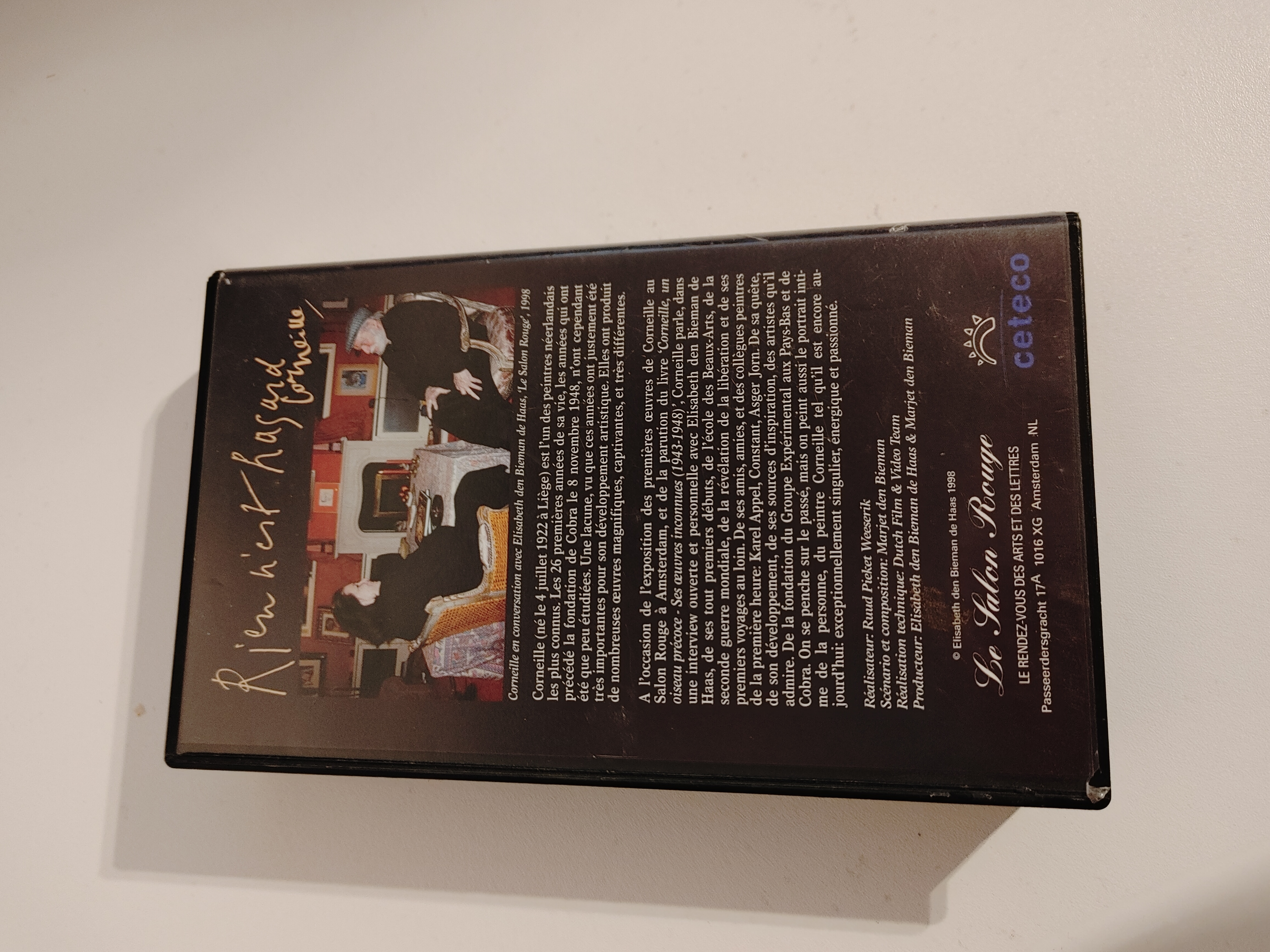 Met unieke videoband Rien n'est hasard Mevr. Biemand de Haas in gesprek met Corneille 'Le Salon Rouge' 1988.