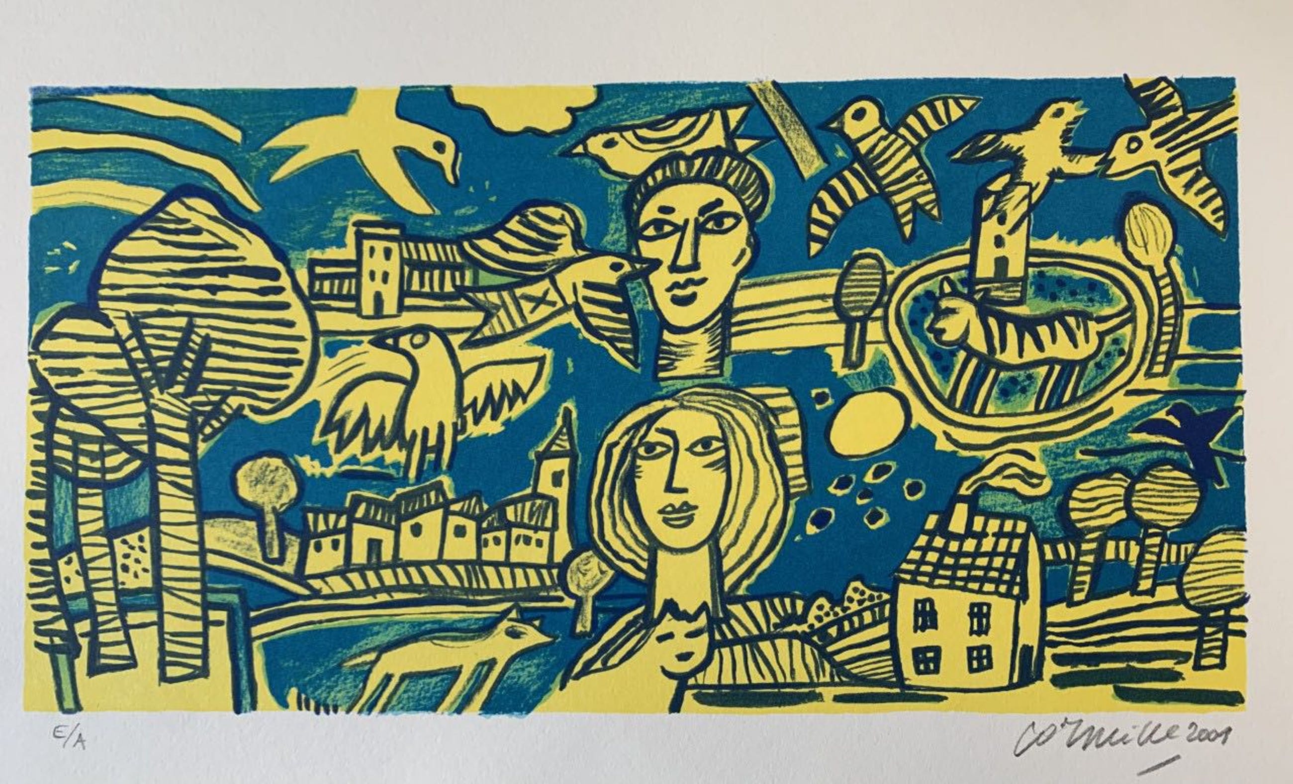 Originele serigraph van de schilder Guillaume Corneille, geboren in Luik uit Nederlandse ouders en stichtend lid van de Cobra-beweging met o.a. Asger Jorn, Karel Appel, Constant, Dotremont, Alechinsky en Jacques Doucet.