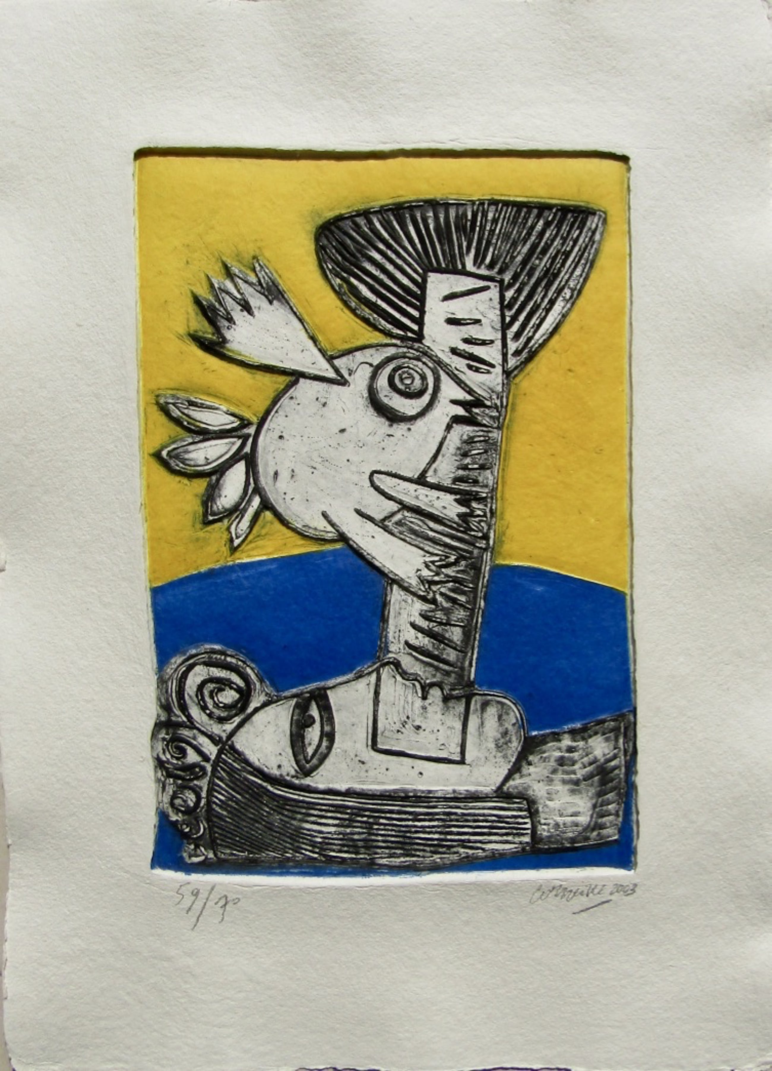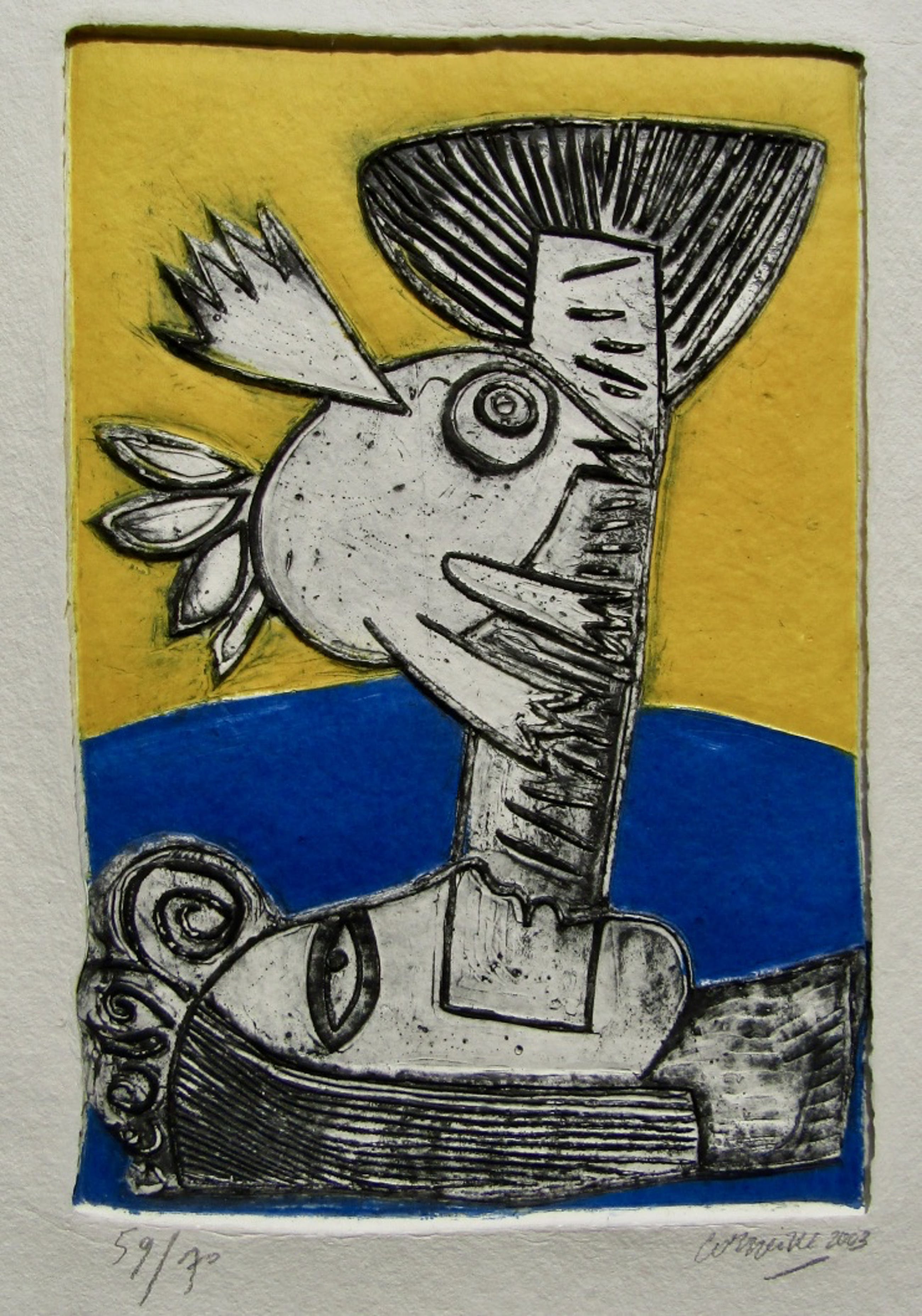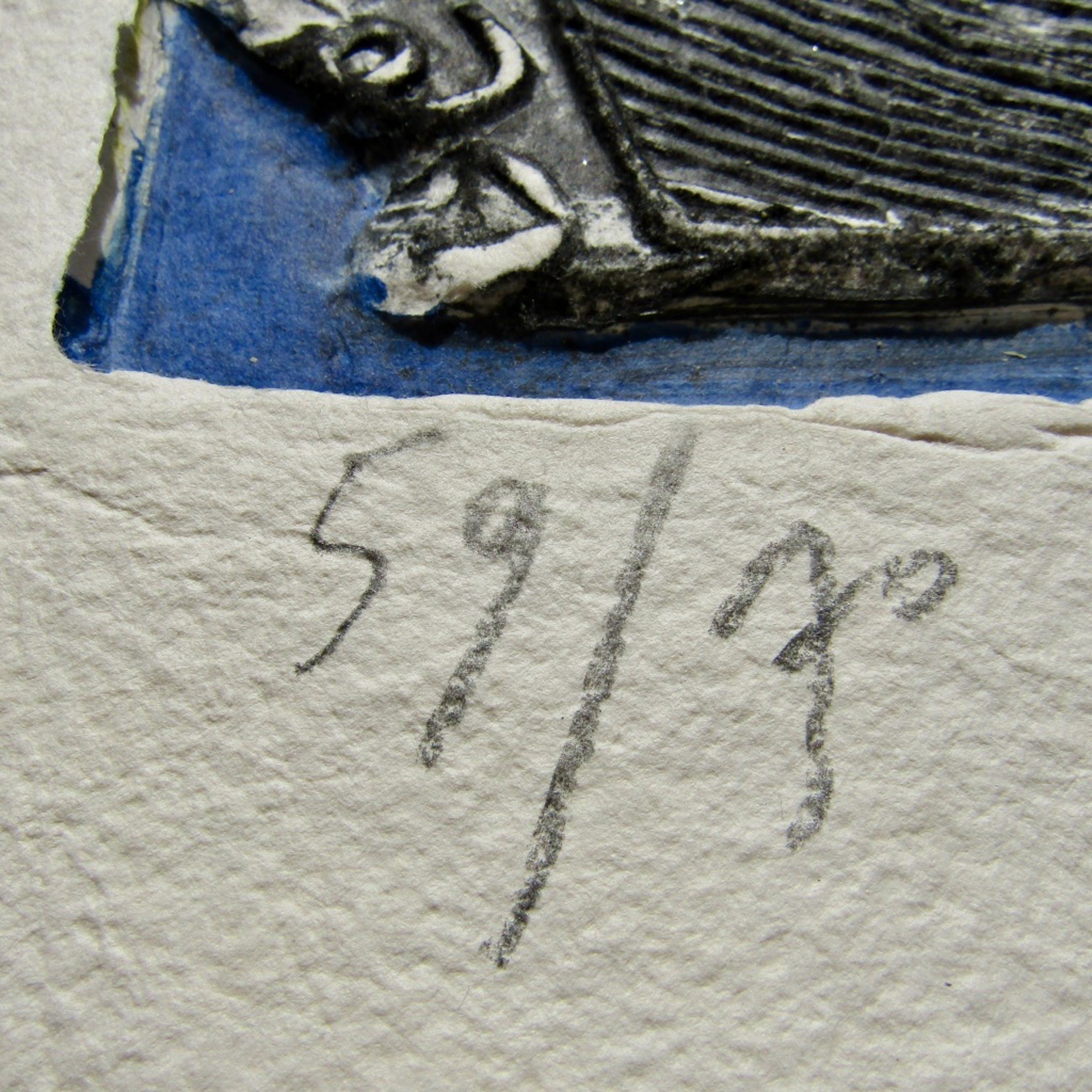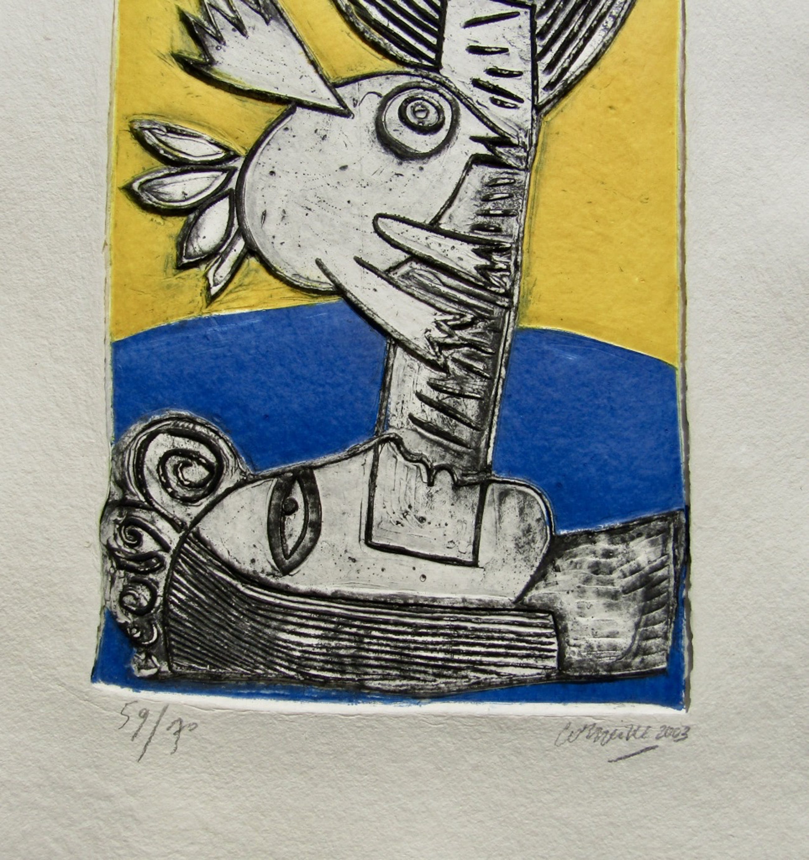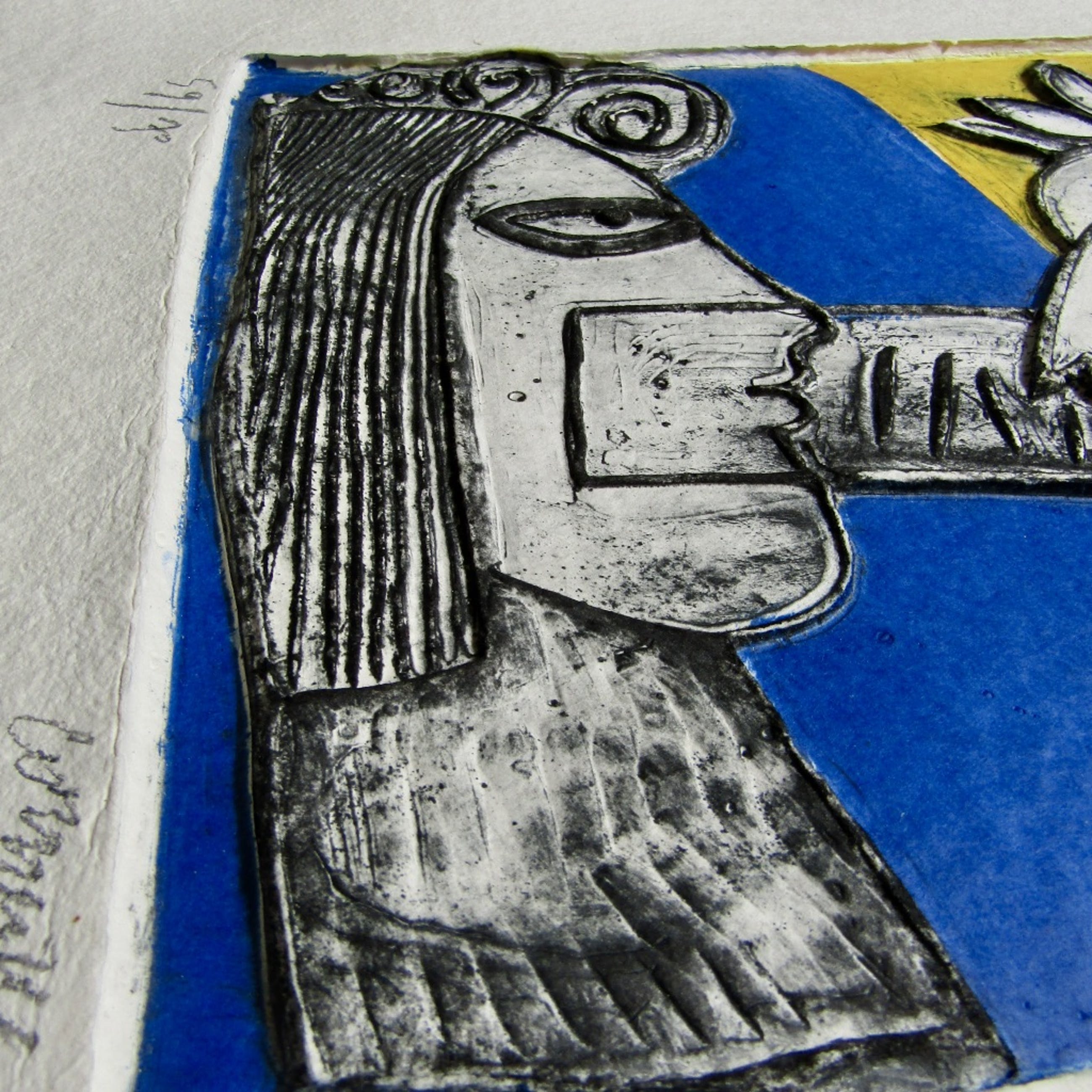 Zeer exclusieve aquagravure van Corneille getiteld Effervescence de L’ete. De aquagravure is een zeldzaam gebruikte (zeef)druk techniek waarbij zwaar hangeschept papier als het nat is in een relïef wordt geperst. Daarna wordt het kunstwerk met de hand ingeschilderd! Zeer bewerkelijke techniek en dus zelden toegepast. Het werk is in een bijzonder beperkte oplage van slechts 70 stuks geproduceerd.