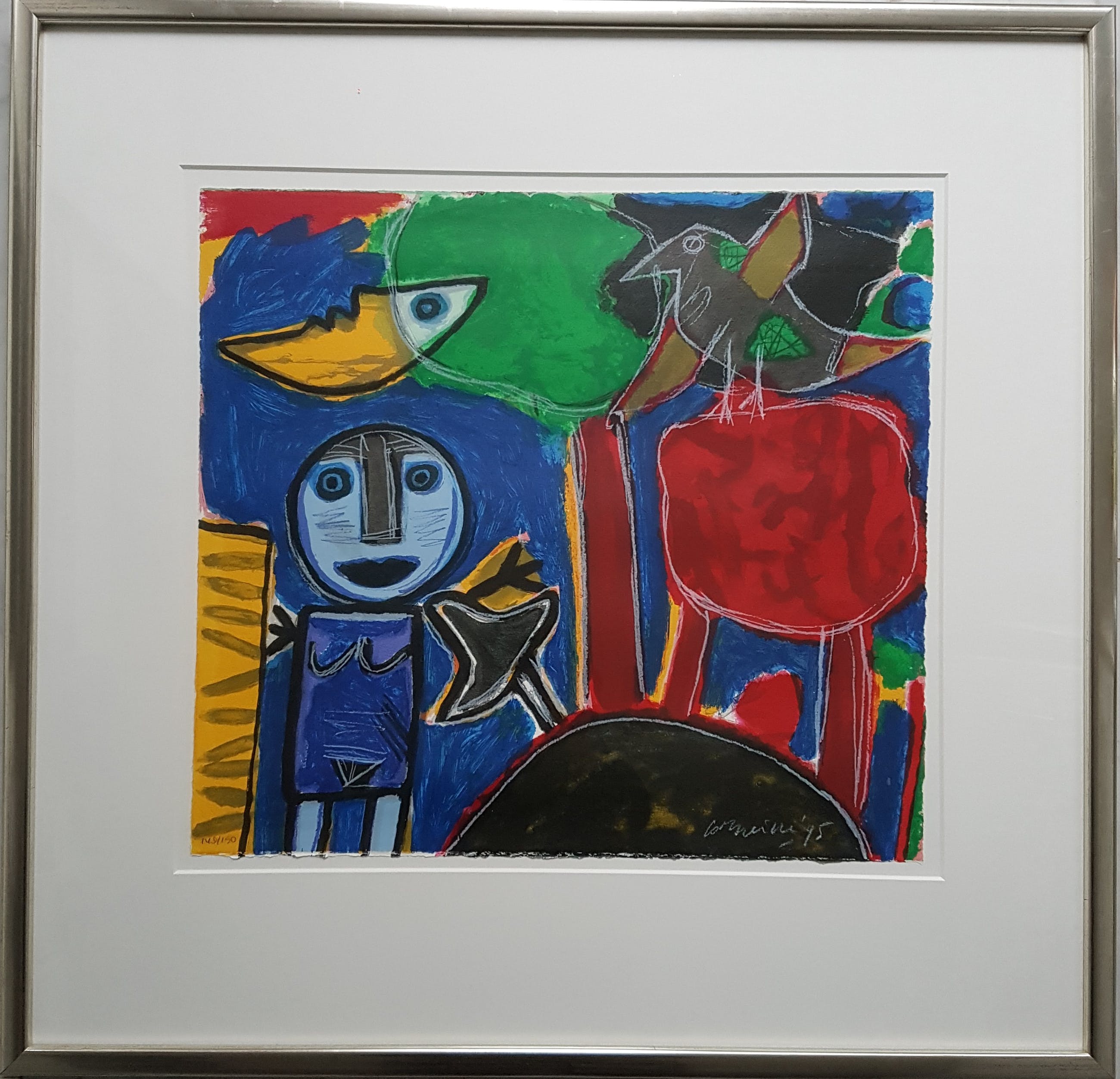 Mooie litho uit 1995 Titel Femmes et L oisseau Afmeting +/- 60 x 60 cm Gesigneerd rechtsonder en gedateerd 1995 links oplage nr 149/150 IIngelijst in mooie zwarte omlijsting met zilver