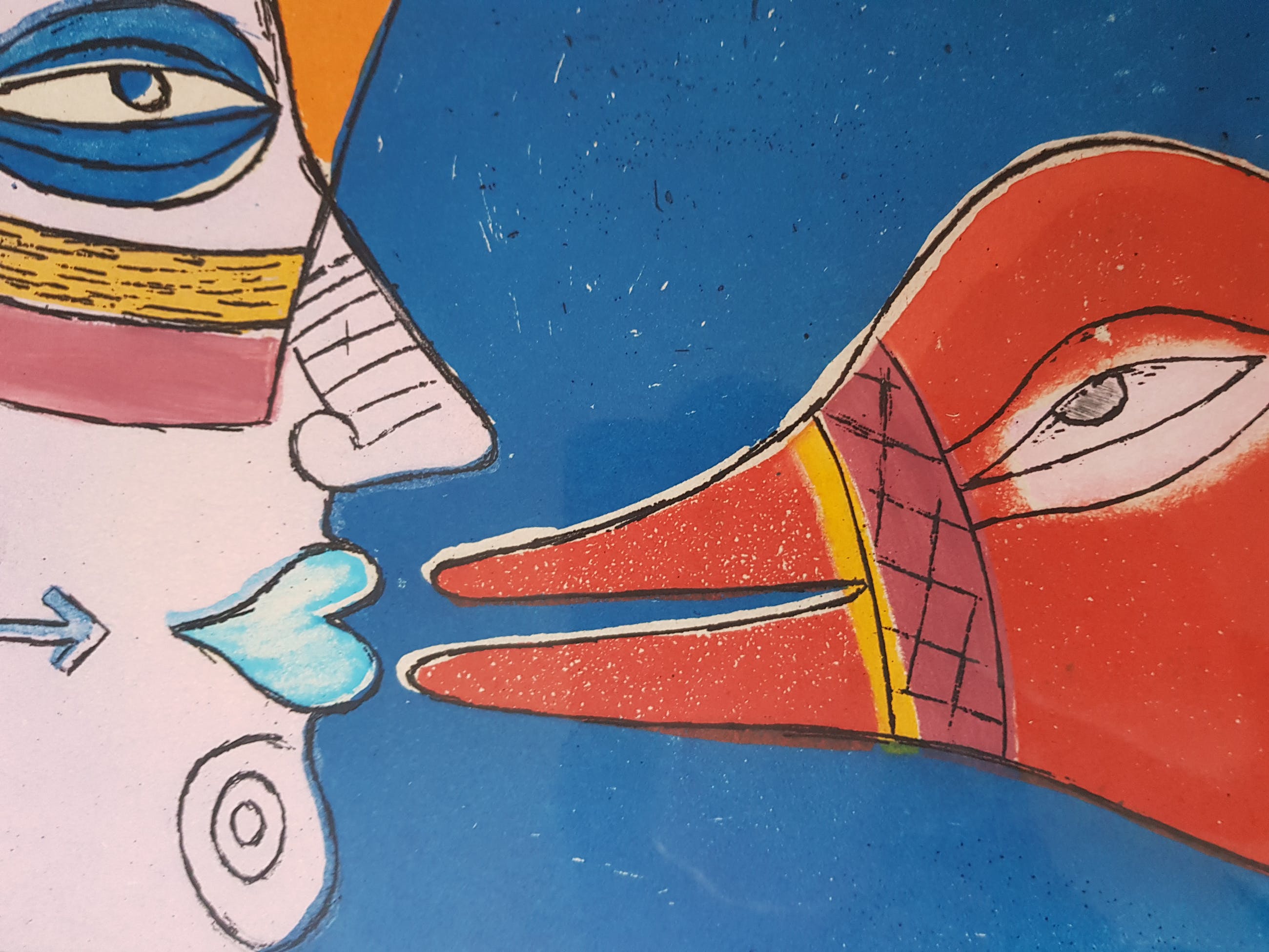 | Het werk is in goede staat en netjes ingelijst. Het heeft links- en rechtsonder 2 hele kleine krasjes in het glas. Zie foto. | |||