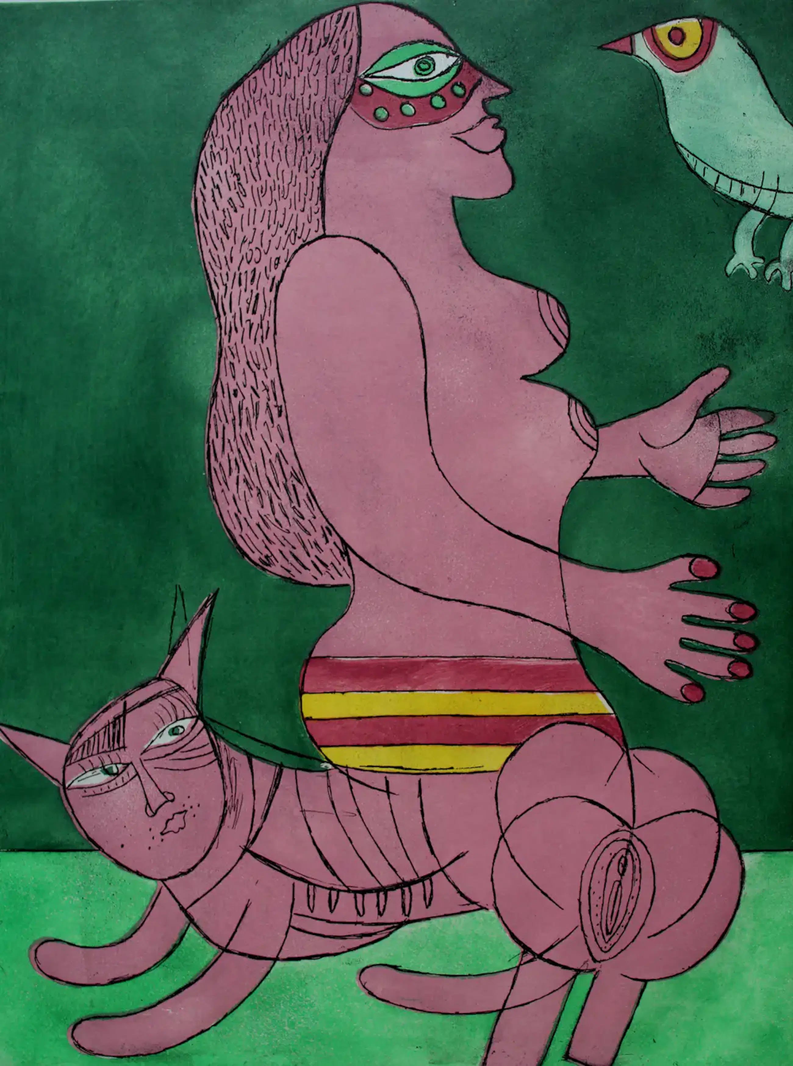 Ets van Corneille. Titel: Femme et Faune Familière. Jaar: 1978. Oplage: 8/25, E.A. Afmetingen blad: H76.5 x b56.5cm. Afmetingen voorstelling: H64 x b49cm. Het werk is, rechts onderaan, gesigneerd door de kunstenaar. De authenticiteit van het aangeboden werk wordt volledig gegarandeerd. Een certificaat van echtheid kan, op aanvraag, worden gemaild.