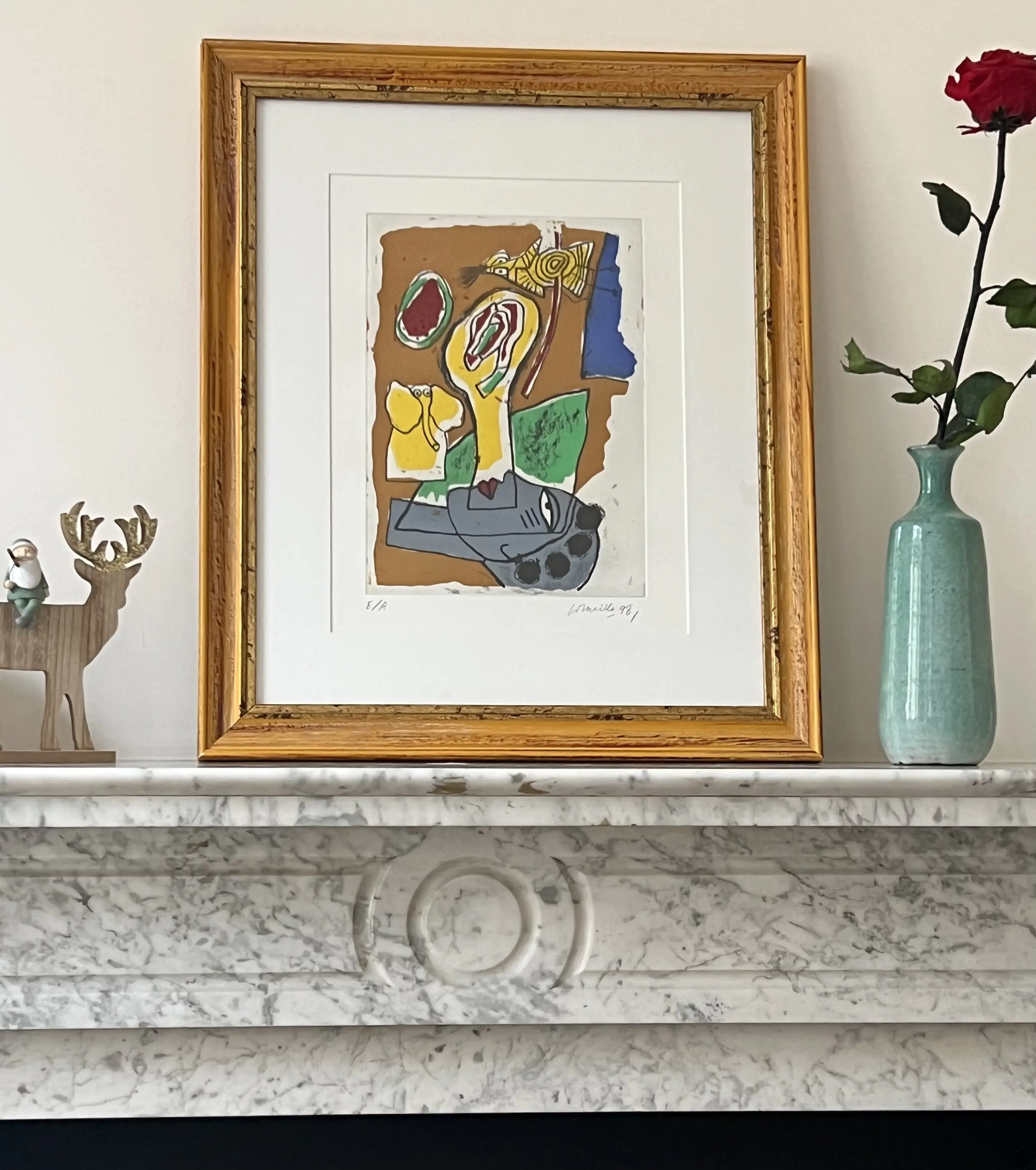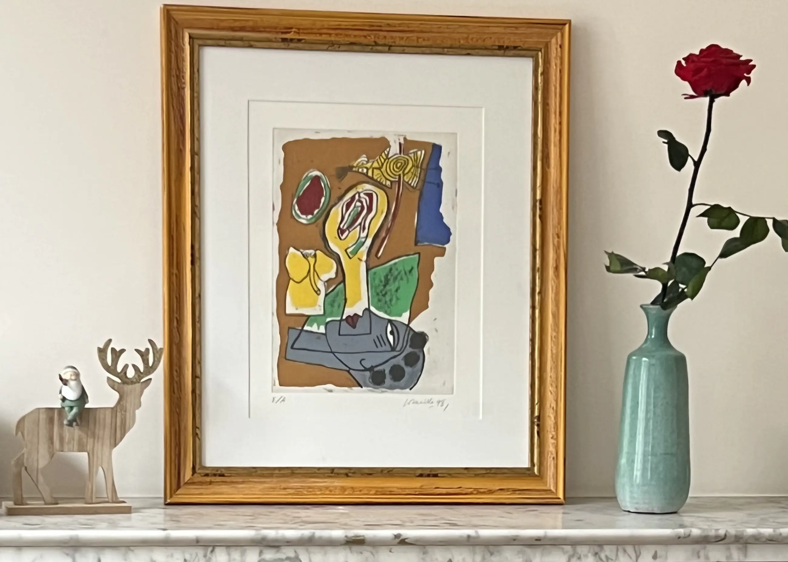 Mooie ingelijste kopergravure. Kunstenaarsexemplaar E/A onderaan gesigneerd en gedateerd in grafiet.
