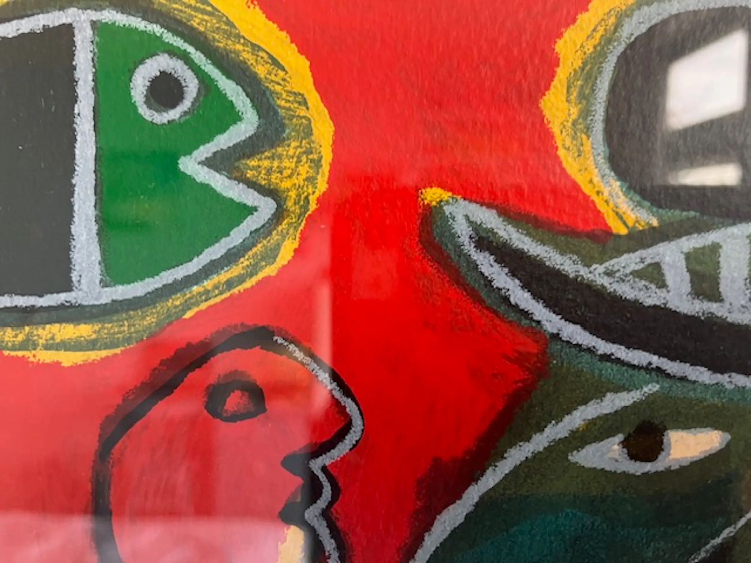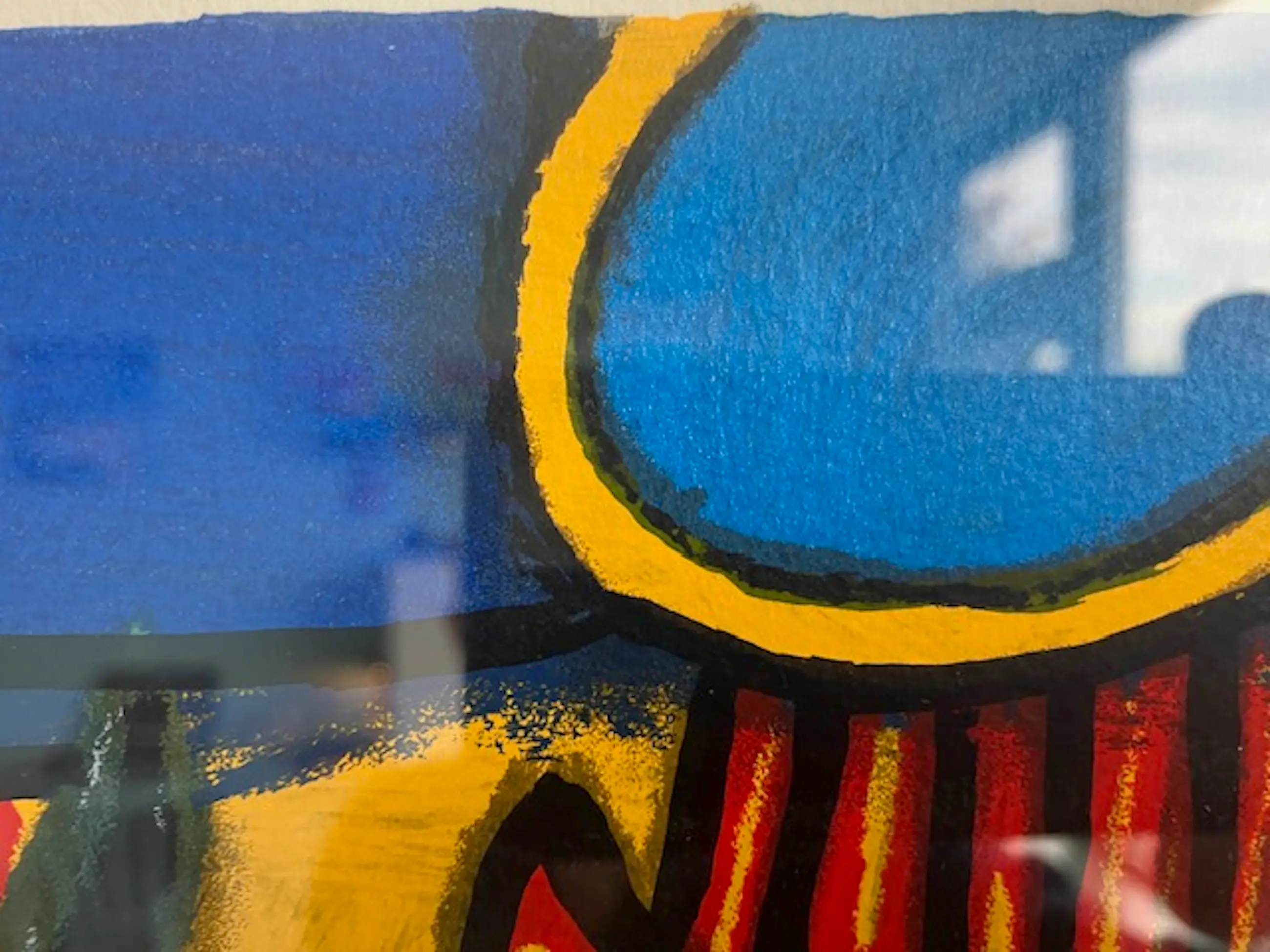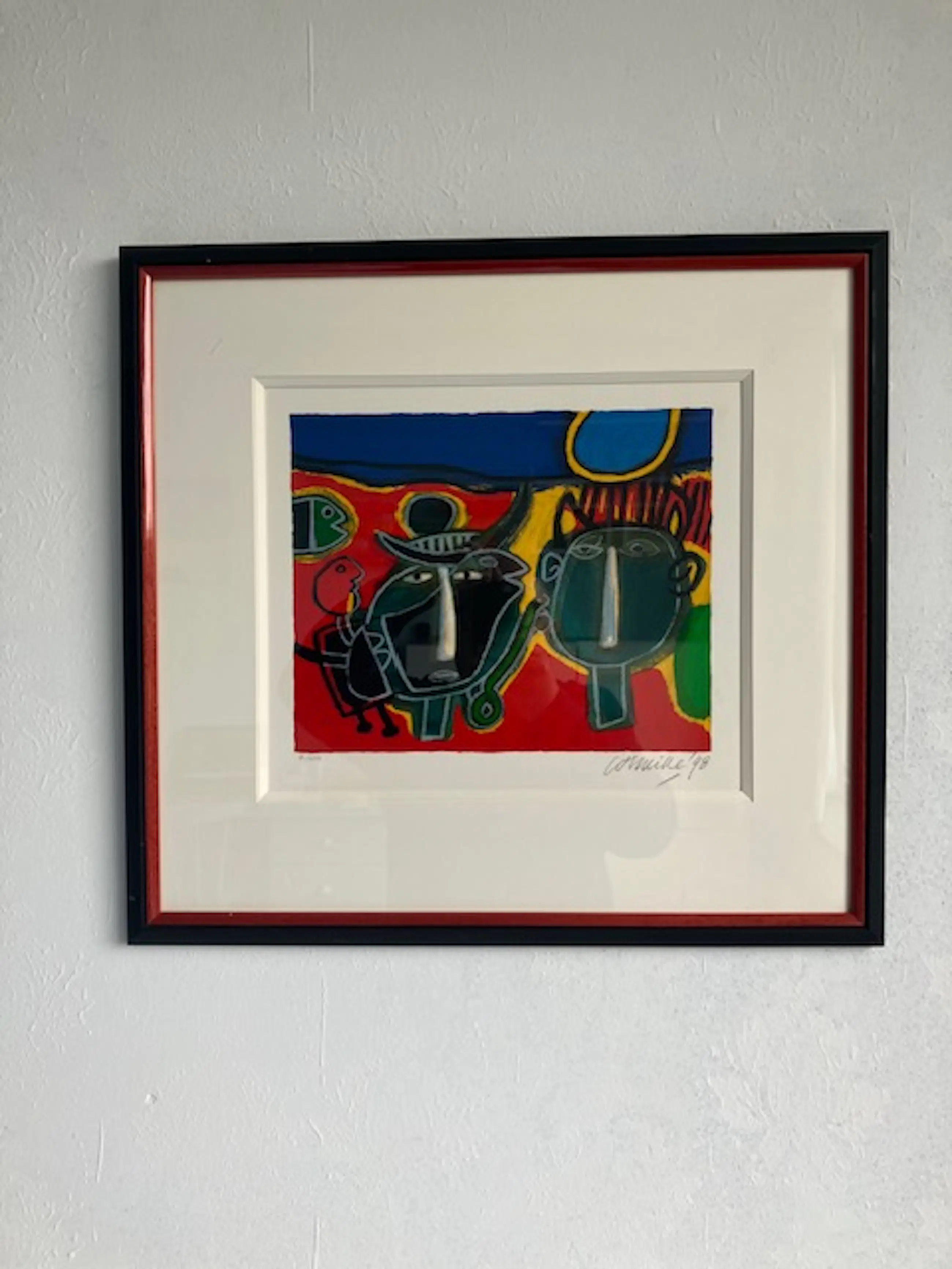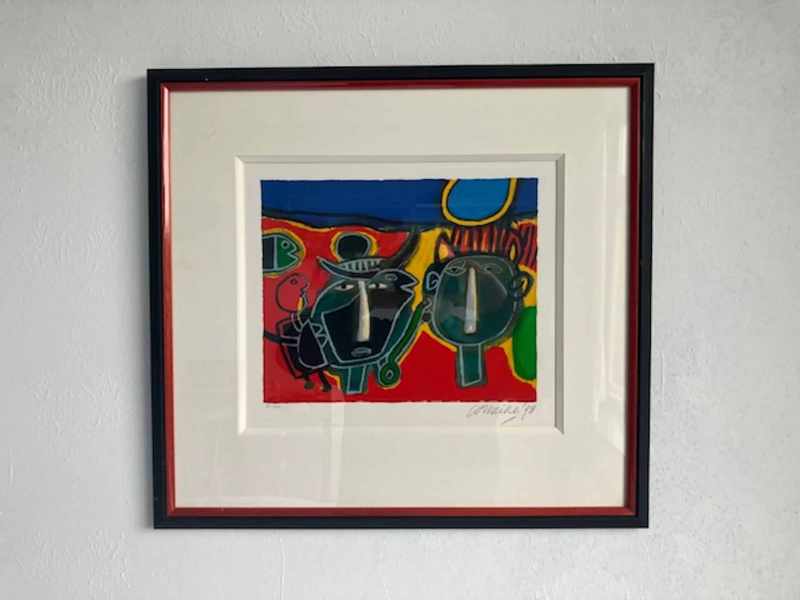 Schitterend werk van Corneille in nieuwstaat. Papier is als nieuw (geen invloed van zonlicht of roken) en de lijst is werkelijk prachtig. Professionele omlijsting is van Krutzmann.