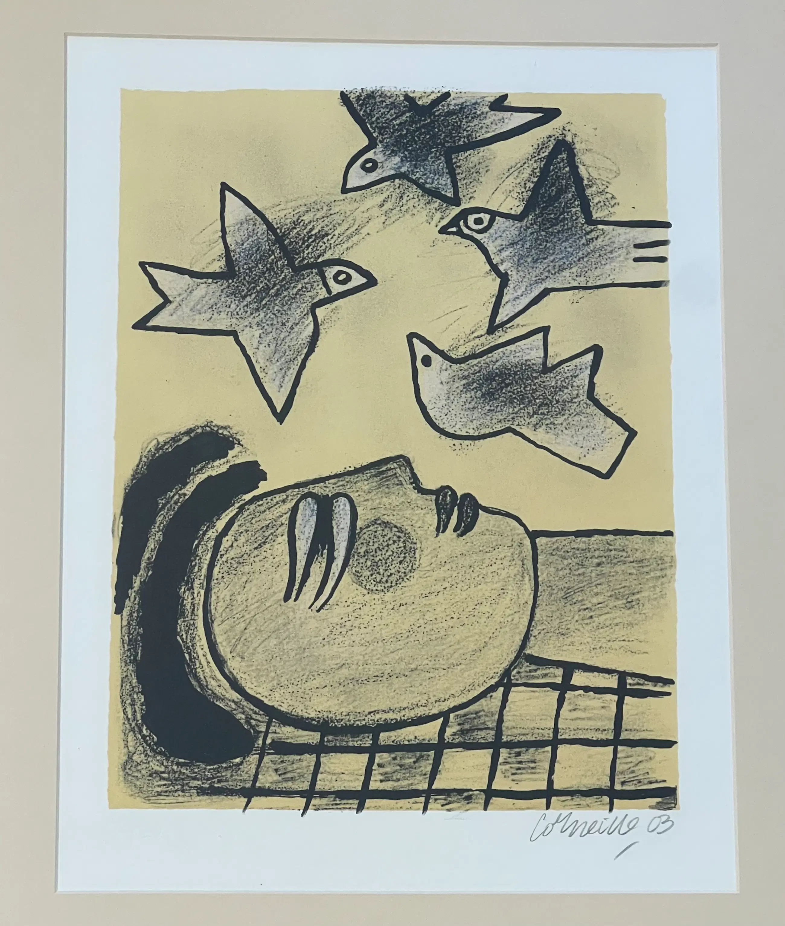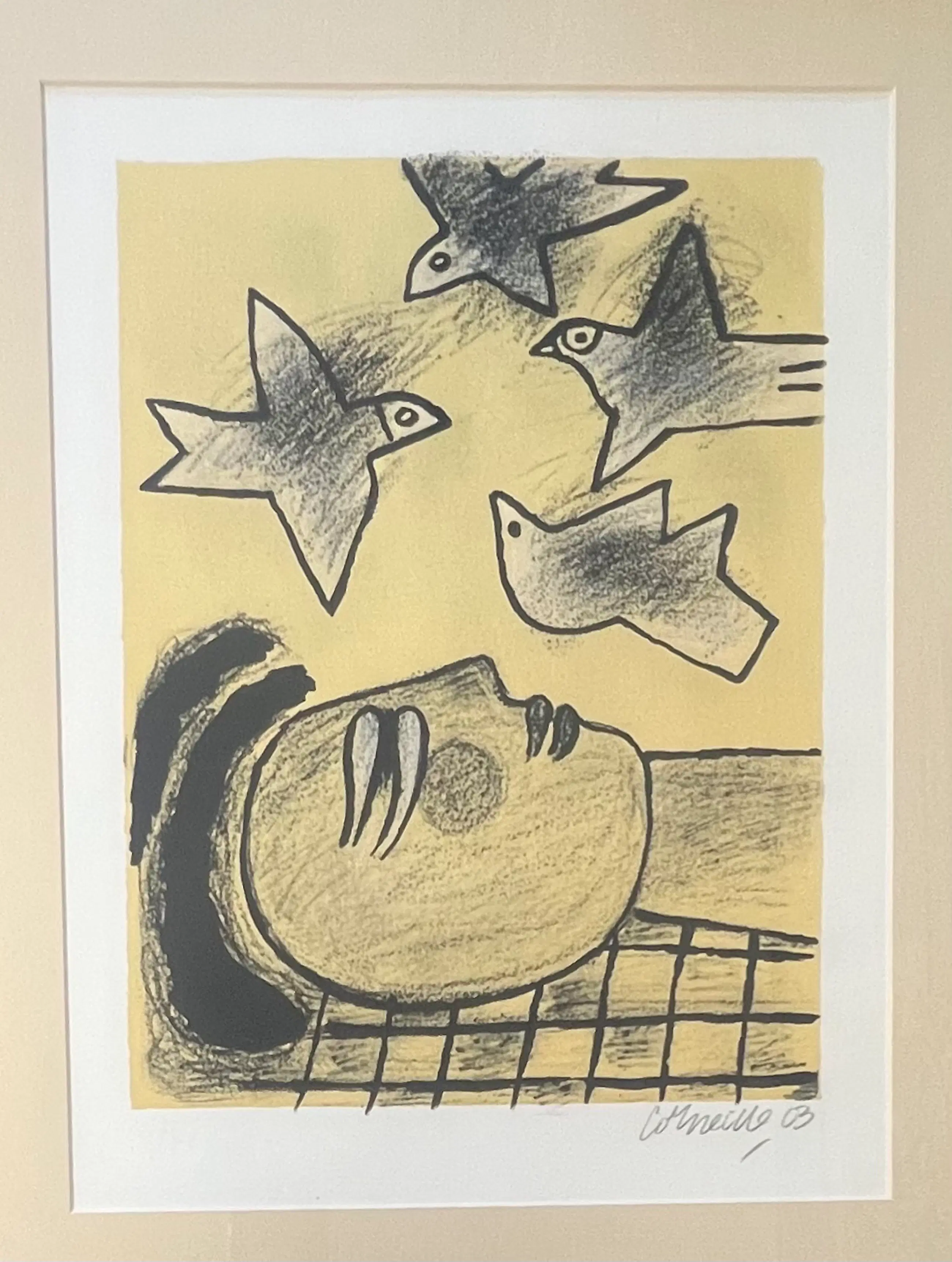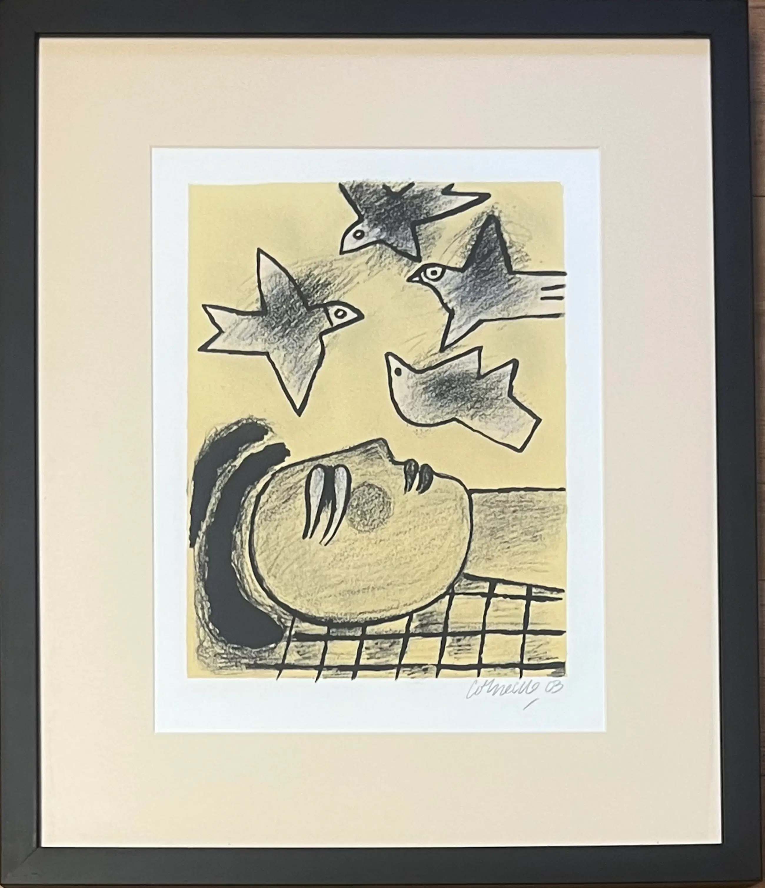 Originele lithografie van de schilder Guillaume Corneille (1922-2010), geboren in Luik uit Nederlandse ouders, stichtend lid van de Cobra-beweging.