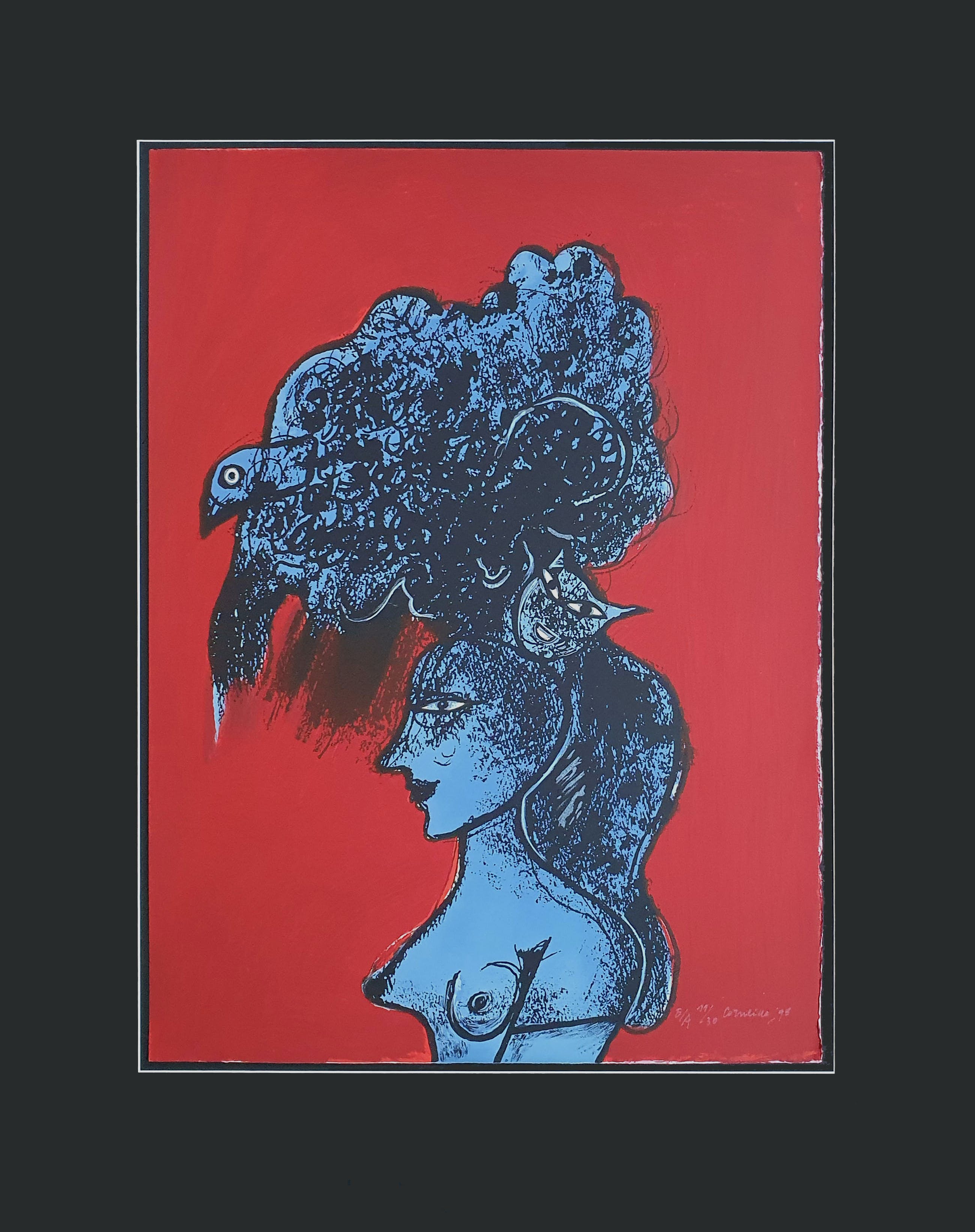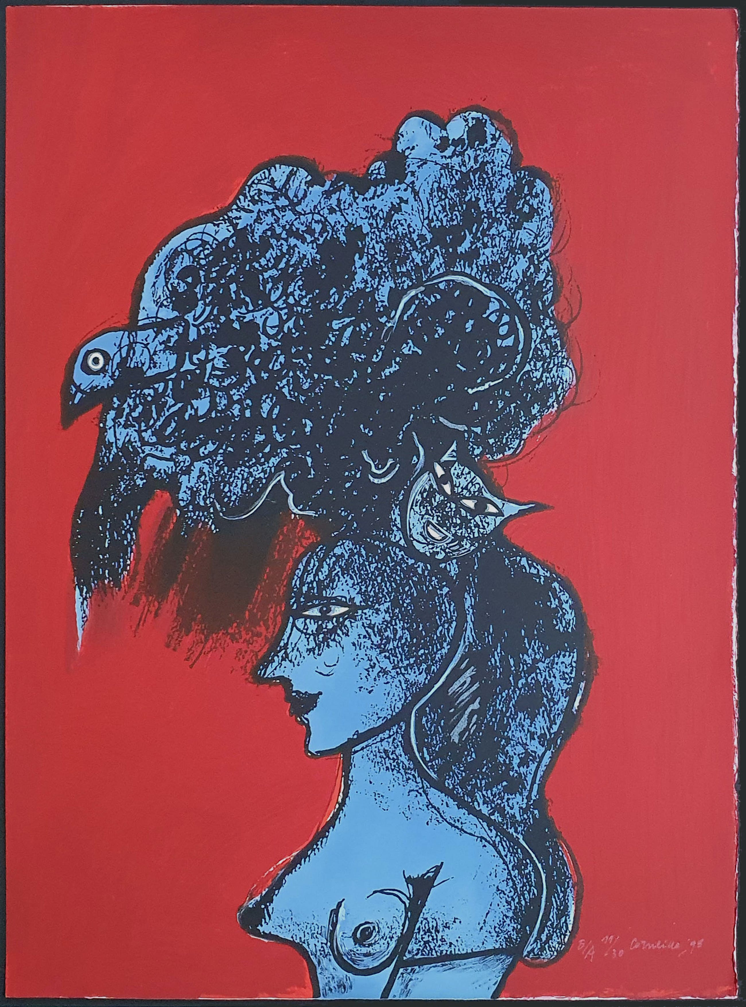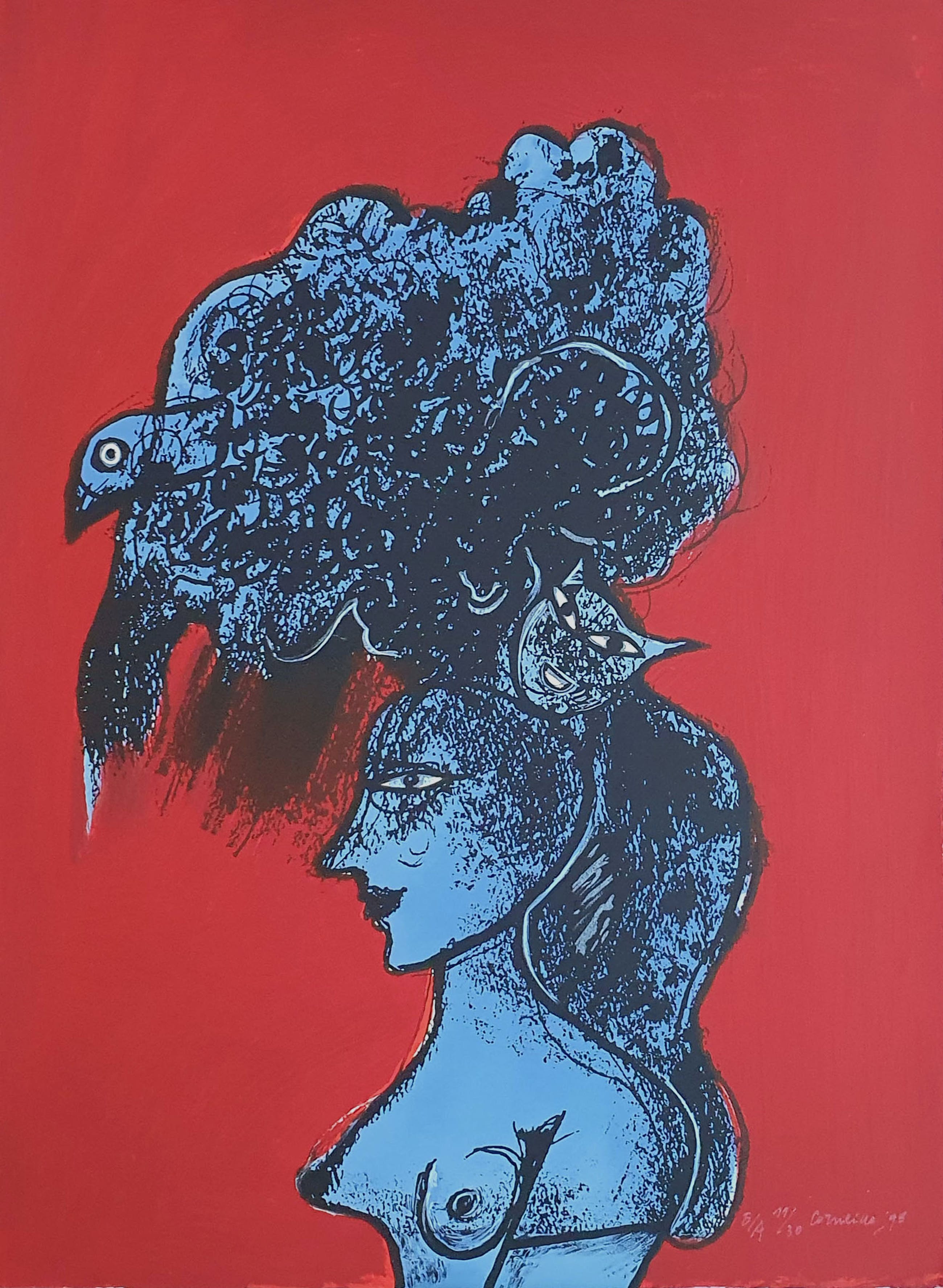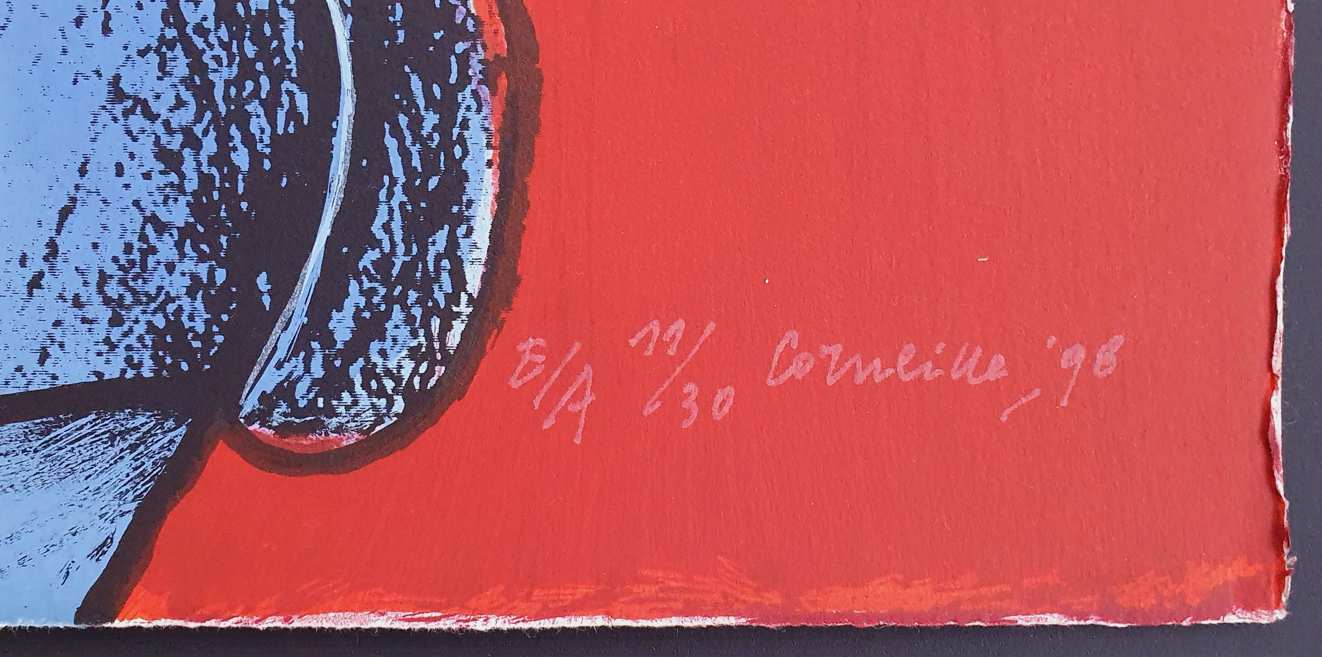 Imposant ingelijst, prachtig werk van Corneille uit 1998. Het werk is rechtsonder met de hand gesigneerd door de kunstenaar.
