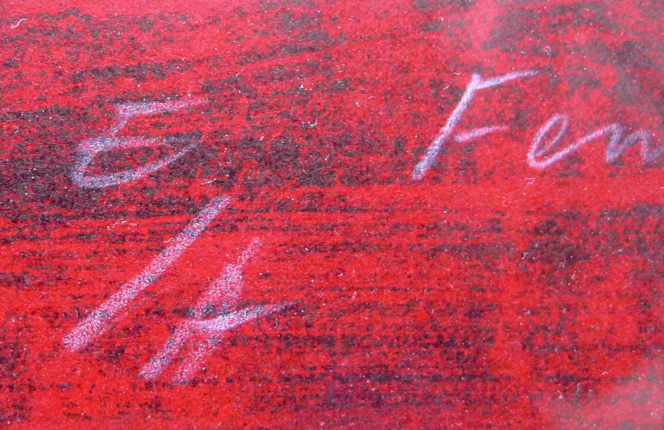 Een afbeelding met 2 liggende vrouwfiguren die zich onderwerpen aan kleurrijke, natuurlijke elementen, getroffen door de vrucht/bloem. Typisch werk van Corneille. Uit een kleine oplage van 135 stuks, het 'Epreuve d'Artiste' exemplaar!