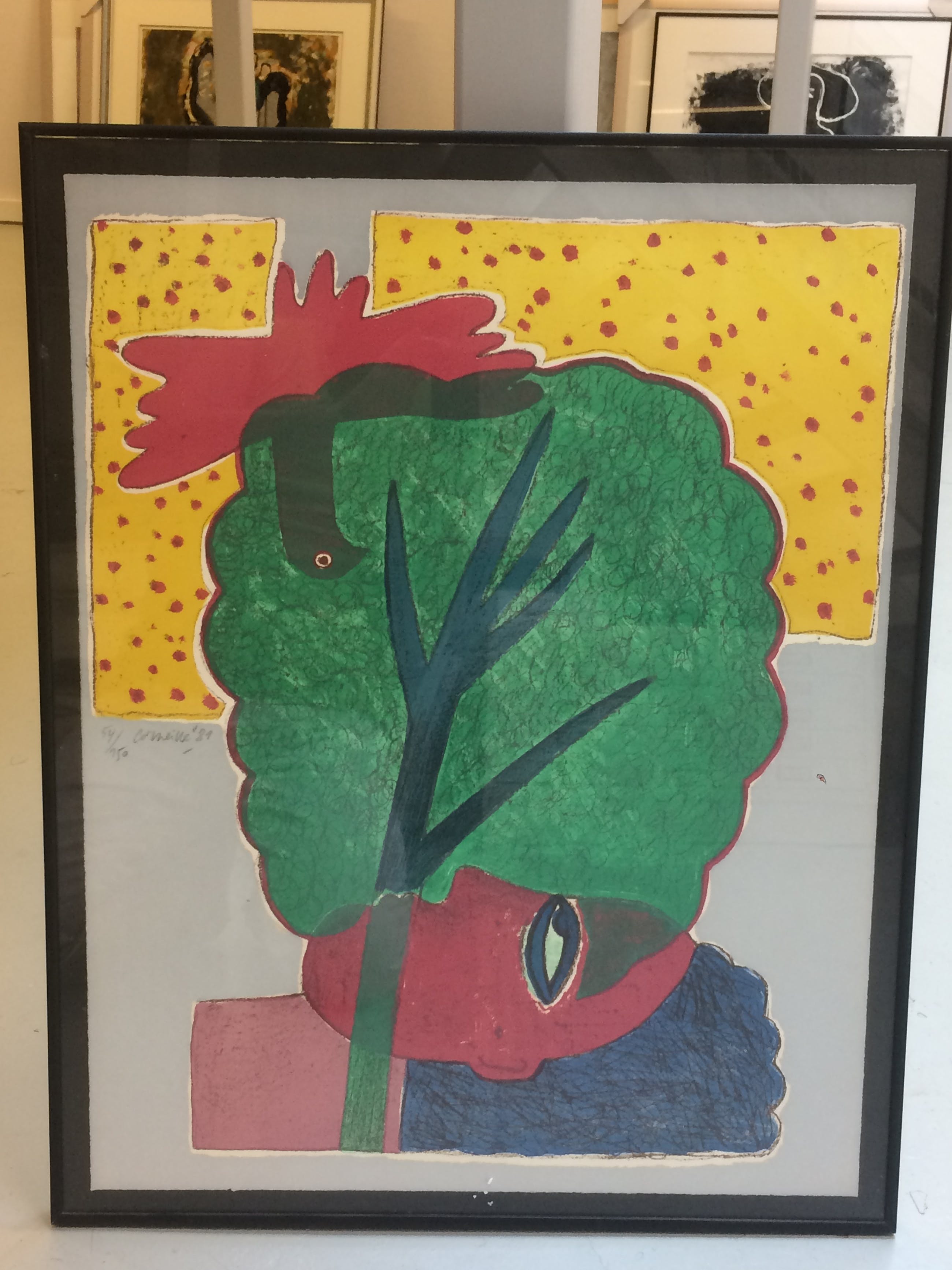 Mooie lithografie van Corneille uit 1981. Gesigneerd en genummerd 54/150Het werk hoort bij een map waar een gedicht van Thanh-Tam bij zit. Een serie van drie lithografieën die nu los worden aangeboden. Degene die ze alle drie of er twee koopt krijgt de originele map met het gedicht erbij. U kunt het werk bekijken en of naar aankoop afhalen bij galerie Rotor in Arkel.Het werk is ingelijst, maar de lijst heeft niet zoveel omhanden. U kunt het werk ophalen, per koerier toegezonden krijgen of uit de lijst als pakket per aangetekende post toegezonden krijgen.