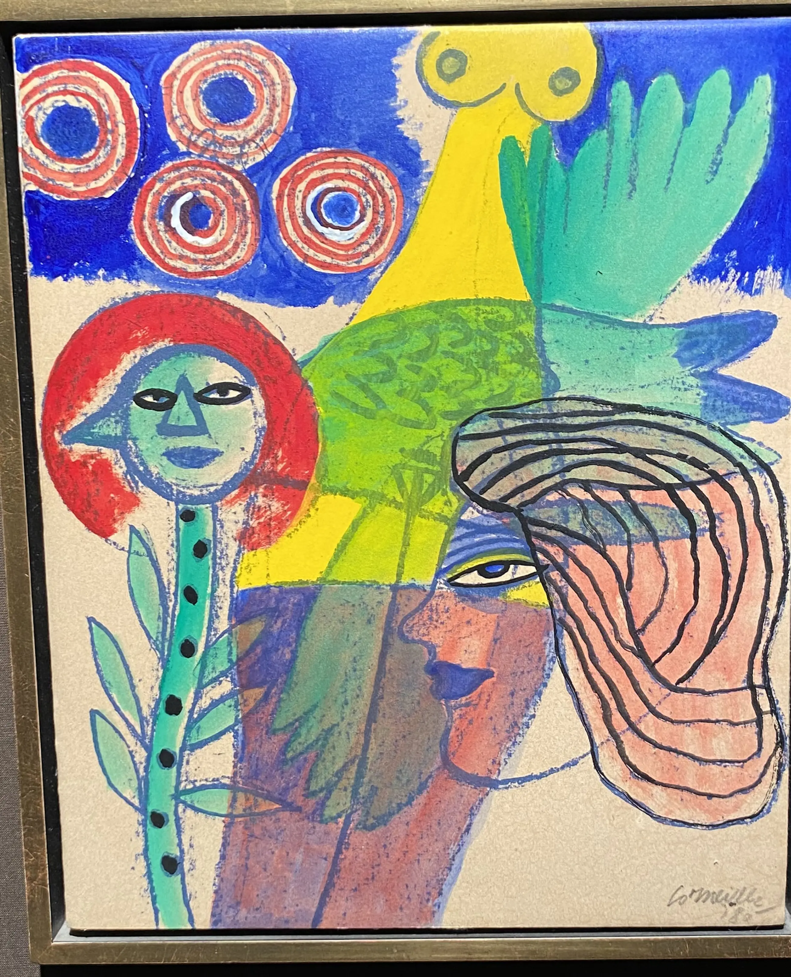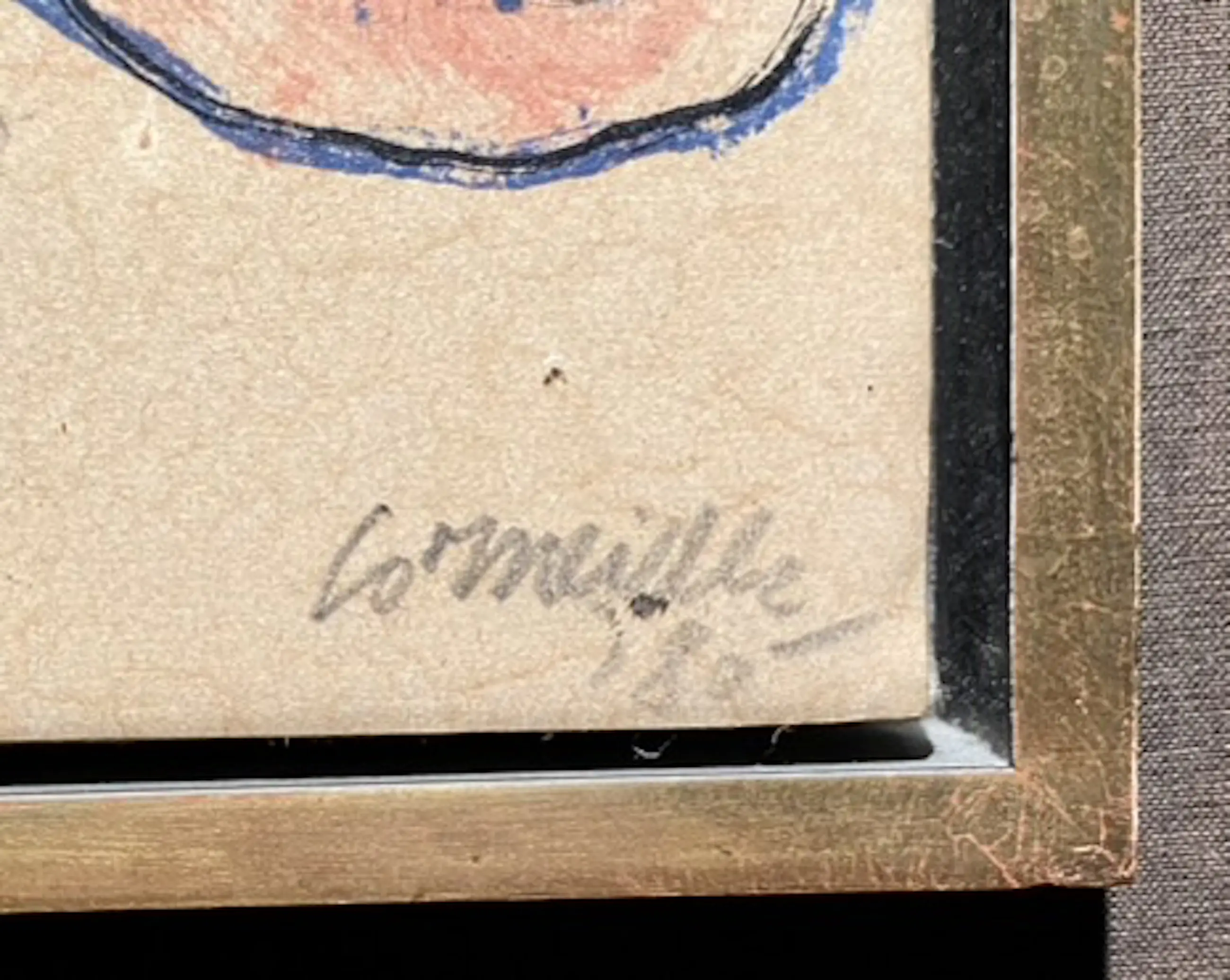 "Figuren" van Corneille is een gemengde techiek papier op doek uit 1980. Voorzien van een foto van het werk gesigneerd door de kunstenaar. Aangekocht bij Robinsons Art Gallery op 01/12/1996.