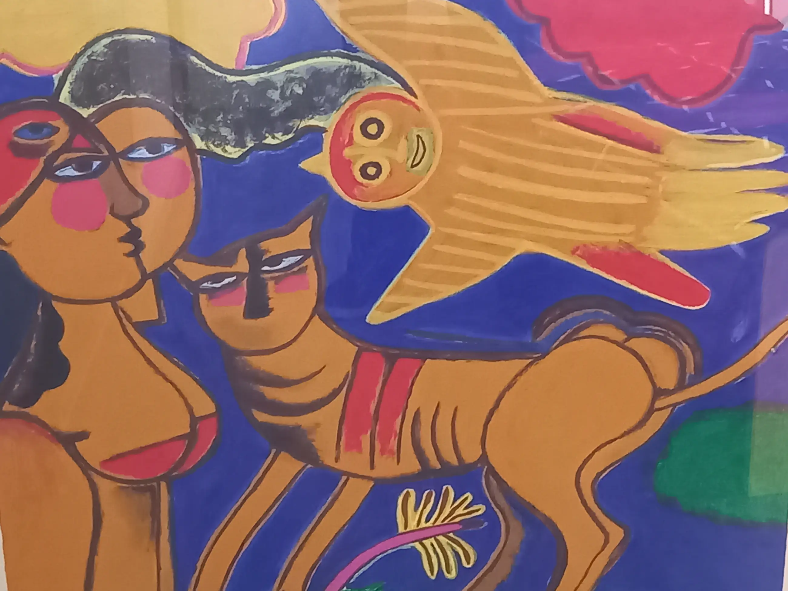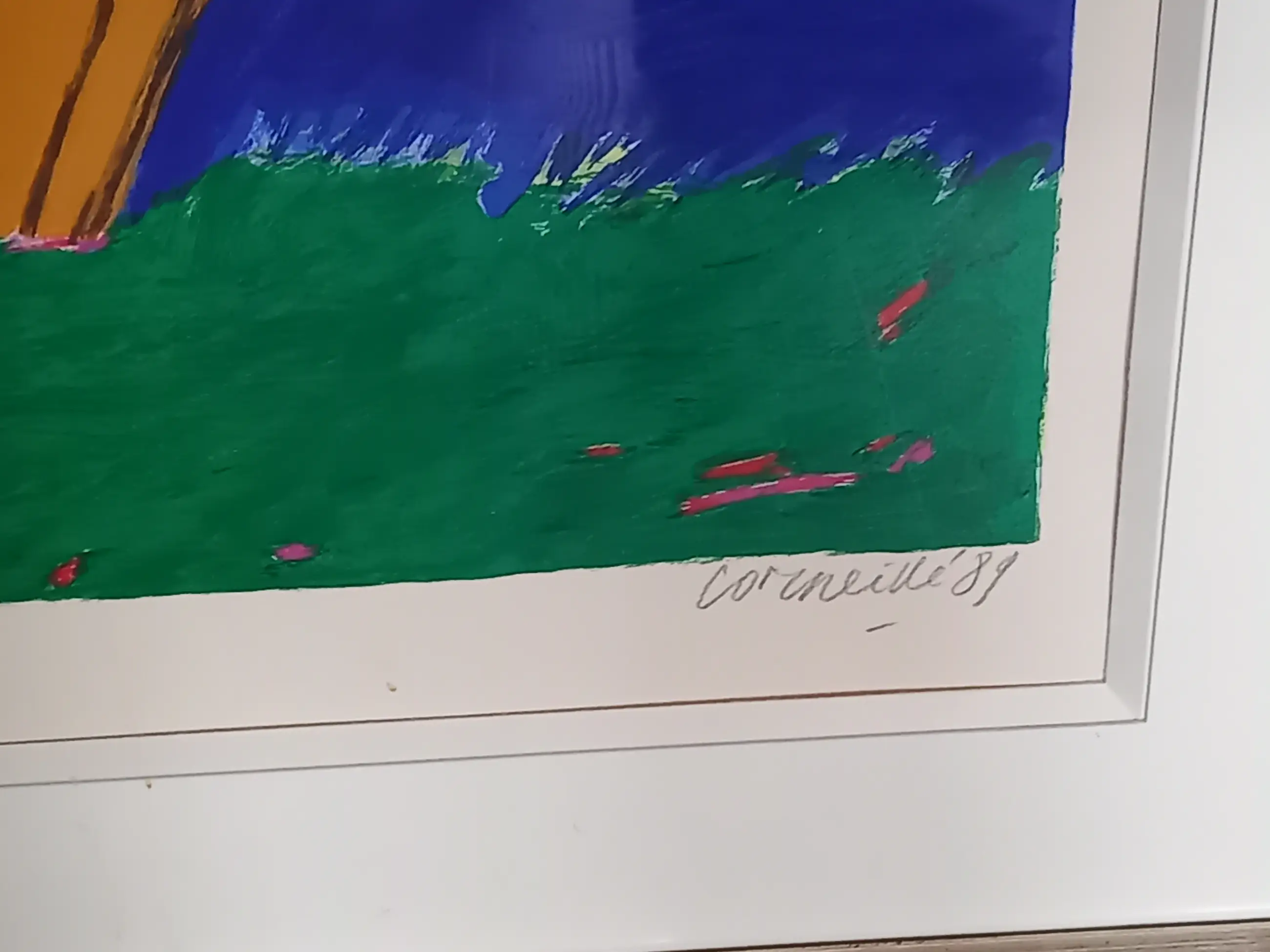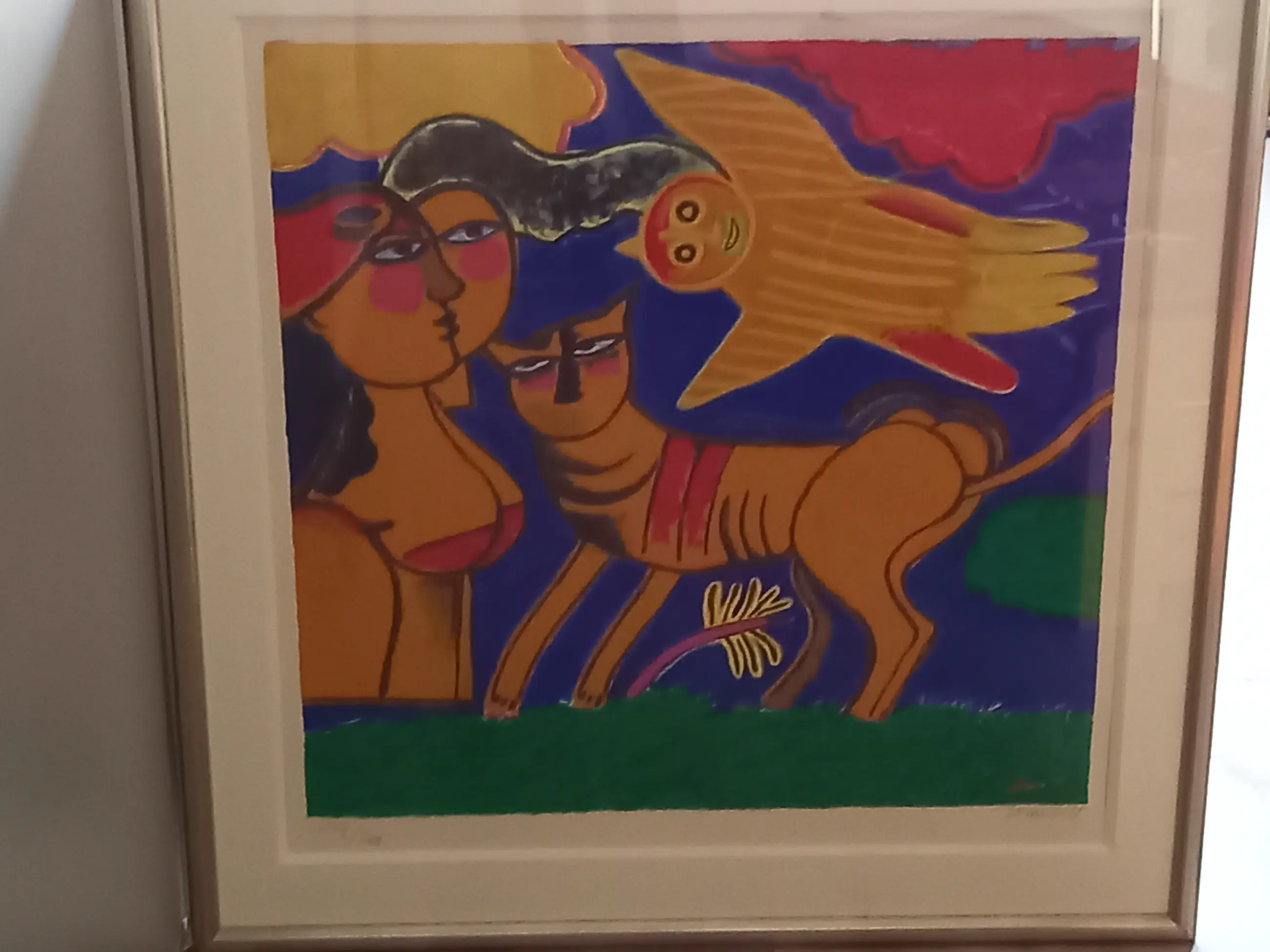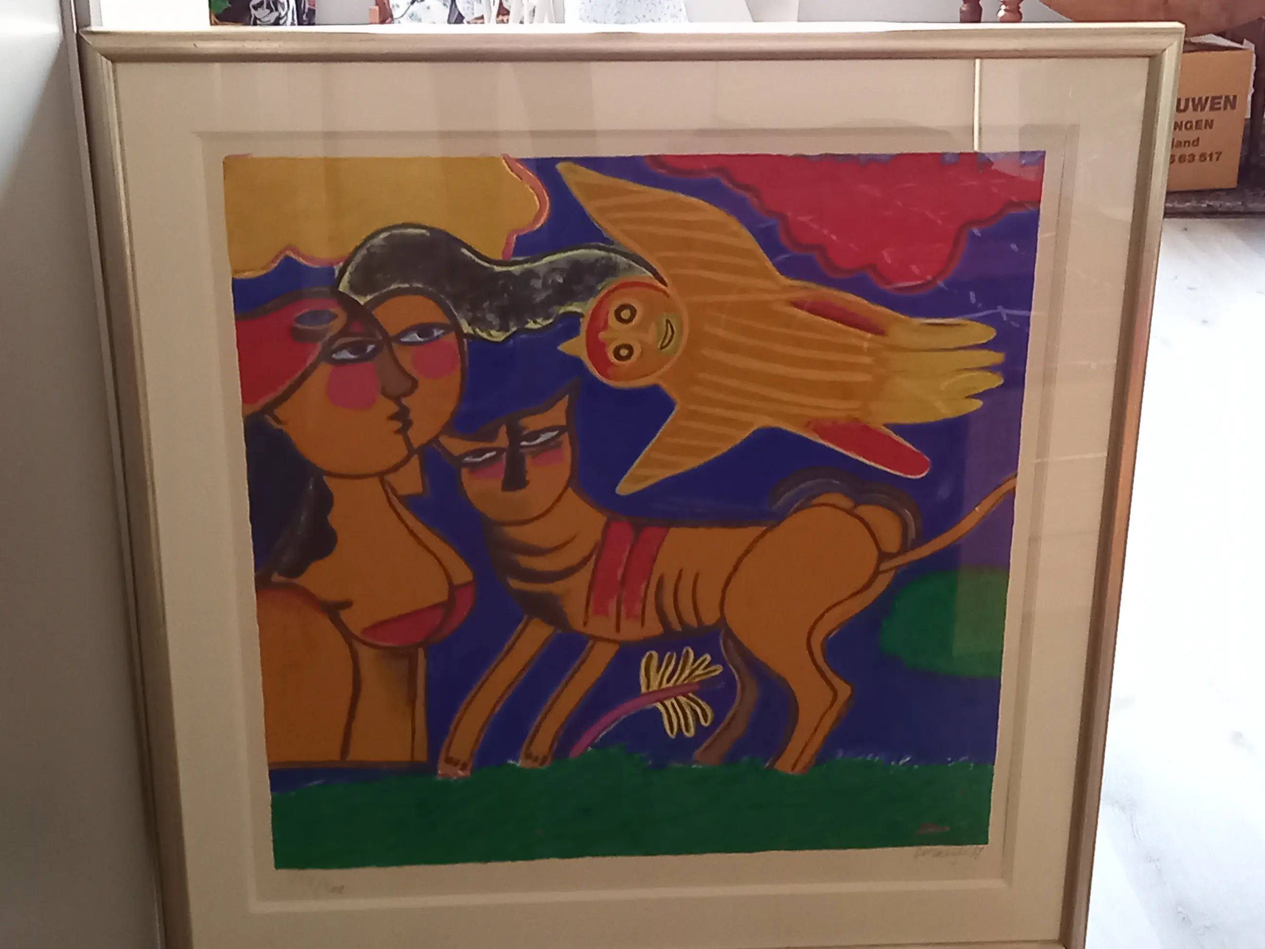 Het is een kleurrijk en opvallend werk in de typische Corneille stijl. Het verkeert in zeer goede staat, evenals de lijst. Het werk dient te worden opgehaald, of koper zorgt zelf voor koeriersbedrijf.