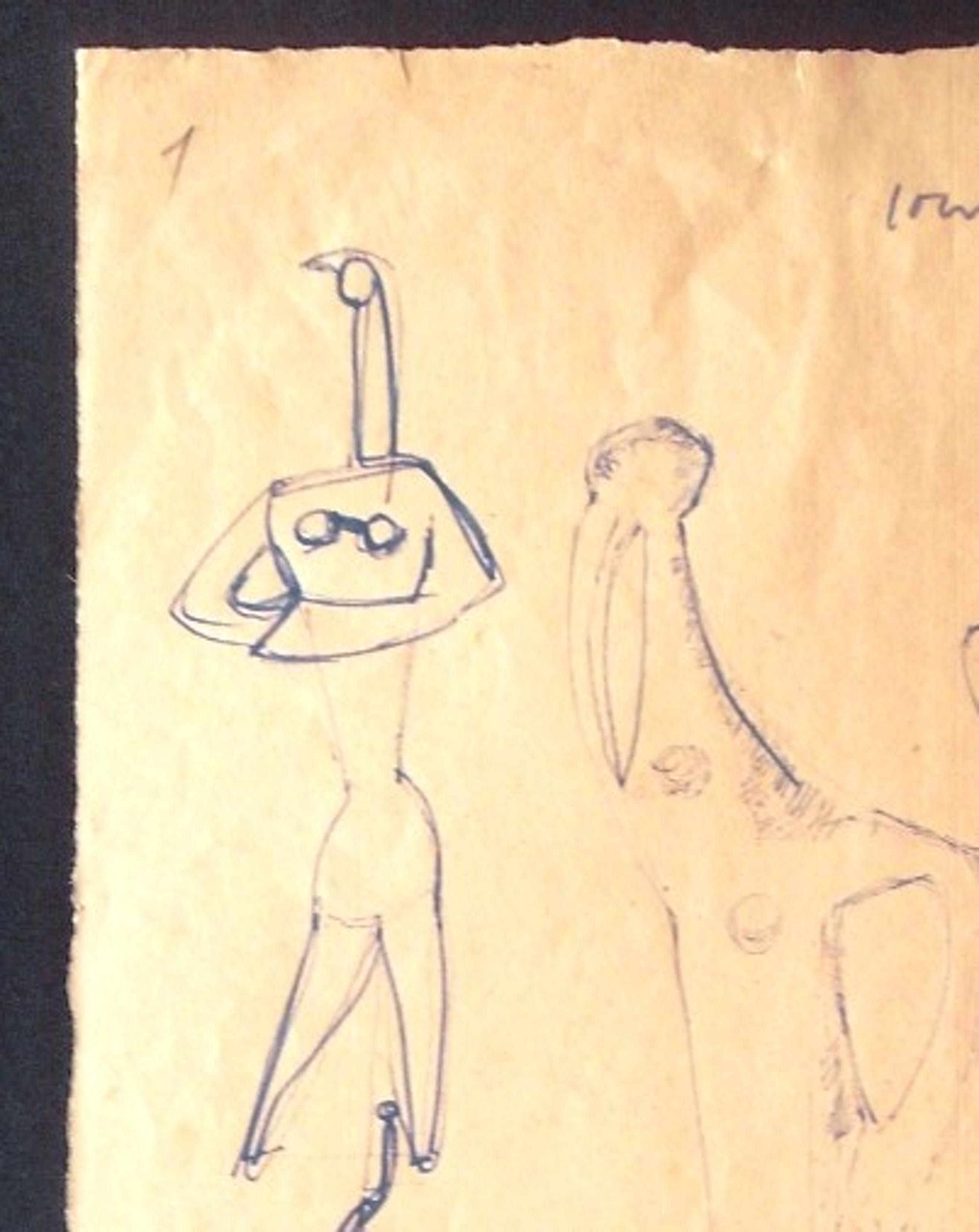 Corneille tekening op bruin papier (recto en verso) op de achterzijde ook studie van figuren (zie laatste foto) afmetingen: 41,50 x 23,50 cm sporen van de tijd aanwezig op het papier, tekening zelf in perfecte staat jaartal: 1947 een fotocertificaat opgemaakt en gesigneerd door de echtgenote mevrouw N. Beverloo is voorhanden