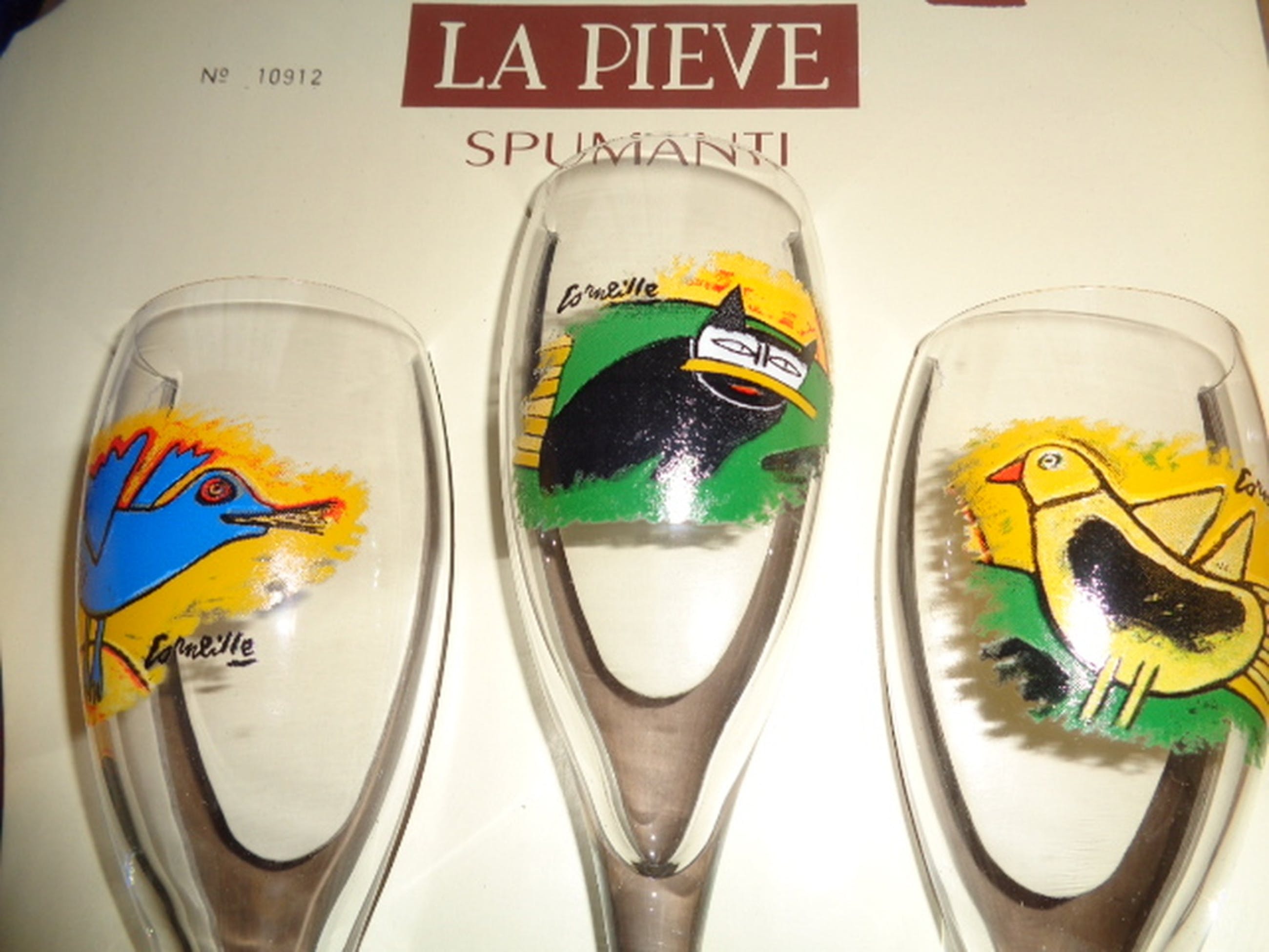 Tesamen met 3 flutes bedrukt met de bekende Corneille vogels en een kat.