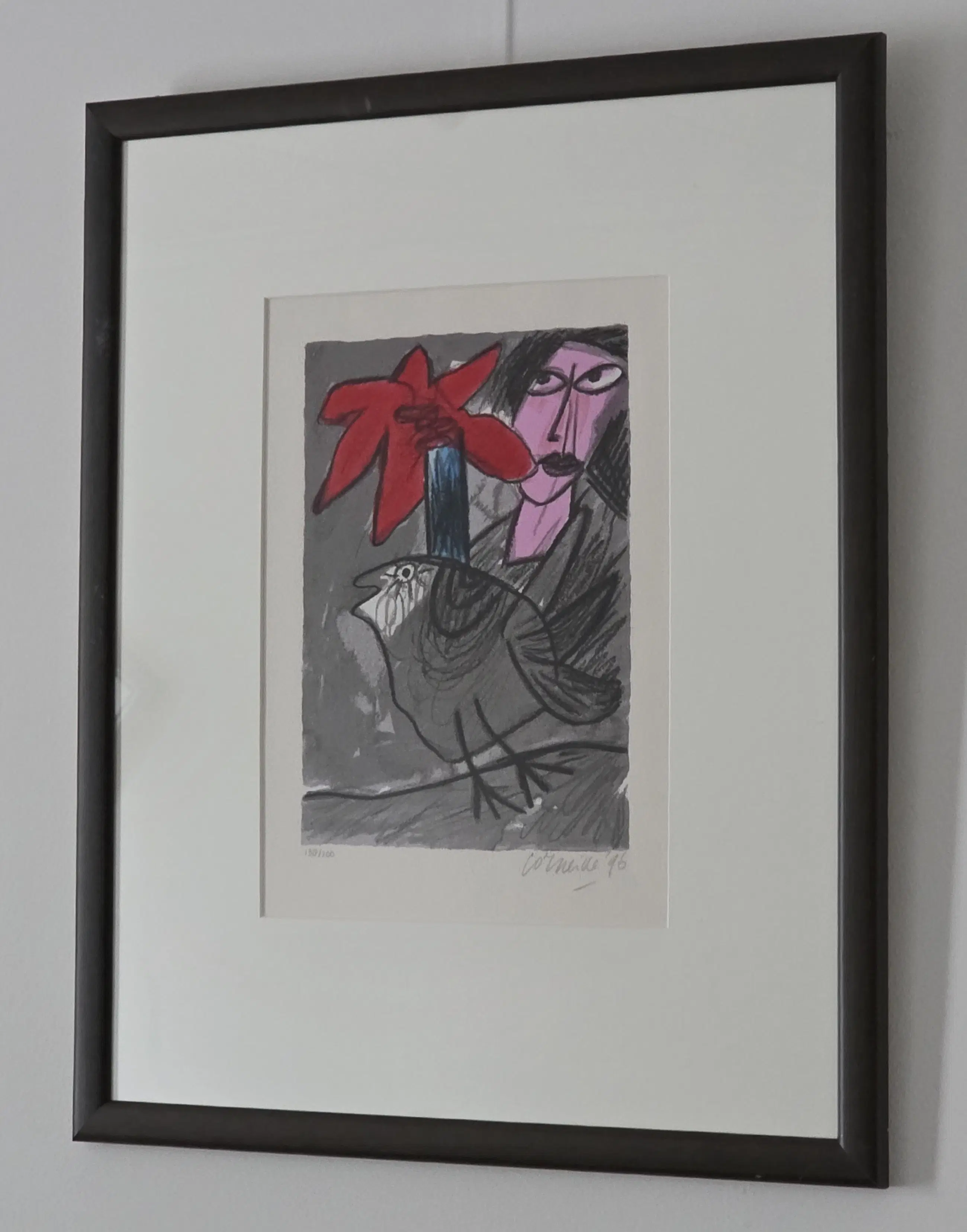 Word geleverd met echtheidscertificaat. Origineel en gelimiteerd werk. Mooie lijst en Passe-partout Handgesigneerd, Genummerd en gedateerd door Corneille. Oplage 138/200. Jaartal 1996.