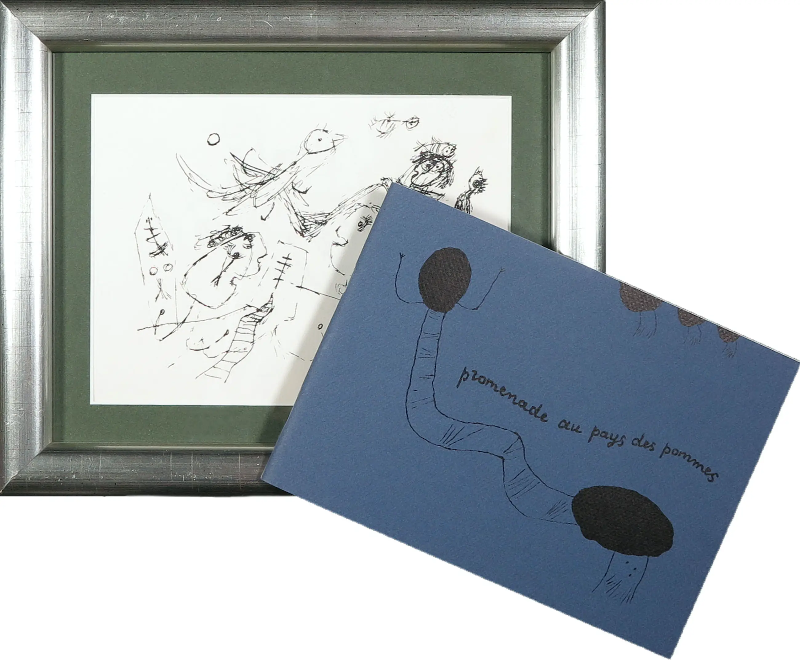 Lot van een ingelijste handgesigneerde E.A. fototypie uit Promenade au Pays des Pommes, inclusief de derde druk van het boekje uit 1995.