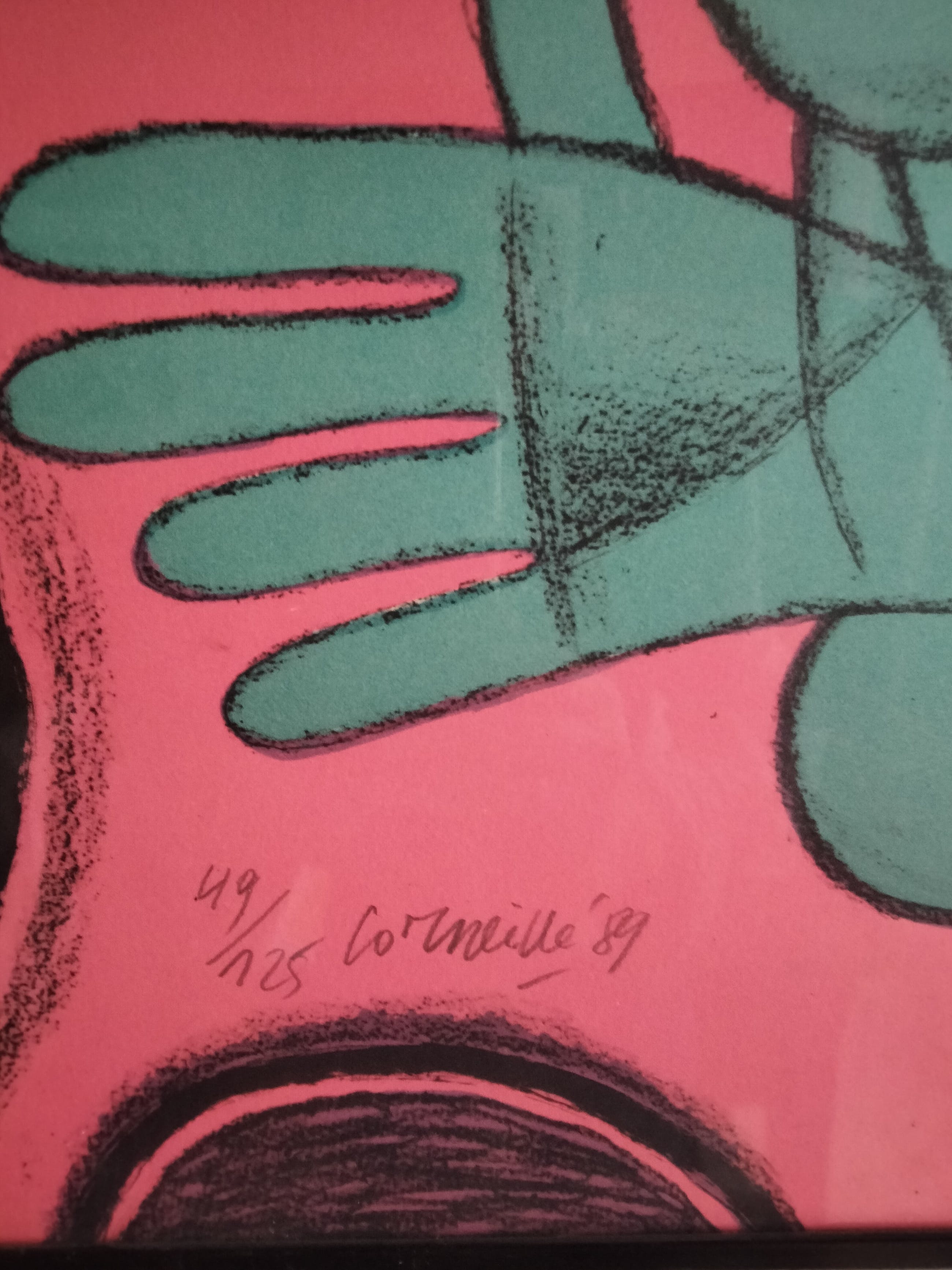 Uiteraard gesigneerd gedateerd en genummerd door corneille in potlood. Het werk is op te sturen echter dit is op risico van de koper.Ivm de kwetsbaarheid ervan is afhalen een betere optie. Het werk is eventueel ook te bezorgen in een straal van 250 km a 0,30 /km vanaf eindhoven.