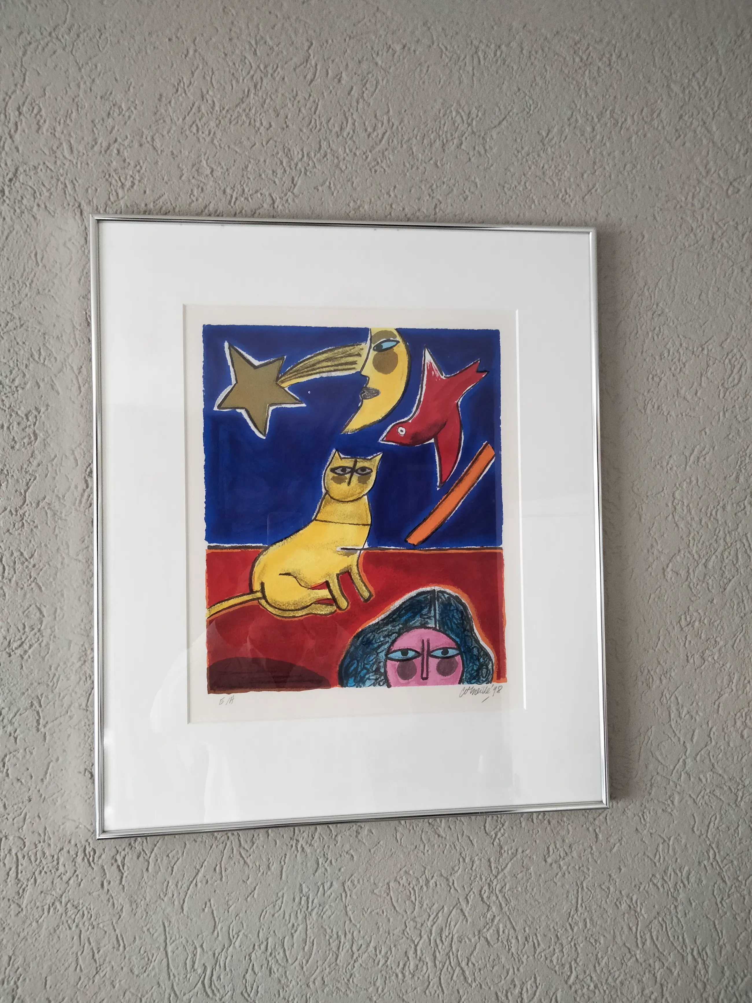 Fraaie kleurrijke zeefdruk van corneille uit 1998. Oplagenummer:E/A
