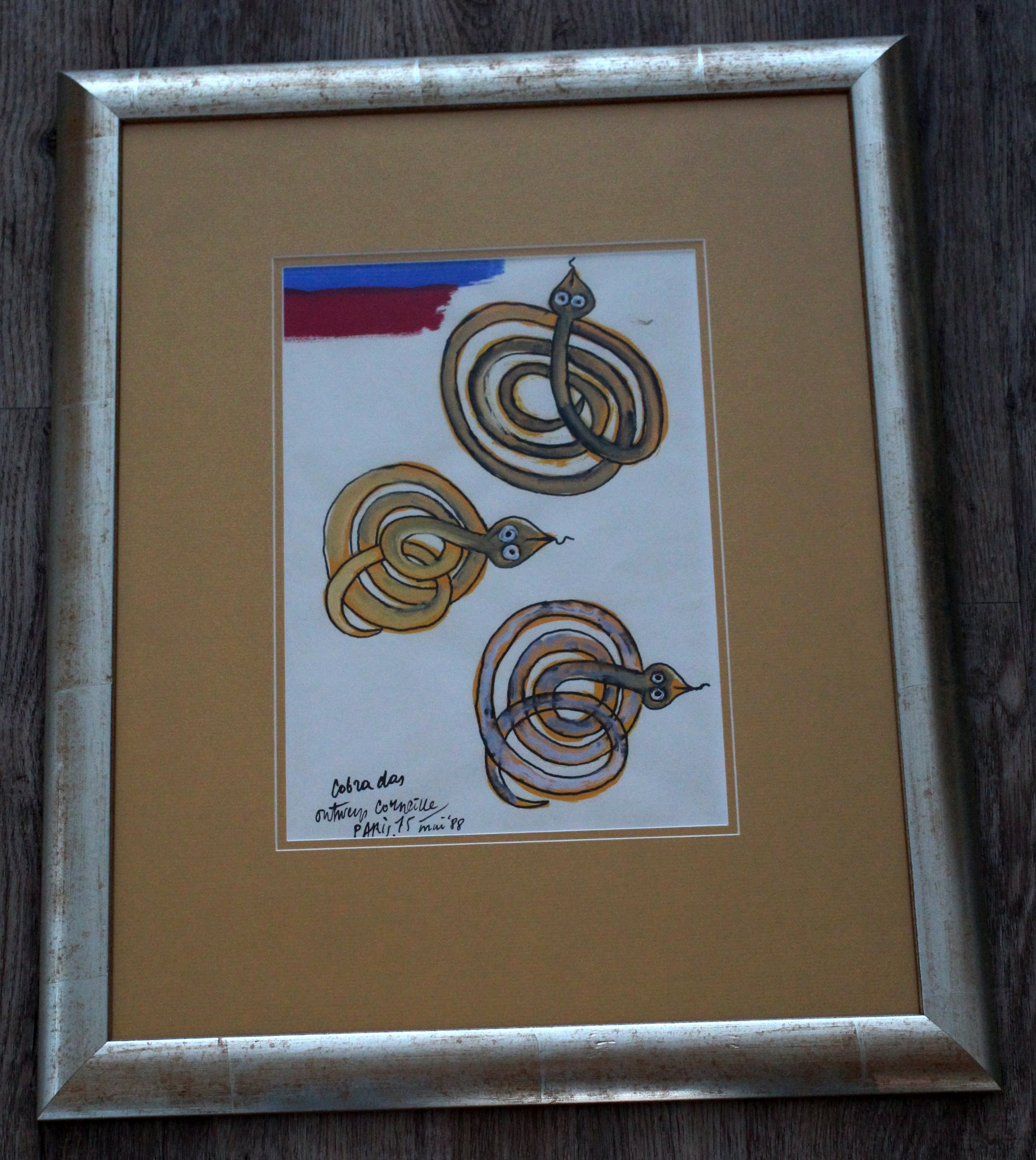 Gemengde techniek van Corneille uit 1988. Tital: Cobra das. Afmetingen incl lijst: H55.50x b49cm. Afmetingen voorstelling: H31 x b22cm. Het werk is links onderaan gesigneerd door de kunstenaar. De authenticiteit van het aangeboden werk wordt volledig gegarandeerd. Een certificaat van echtheid kan, op aanvraag worden gemaild.