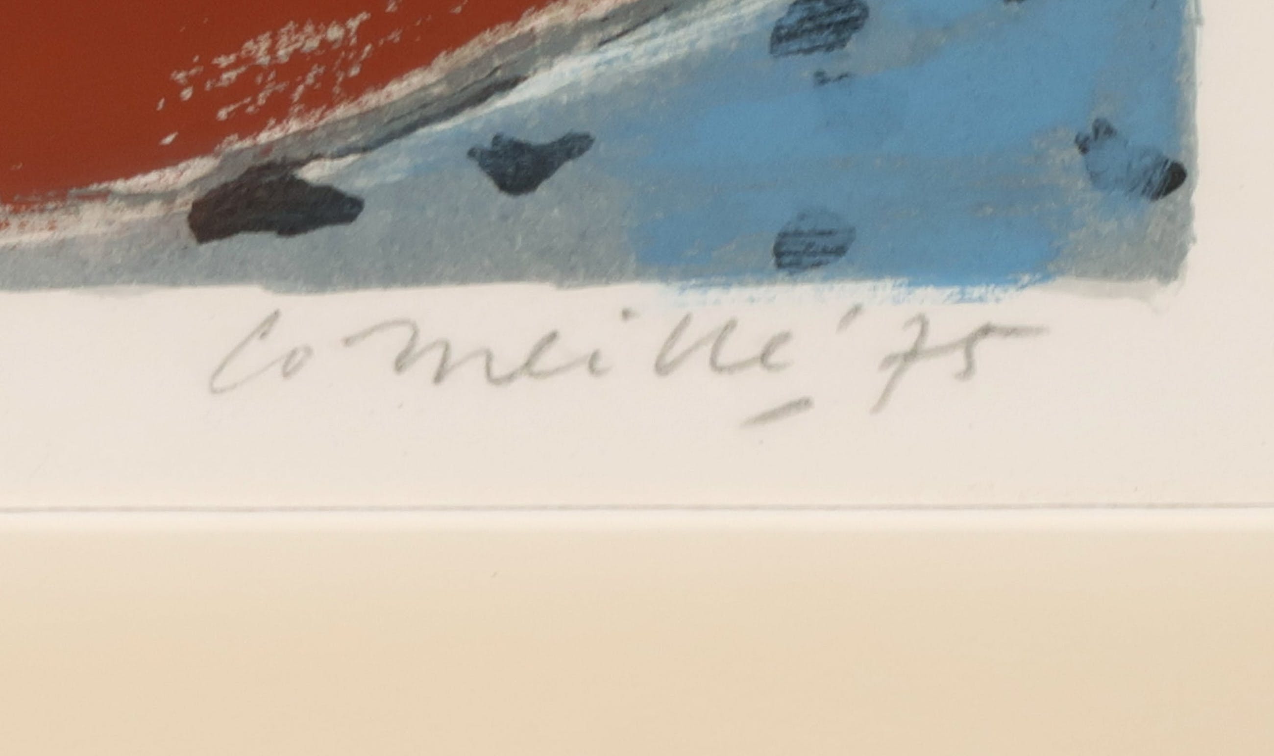 Origineel werk (gouache en krijt op papier) van Corneille, gesigneerd en gedateerd 1975.