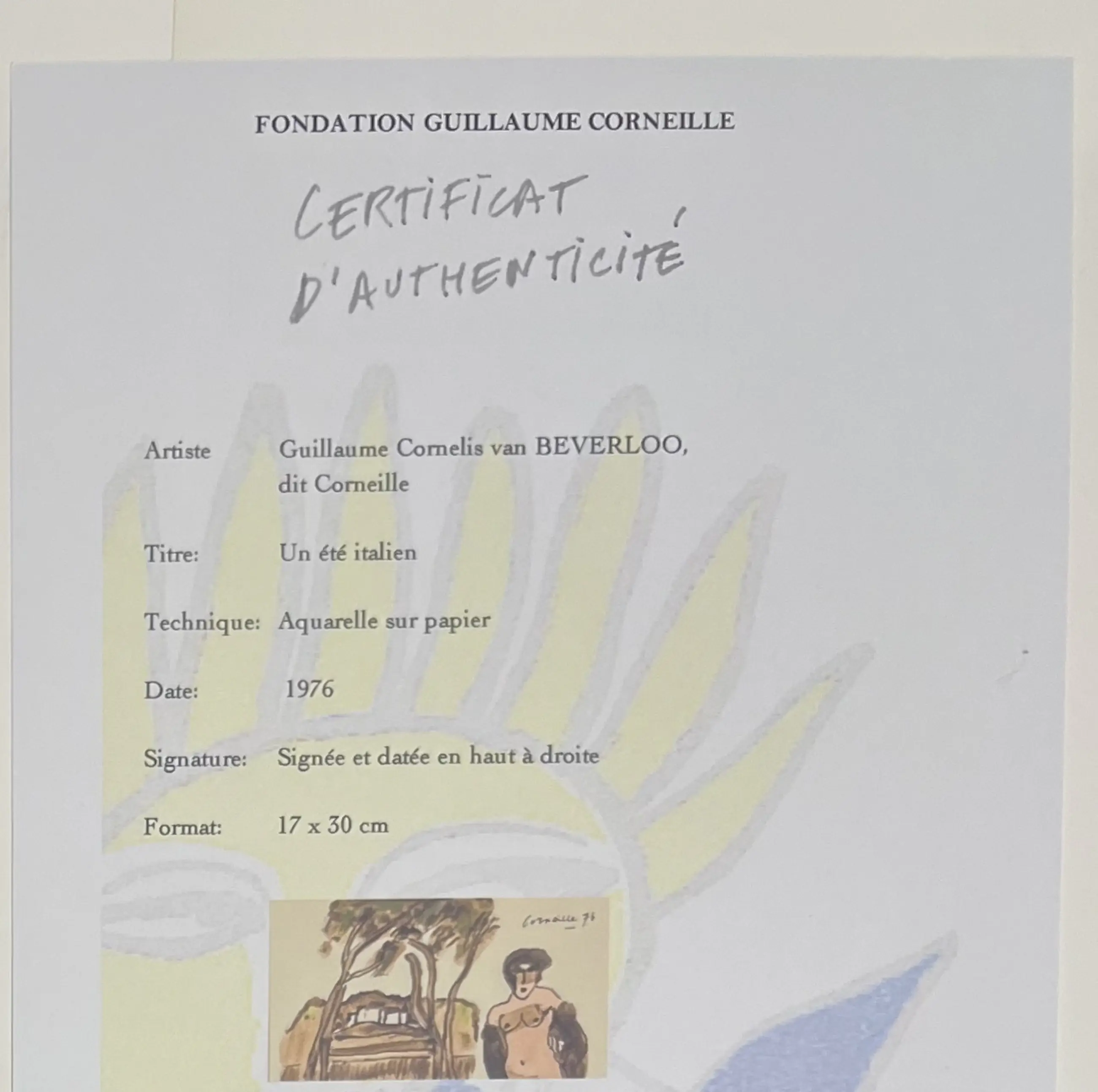 Geleverd met een certificaat van echtheid van de Fondation Corneille.
