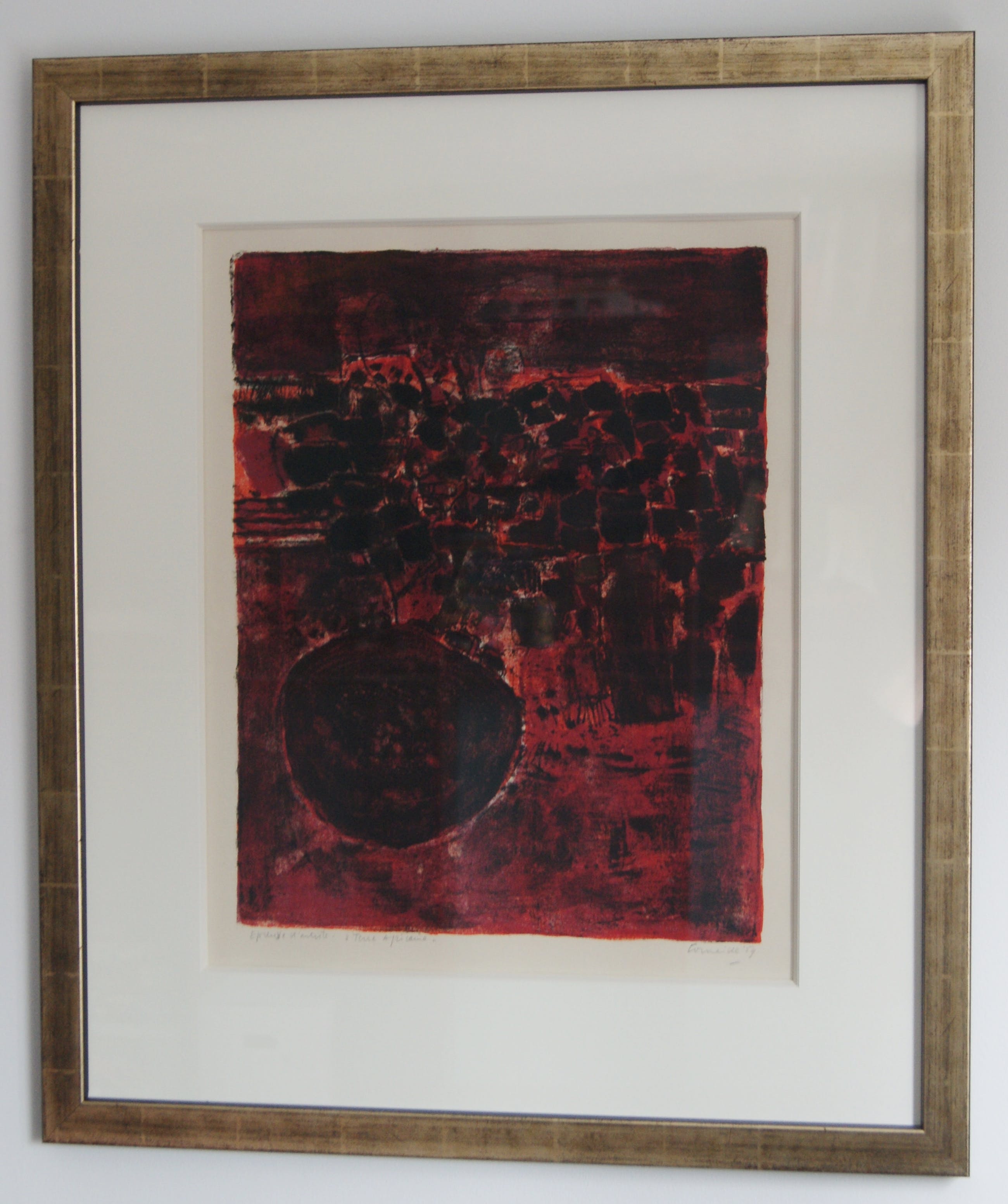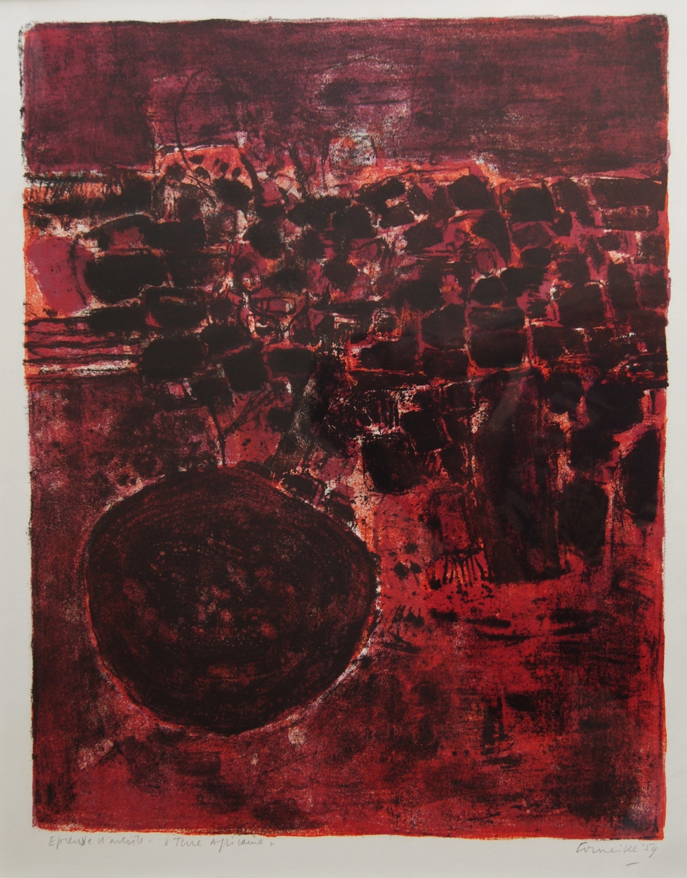 Een zeer fraaie Cornille litho ‘Terre africaine’ – 1959 – oplage E/A. Donkersloot nr. 76. Formaat: 57 cm x 44,5 cm - incl. fraaie lijst: 80 x 69 cm. Stijlvol ingelijst met verdiept passe-partout. Werk en lijst in goede conditie.