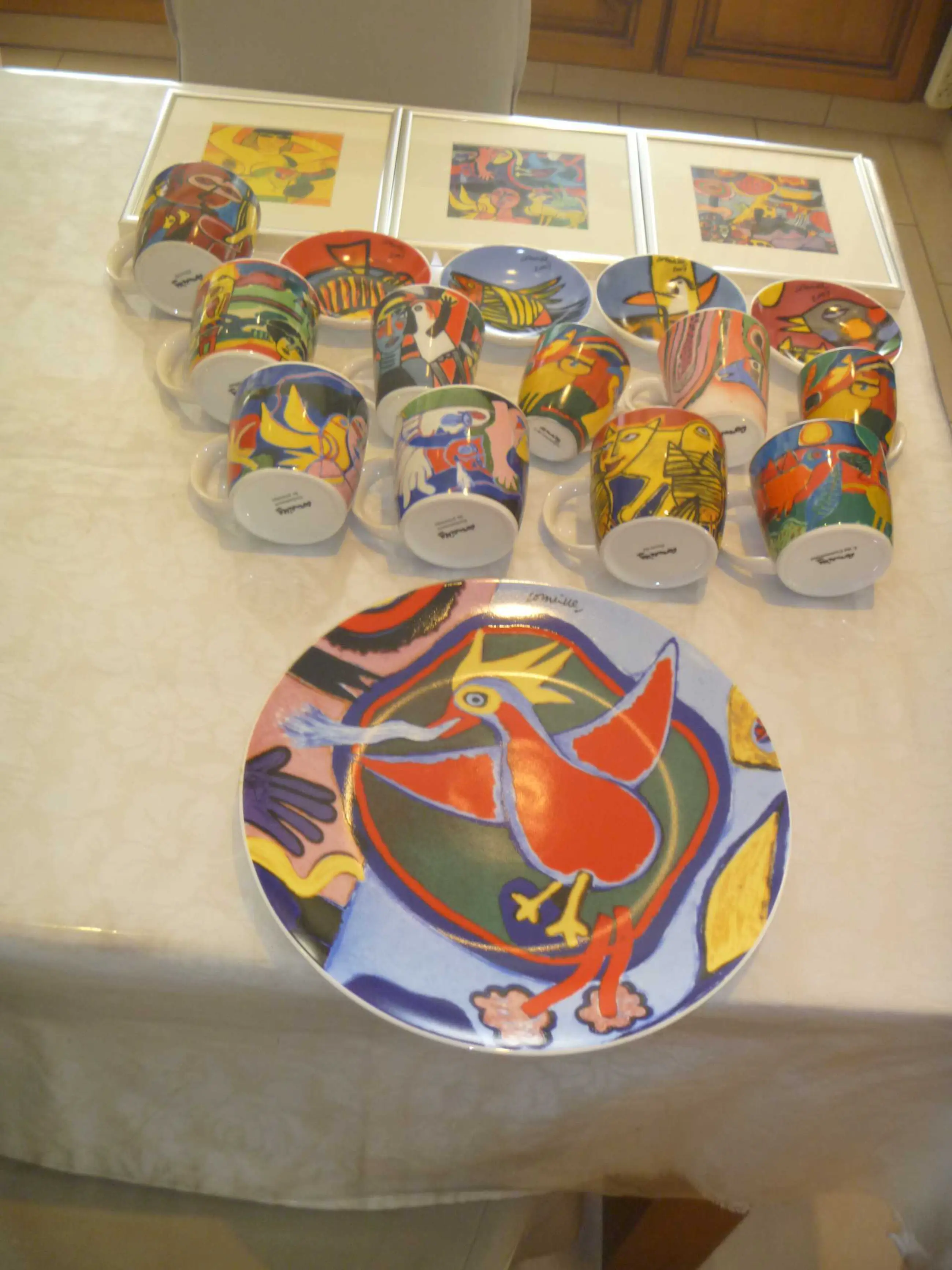 1 grote schaal met de vuurvogel 4 kleine kommetjes