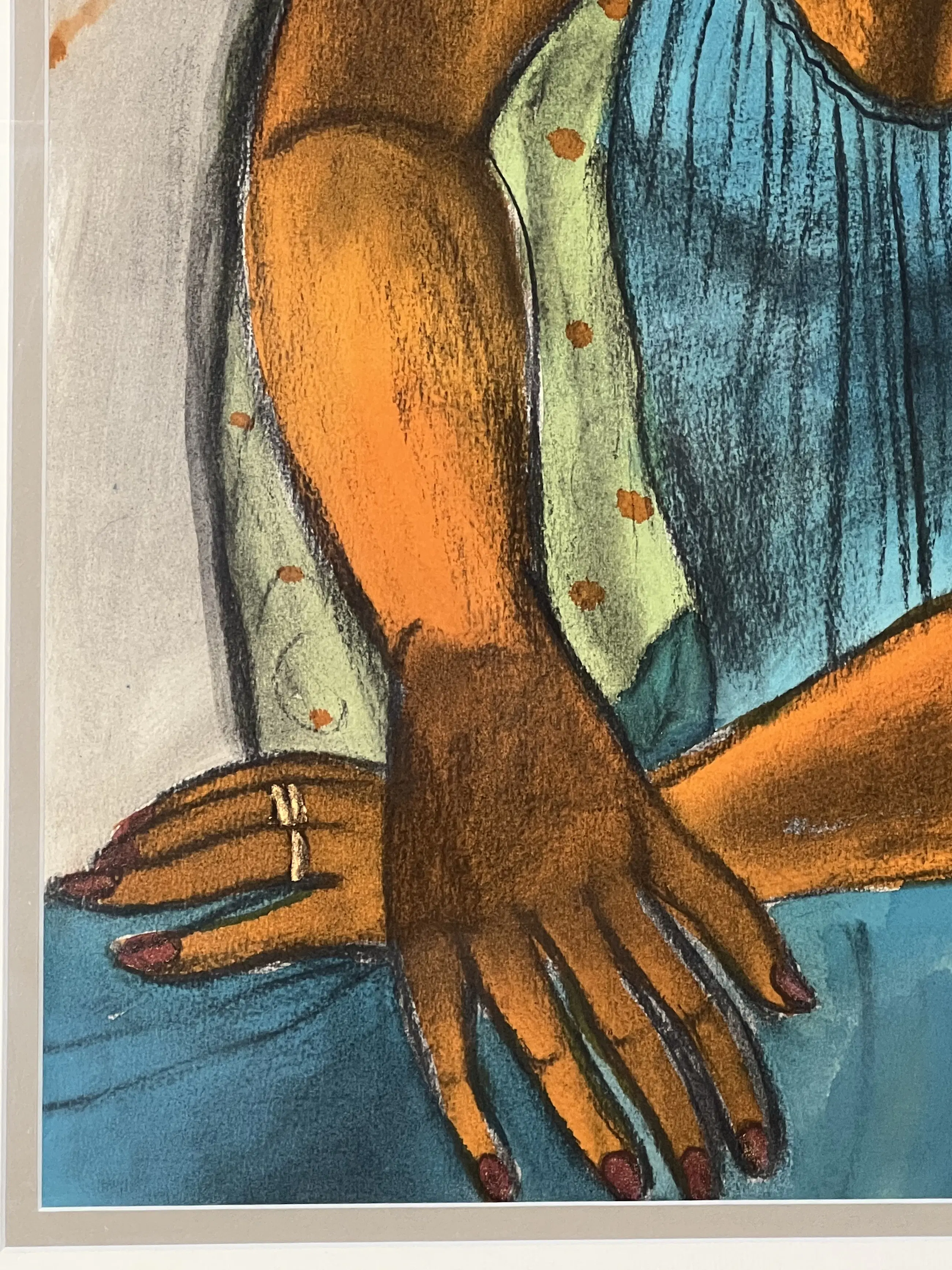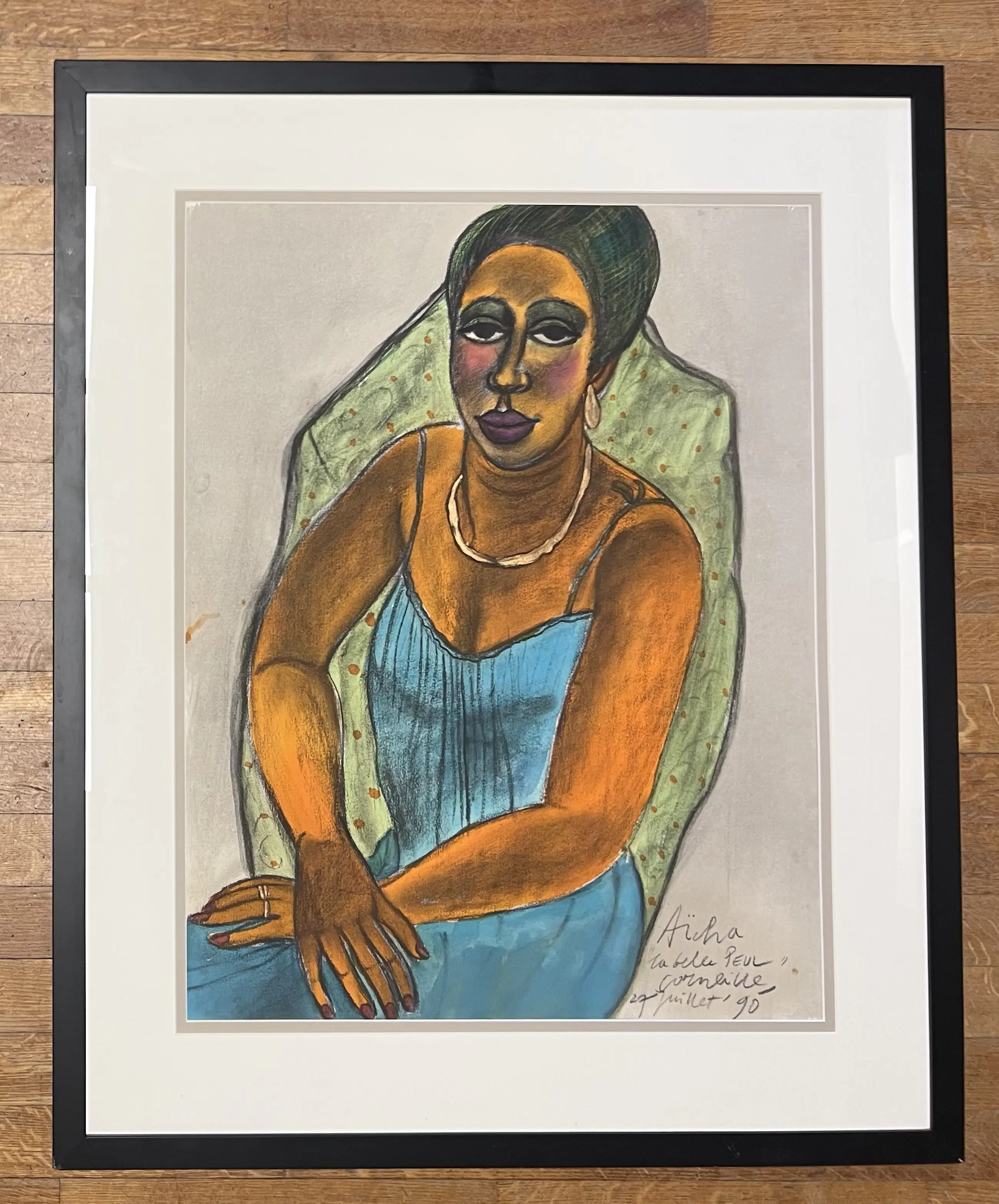 Groot pastel en aquarel op papier, 74,5 x 58 cm, 101 x 83 cm met lijst.