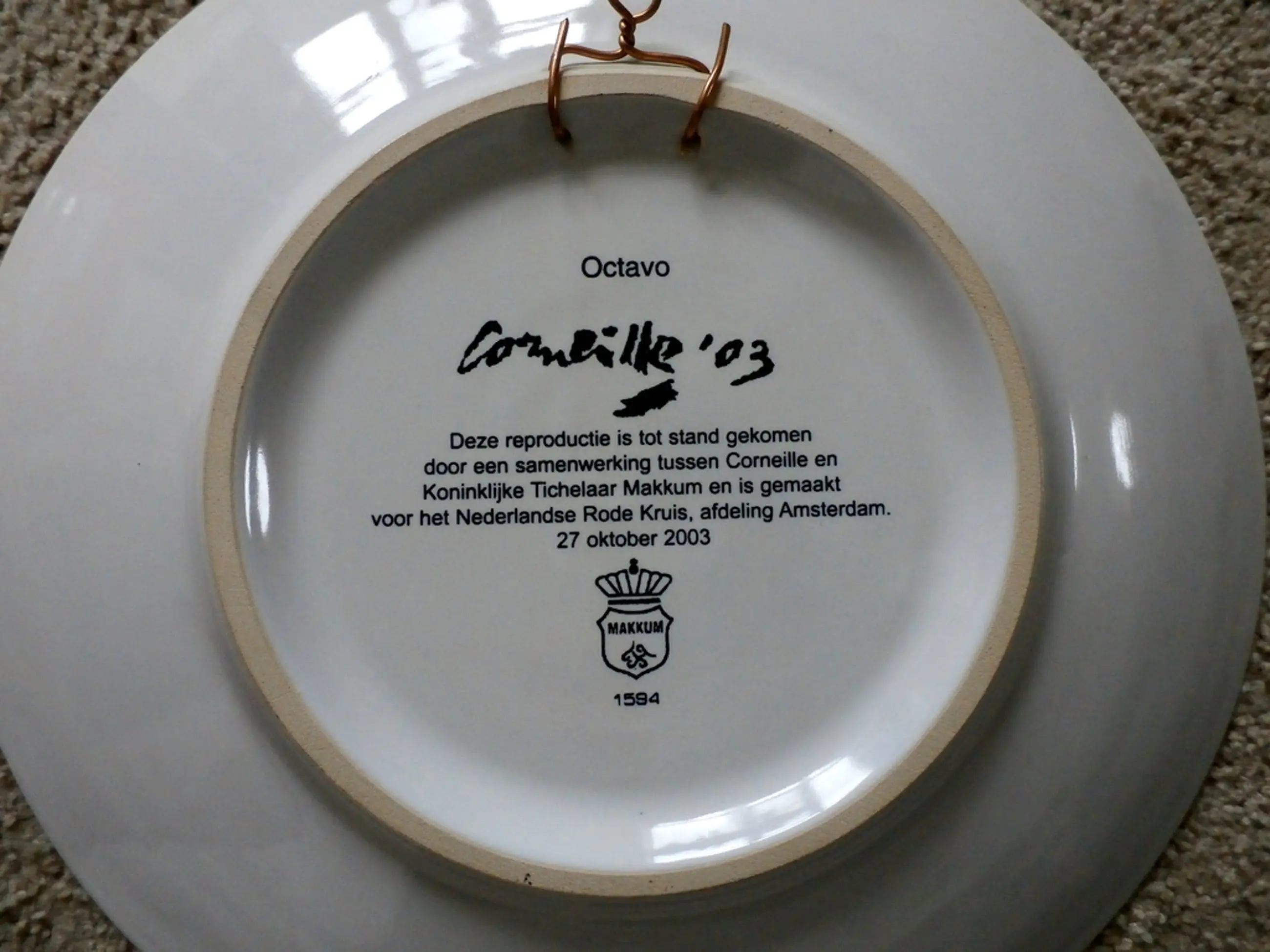 Bord van Corneille 'Octavo' uit 2003 Uitgegeven voor het Rode Kruis, Amsterdam Diameter: 34 cm Vervaardigd door Koninklijke Tichelaar Makkum Aan de achterkant twee gaatjes om op te hangen of om neer te zetten Voor de Corneille collectioneur GEEN VERZENDING NAAR NIET-EU LANDEN
