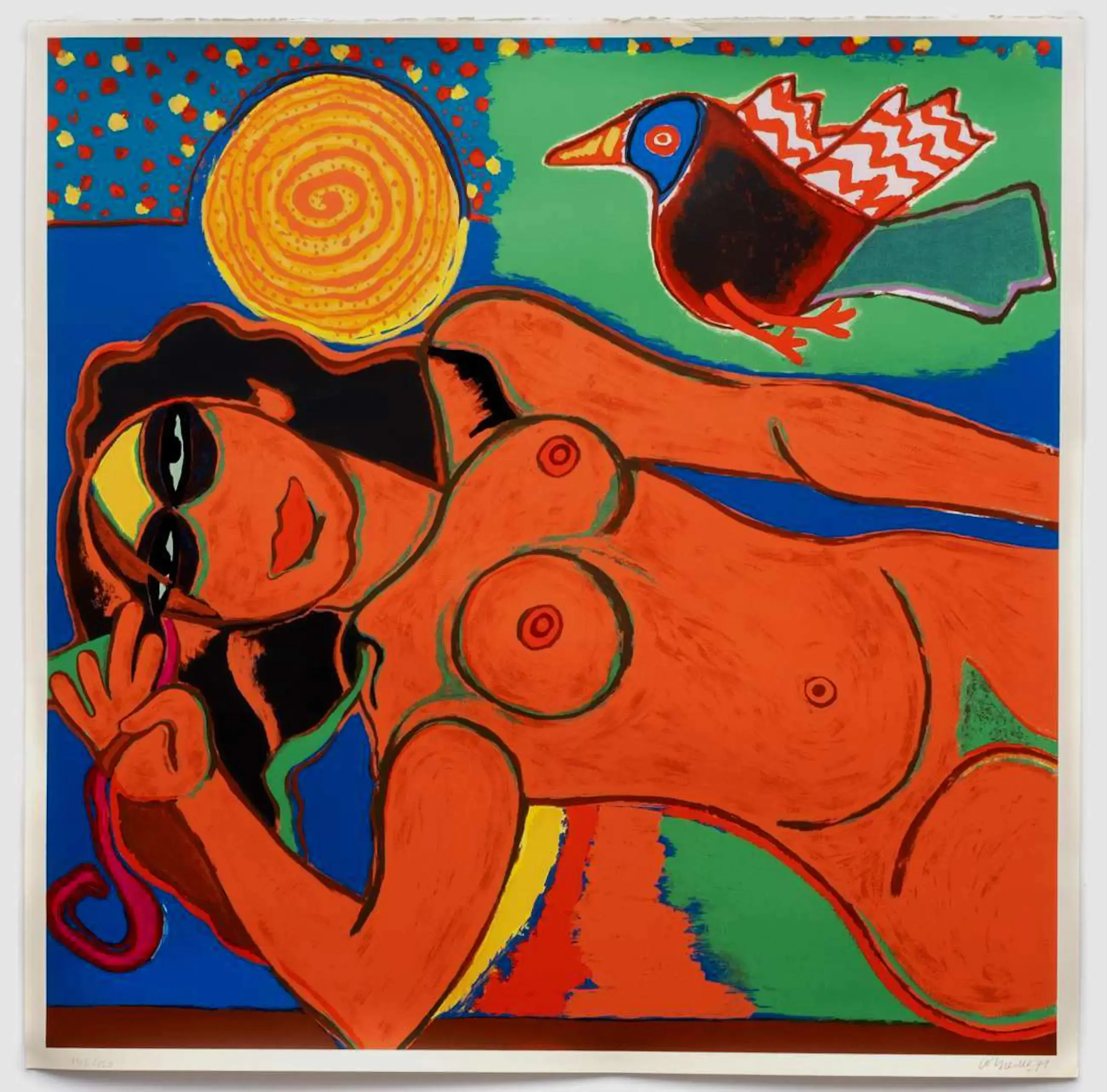 Litho van Corneille. Titel: Nu et oiseau. Jaar: 1991. Oplage: 146/150. Afmetingen blad: H120 x b120cm. Afmetingen voorstelling: H116 x b116cm. Het werk is, rechts onderaan, gesigneerd door de kunstenaar. De authenticiteit van dit werk wordt volledig gegarandeerd. Een certificaat van echtheid kan, op aanvraag, worden gemaild.