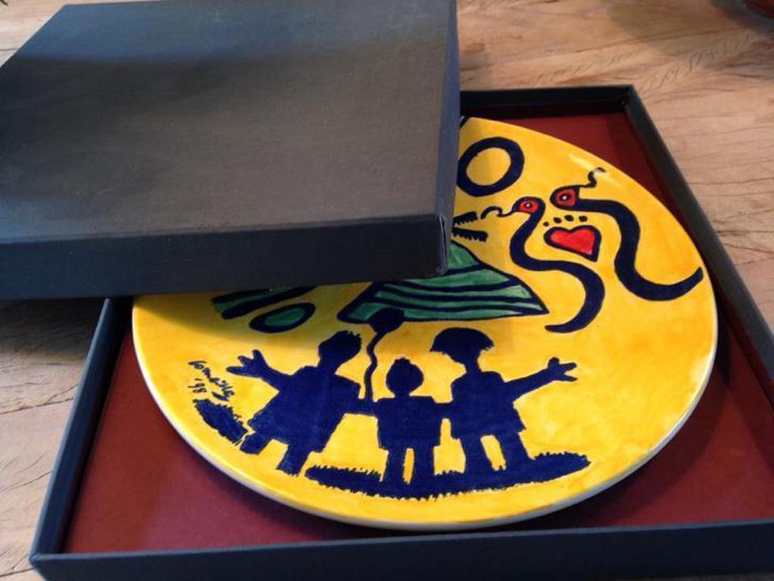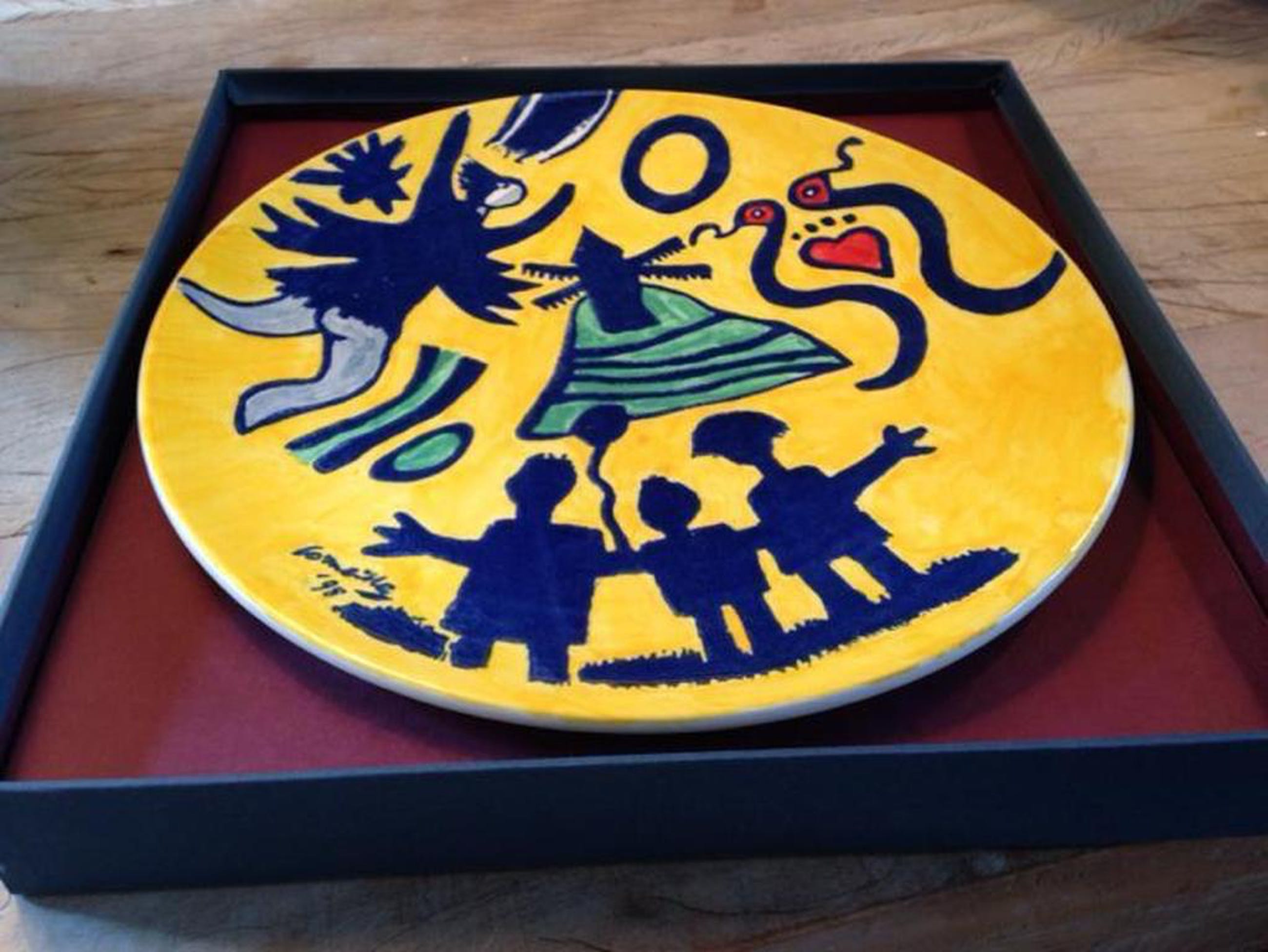 In de orignele doos, in smetloze staat. Onlang een bord verkocht voor 900 euro (ex. opgeld) op een veiling.