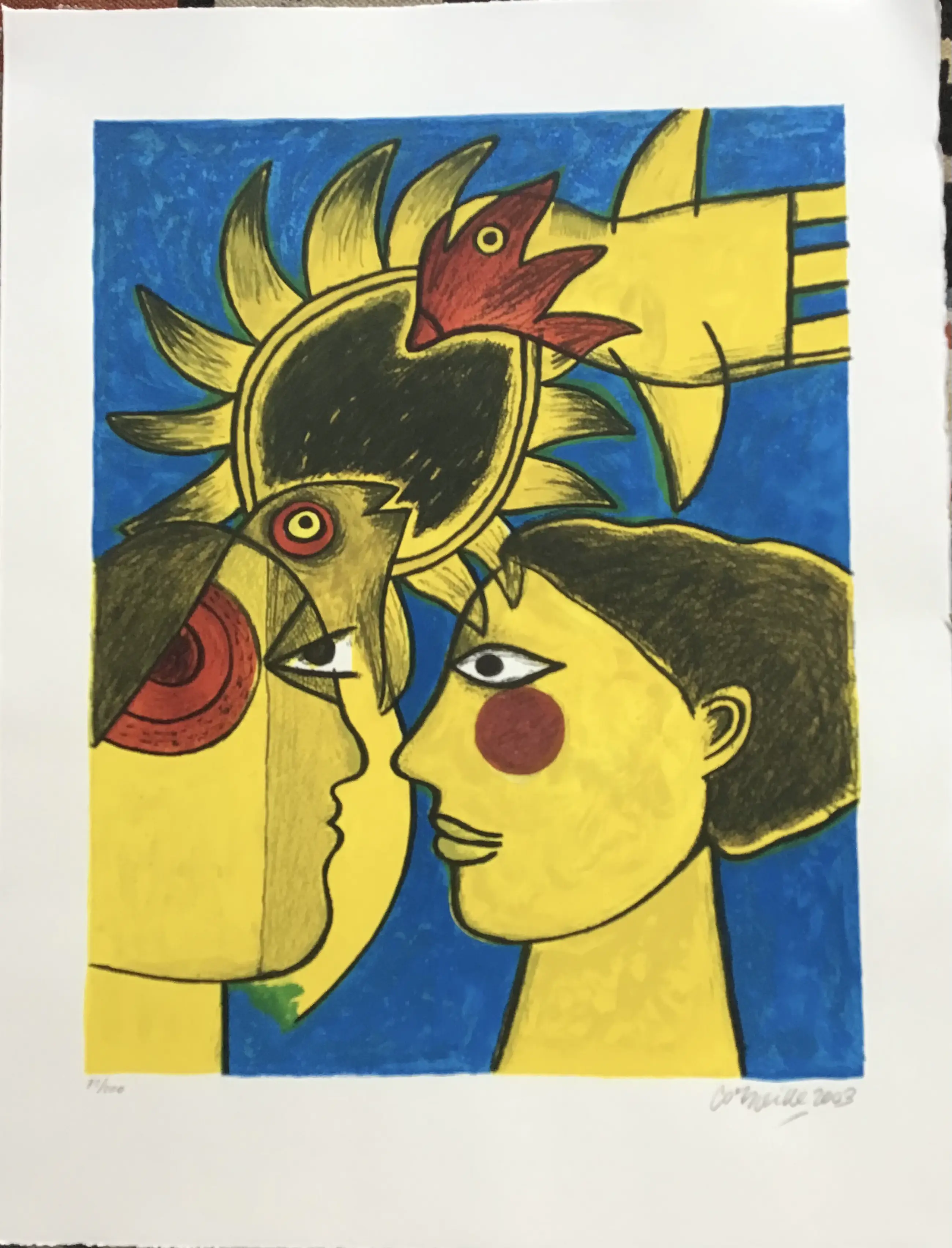 Corneille, zeldzame zeefdruk Vrouw,Zon,Vogel Hand gesigneerd Geschept papier Oplage 200, waarvan deze nummer 75 Afmetingen 65x50cm Conditie uitstekend Wordt aangetekend verzonden