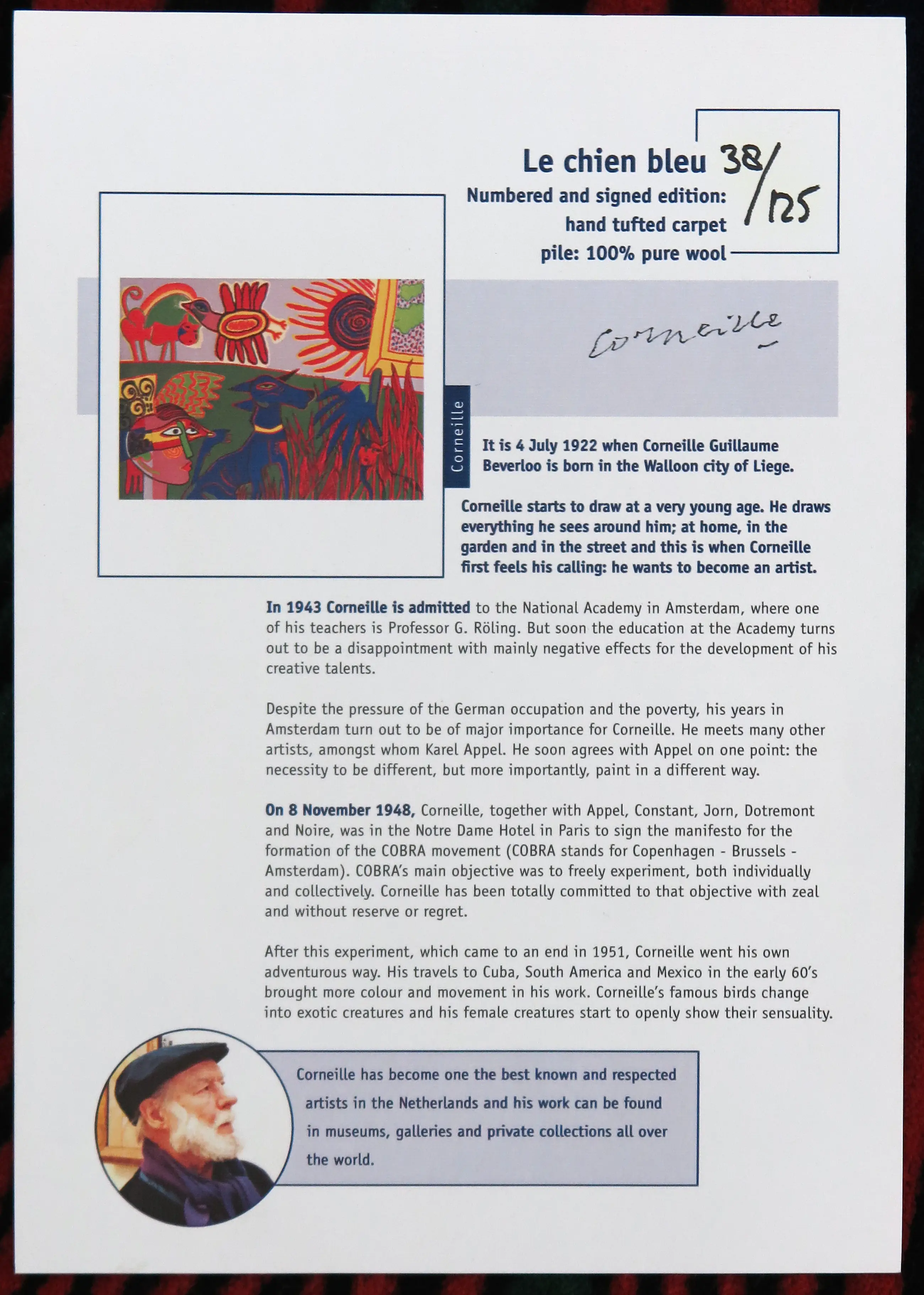 Bij het kleed komt ook een certificaat van echtheid, door Corneille met de hand gesigneerd. Het certificaat geeft ook het oplagenummer weer.